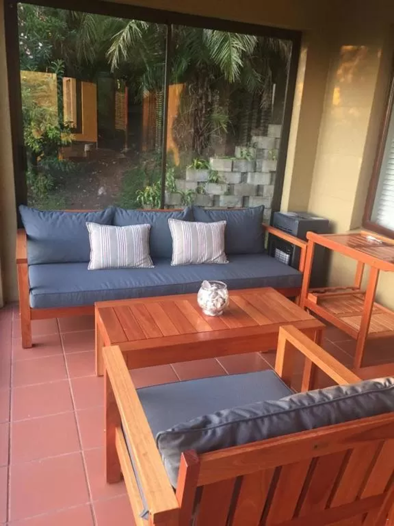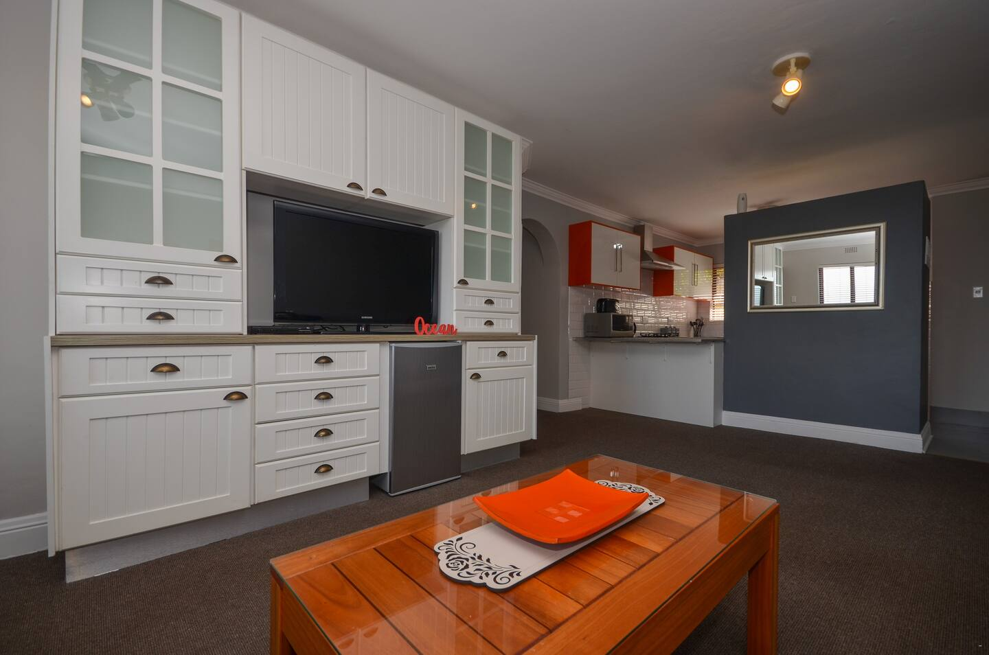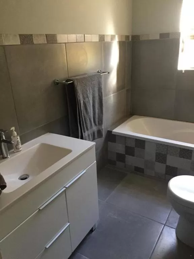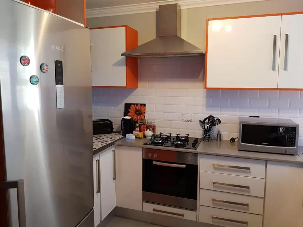 The kitchen is well-equipped for self-catering and is fitted with a stove and oven, fridge-freezer, microwave, kettle, toaster, and a dishwasher. The lounge contains comfortable couches and a flat-screen TV with a selection of DStv channels. Wi-FI is available. The enclosed patio offers a second lounge area, a gas heater, and a dining table and seating, and a kettle braai. The patio has sliding doors all alongside that can be open to the garden area.