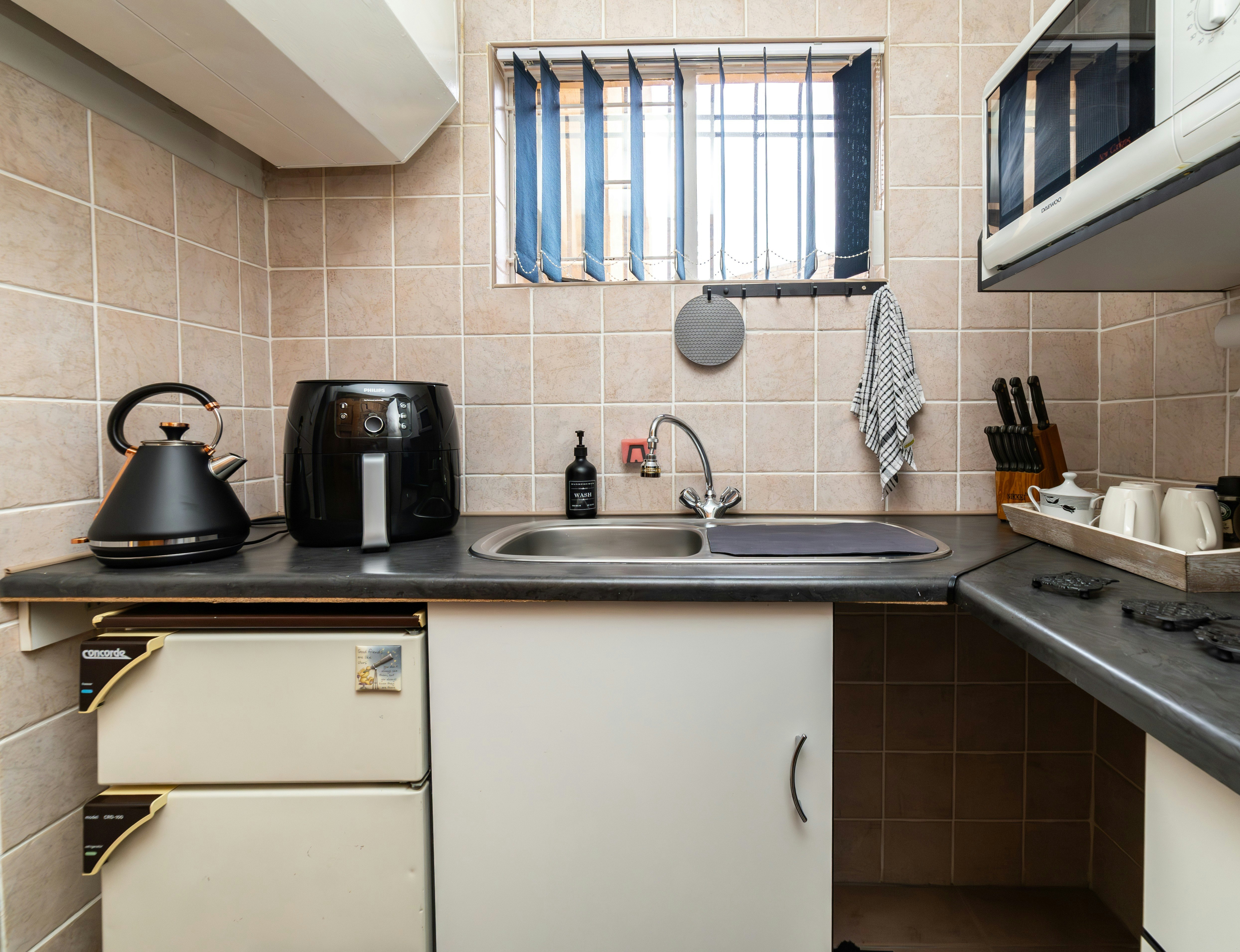 Die eenheid beskik oor 'n goed toegeruste kombuis met 'n lugbraaier, eenplaat-induksie-kookplaat, mikrogolfoond, ketel, broodrooster en yskassie. Die sitkamer het 'n gemaklike rusbank, en vir gaste se vermaak, 'n slim-TV met Netflix en YouTube premium. Gaste het ook toegang tot gratis 100/100mbs Wi-Fi.