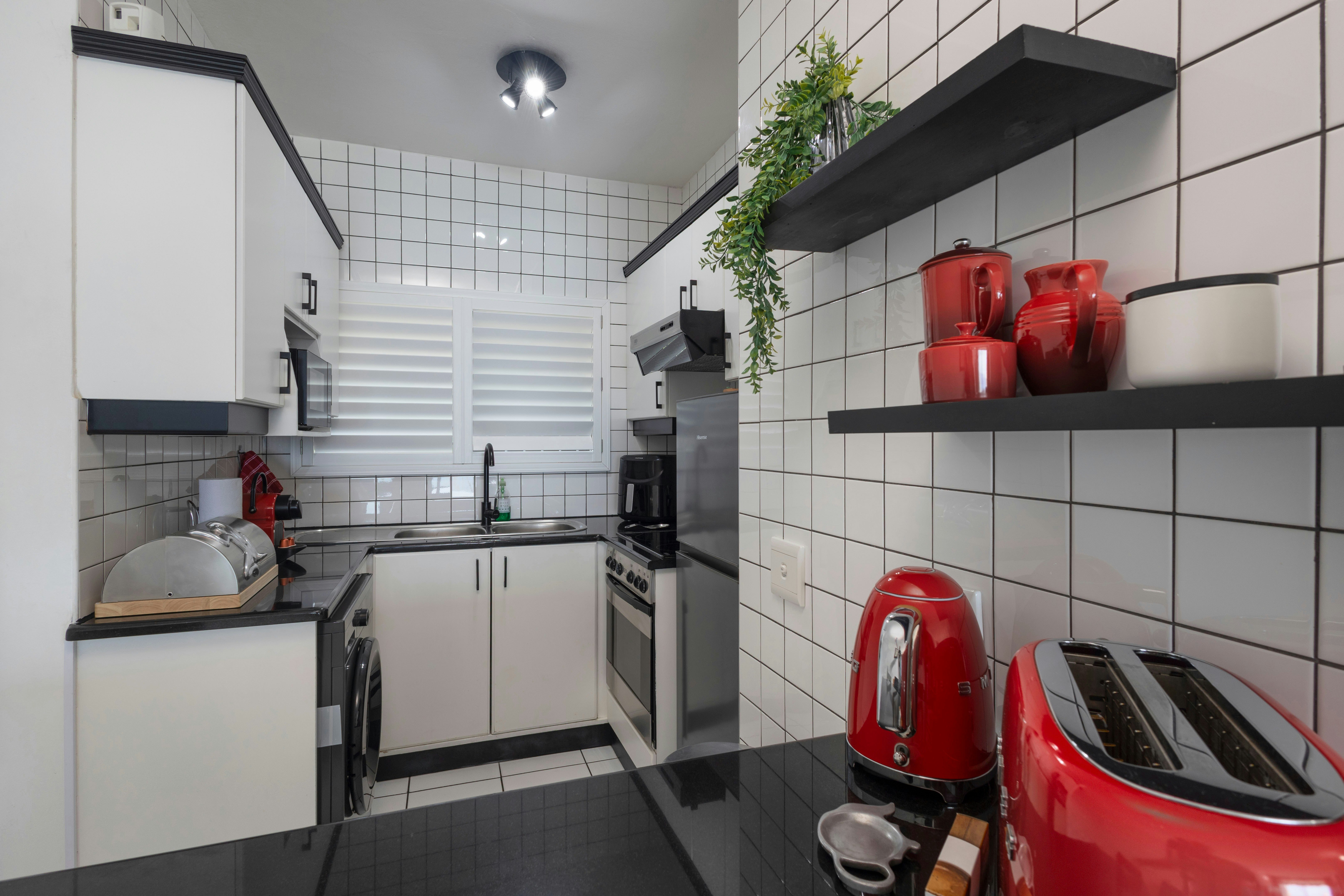 The open-plan kitchen has fully equipped with an induction stove and hob, an oven, a microwave, a fridge-freezer, cutlery and crockery, as well as tea-and-coffee-making facilities.