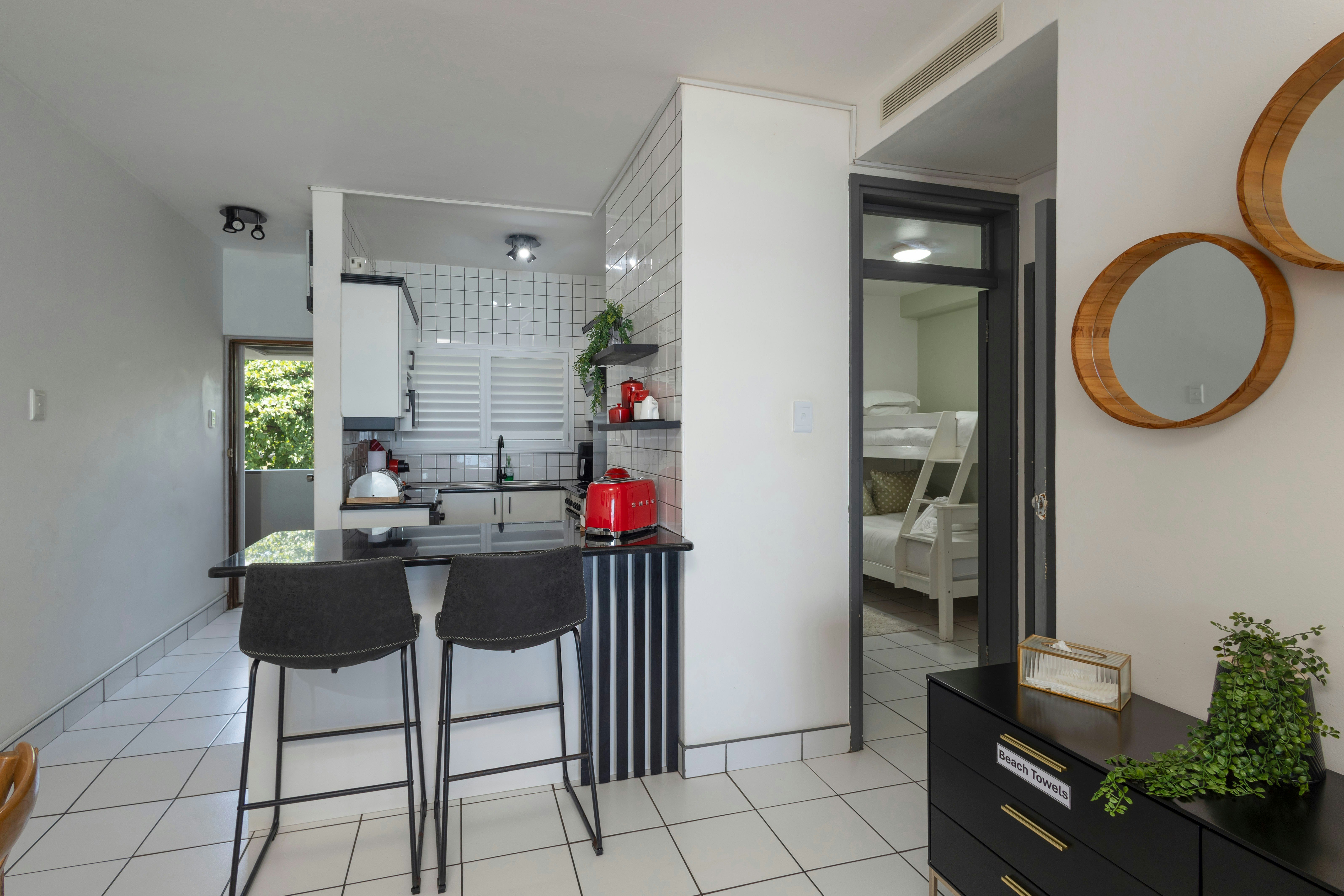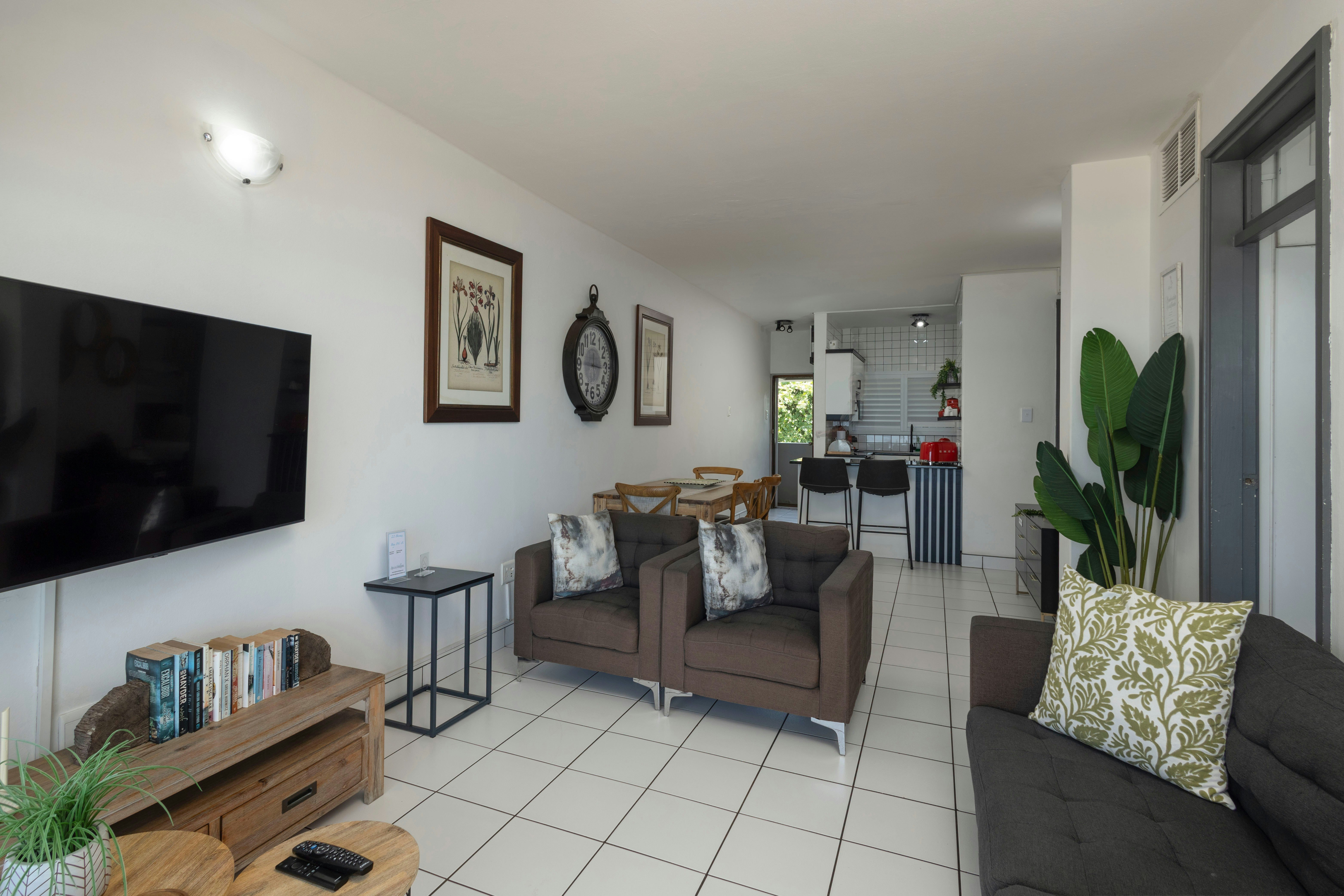 Guests can enjoy their meals at the dining table, or relax in the lounge which is equipped with a TV with a full selection of DStv channels as well as an Explora decoder with PVR facilities, Wi-Fi access, and opens onto the balcony that overlooks the ocean.