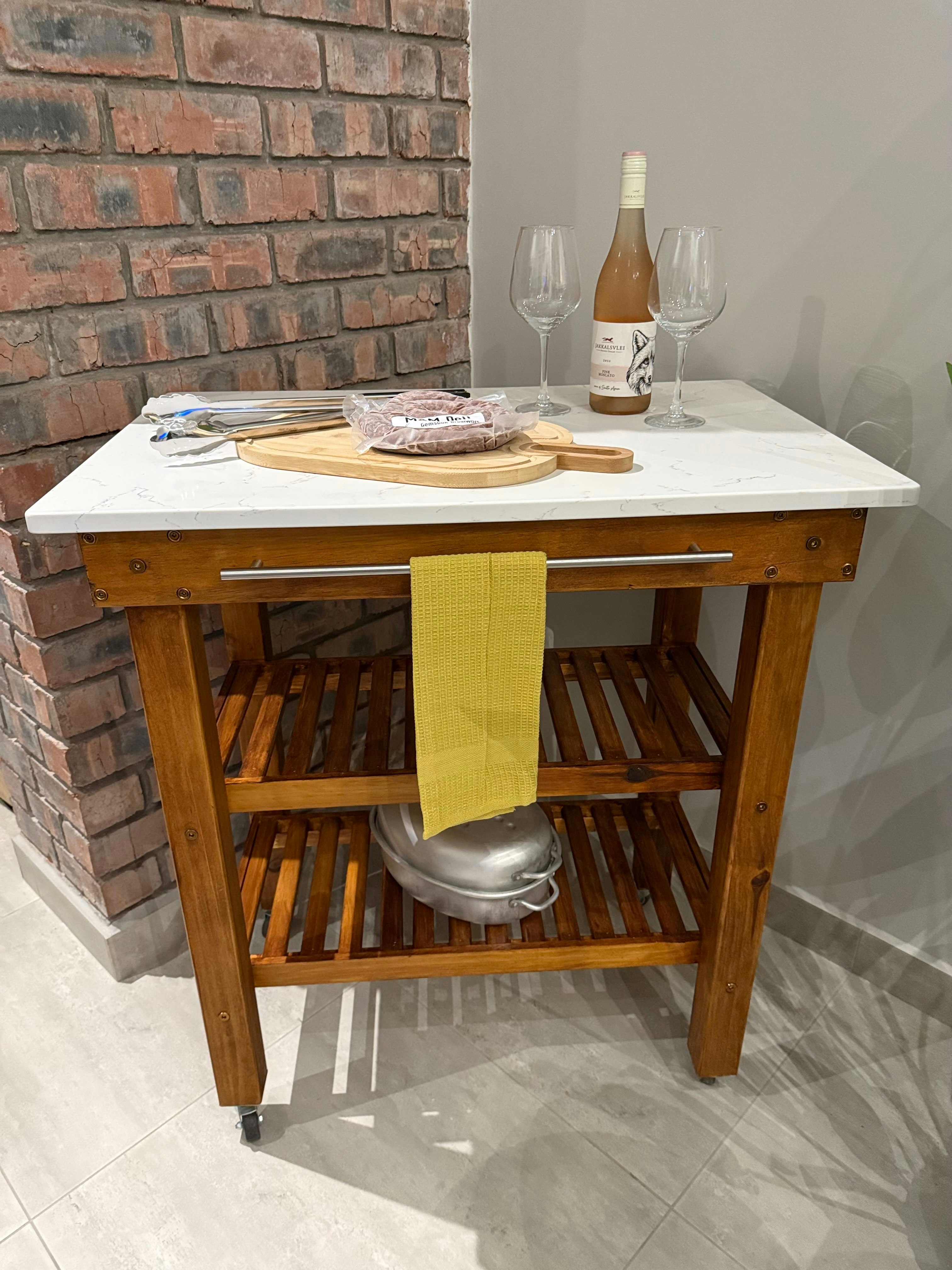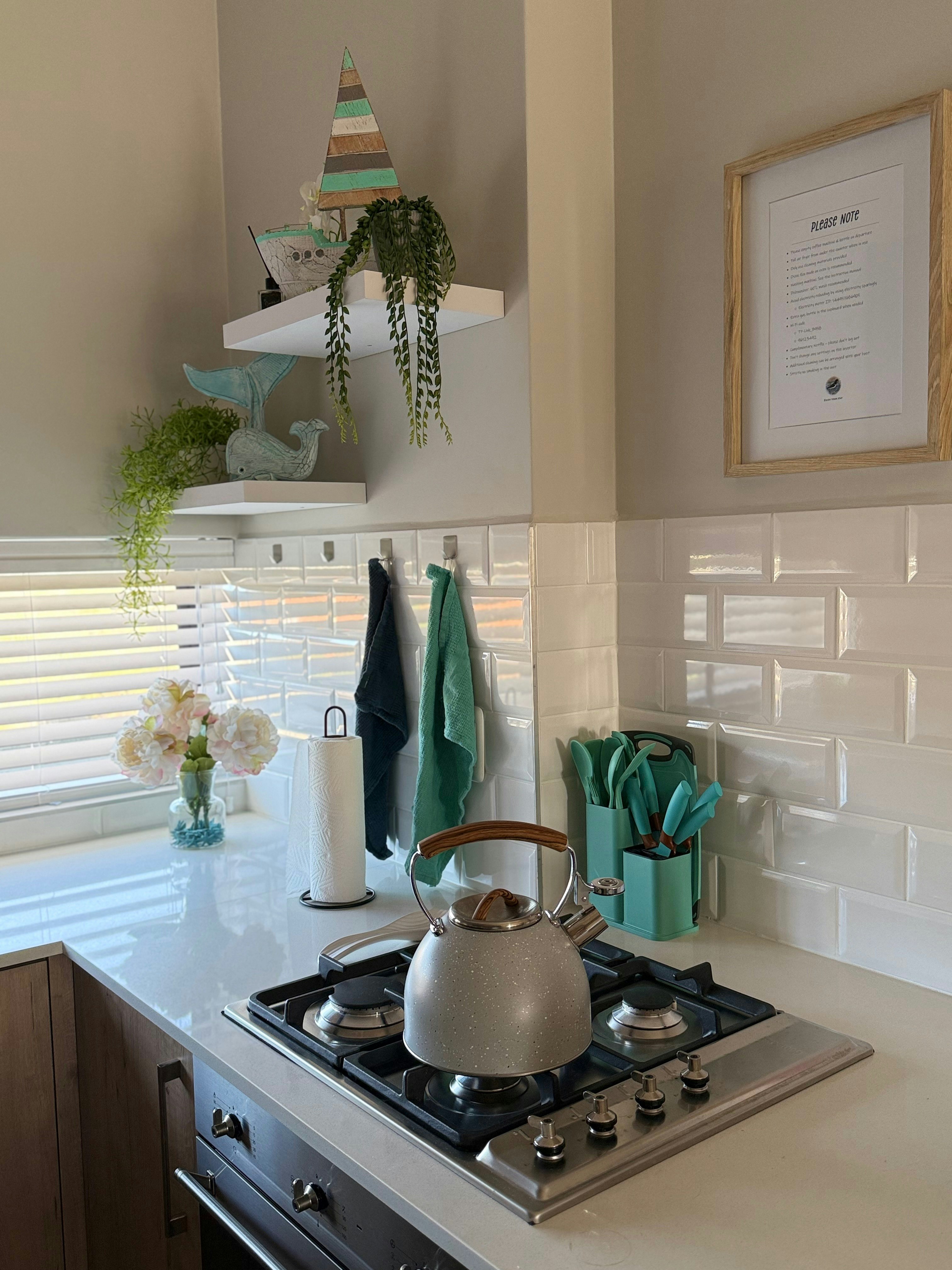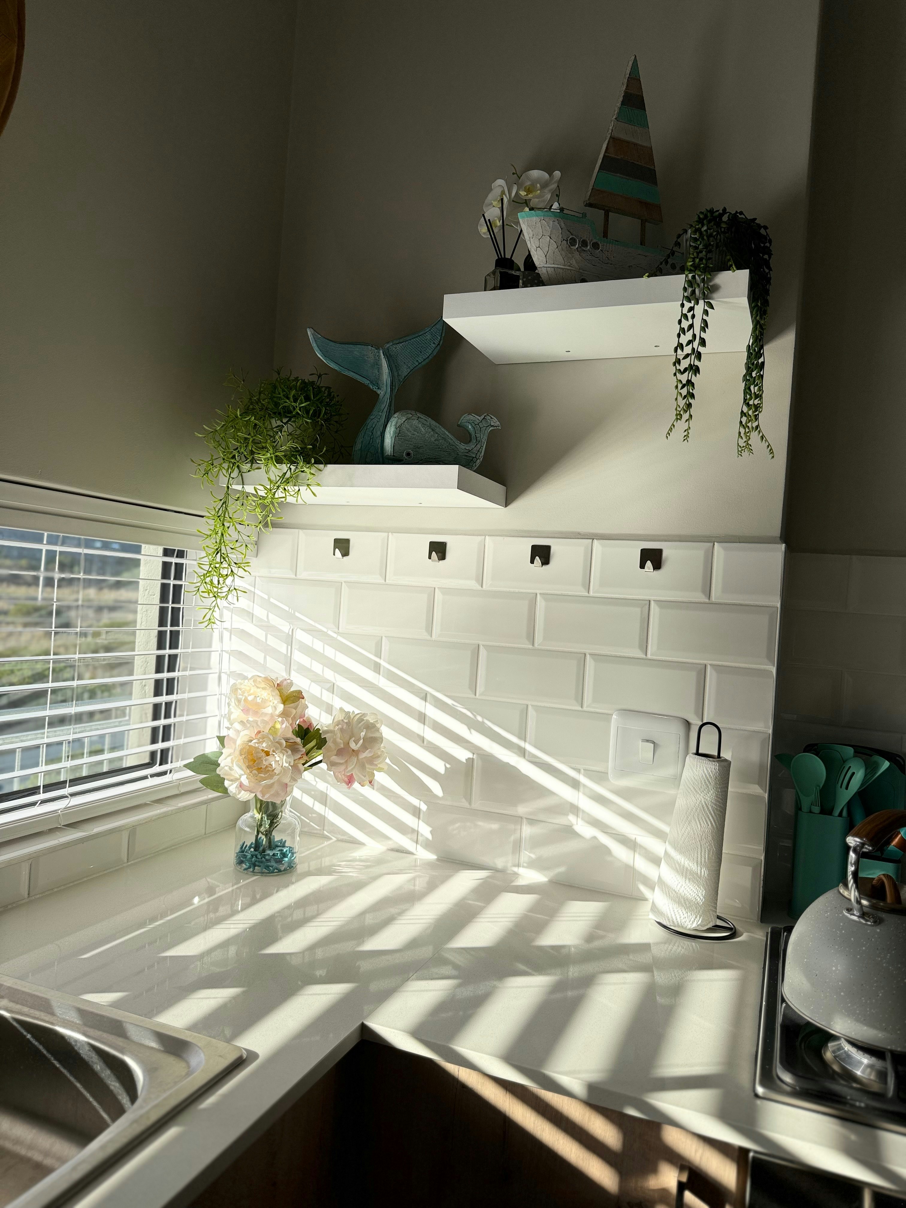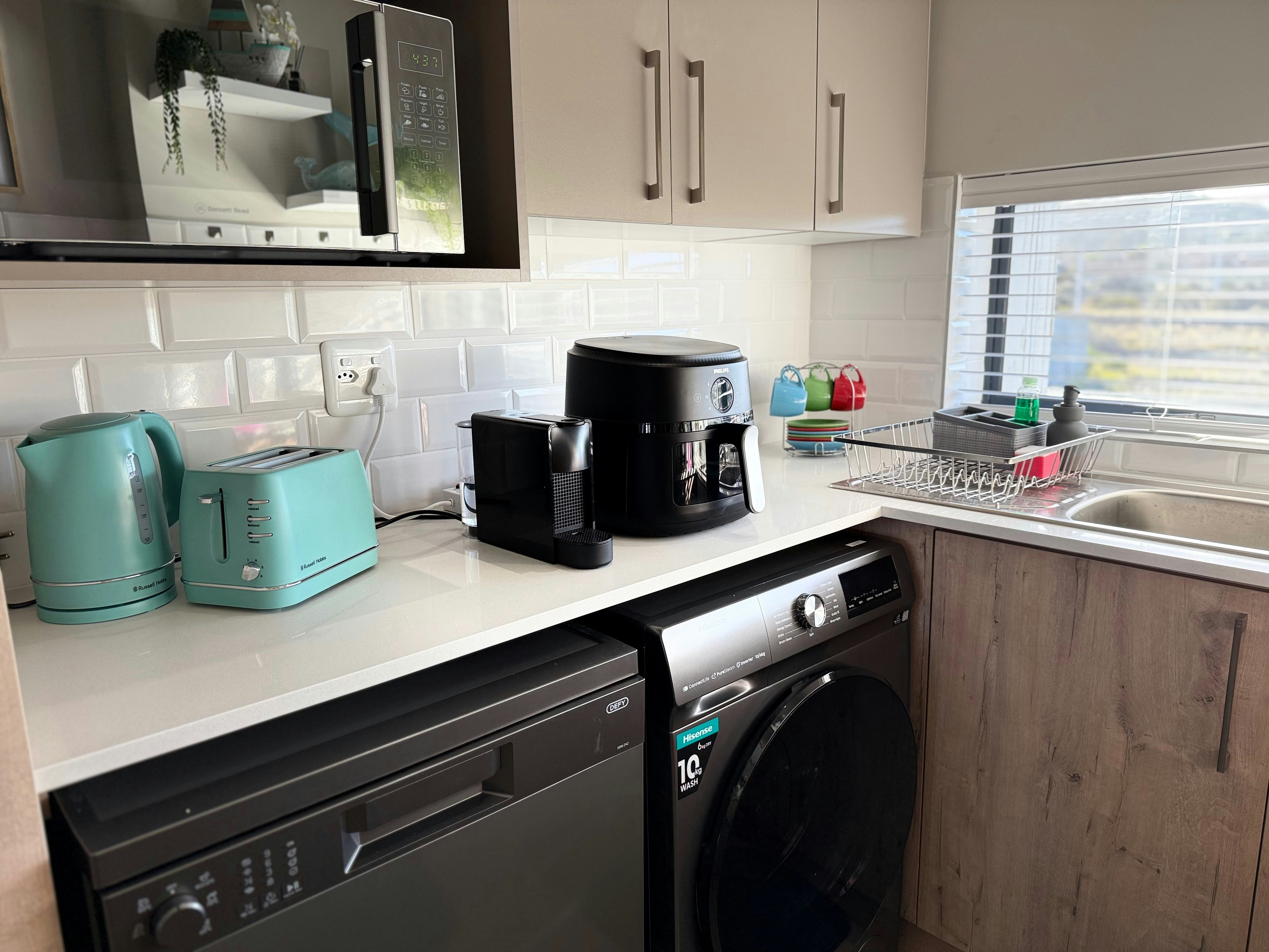 Die kombuis is toegerus met 'n yskas-vrieskas, gasstoof, oond, mikrogolfoond, lugbraaier, eetgerei en breekware, asook tee- en koffiemaakgeriewe. 'n Skottelgoedwasser en wasmasjien-droër is beskikbaar vir ekstra gerief. Die leefarea is ingerig met 'n eetkamertafel, gemaklike sitplek, 'n slim-TV met stroomdienste en 2 bykomende kindermatrasse. Toegang tot WiFi is beskikbaar.