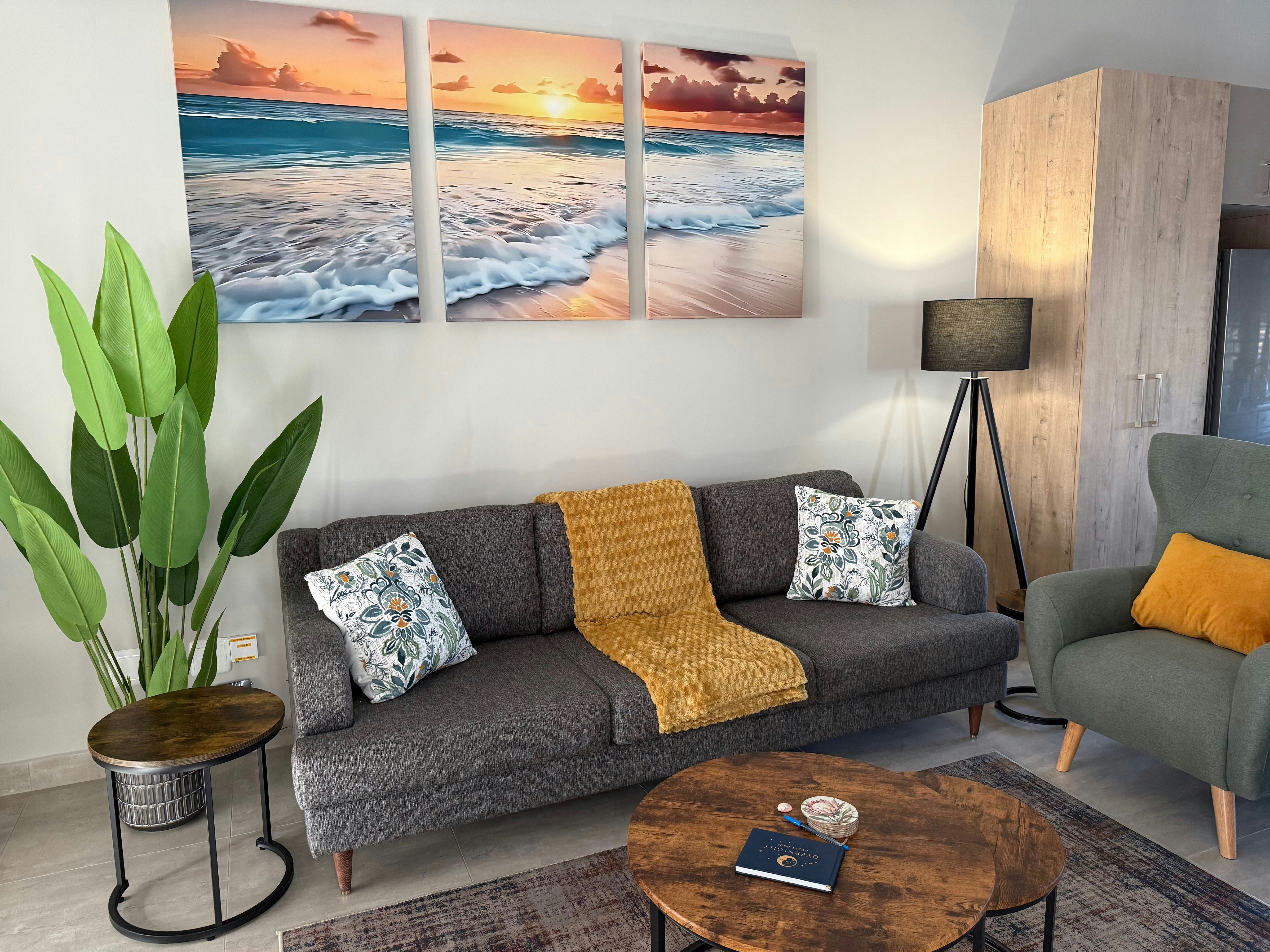 Hierdie woonstel op die derde verdieping bied slaapplek vir tot 4 volwassenes en 2 kinders en bestaan uit 2 slaapkamers, elk met sy eie en suite-badkamer. Die eerste slaapkamer is ingerig met 'n koningingrootte-bed en het 'n en suite-badkamer met 'n stort. Die tweede slaapkamer het 2 enkelbeddens, en die en suite-badkamer is toegerus met 'n stort bo die bad. Linne en badhanddoeke word voorsien, maar gaste moet hul eie strandhanddoeke saambring.