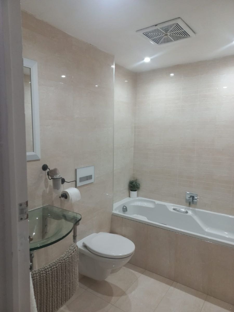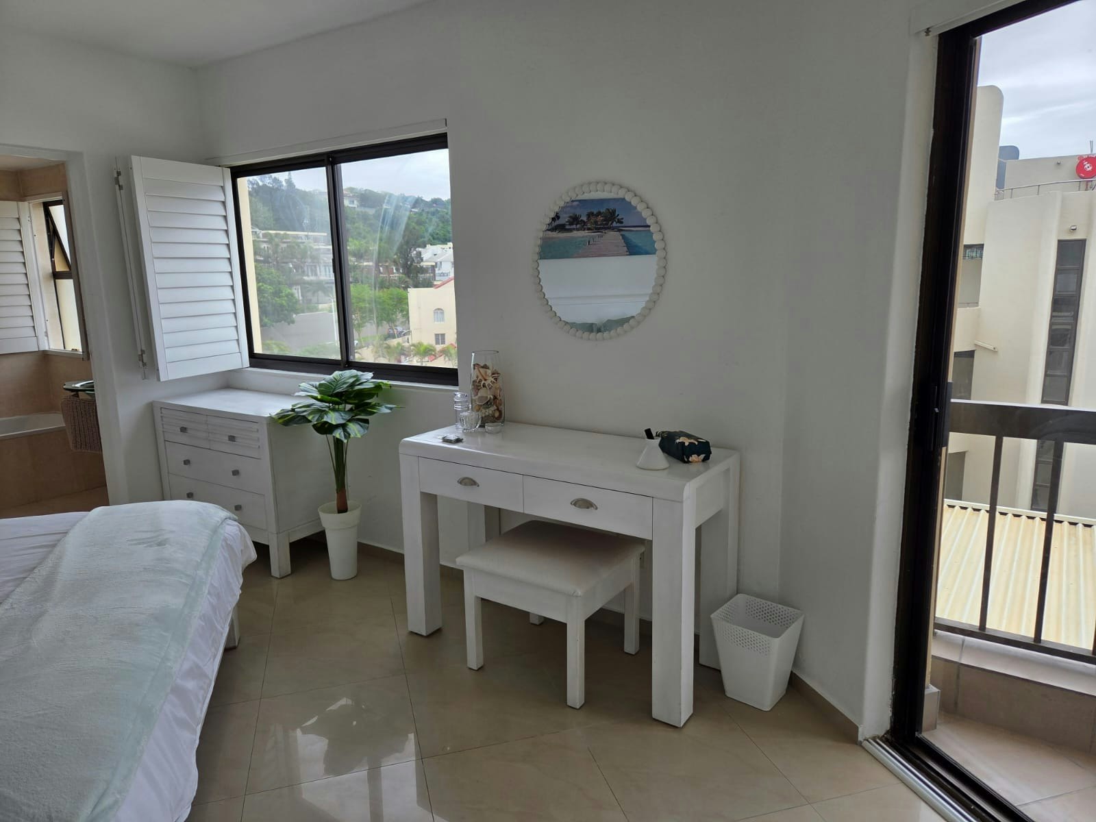 Die woonstel bestaan uit 3 slaapkamers, elk gemeubileer met 'n dubbelbed. Die hoofslaapkamer het 'n en suite-badkamer met 'n stort, toilet en wasbak. Die tweede badkamer is toegerus met 'n stort, toilet en wasbak, en die derde badkamer het 'n bad, toilet en wasbak.