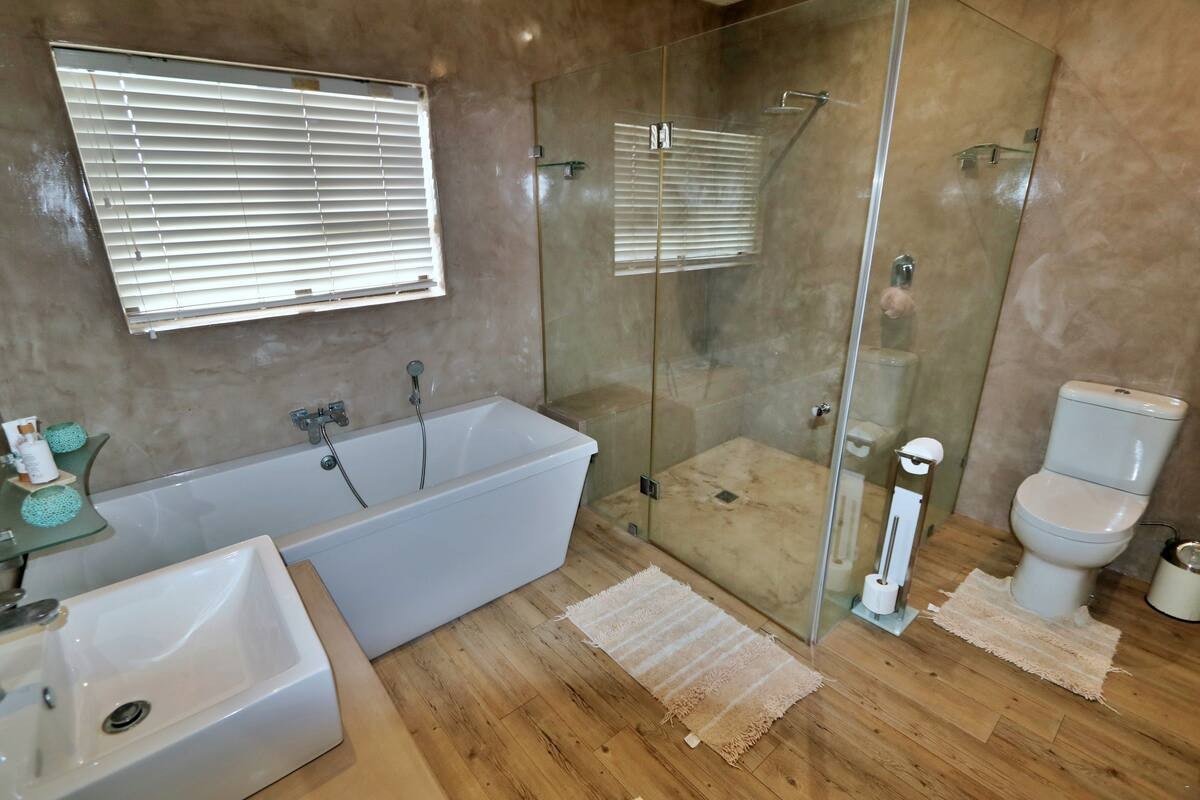 Hierdie huis bied slaapplek aan 8 volwassenes en 4 kinders. Dit beskik oor 4 en suite-slaapkamers. Twee slaapkamers het 'n koningingrootte-bed en 'n en suite-badkamer met bad- of stortgeriewe. Die derde en vierde slaapkamer het elk 'n koningingrootte-bed met 'n stapelbed of slaapbank vir kinders. Beide kamers het en suite-badkamers met storte.