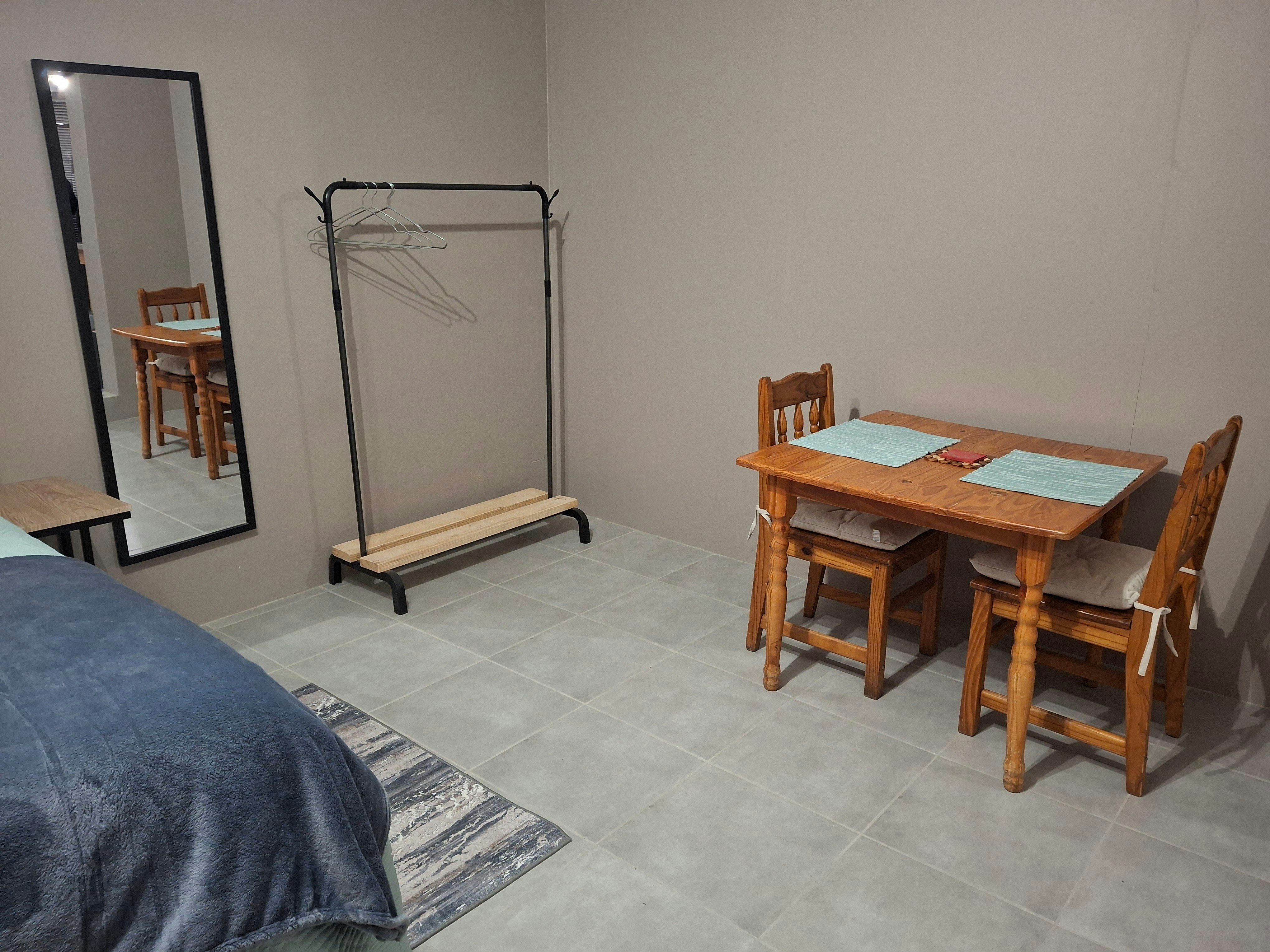 'n Klein buitepatio het 'n tafel en stoele, perfek om 'n heerlike koppie koffie en 'n paar beskuit te geniet. Dit is 'n aparte woonstel met sy eie ingang, privaat, veilig en ideaal vir 'n paartjie.
