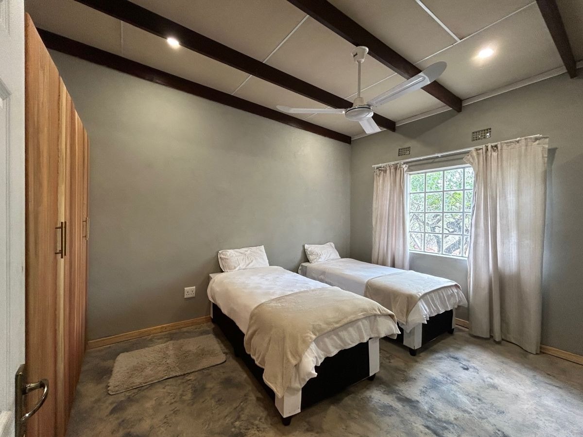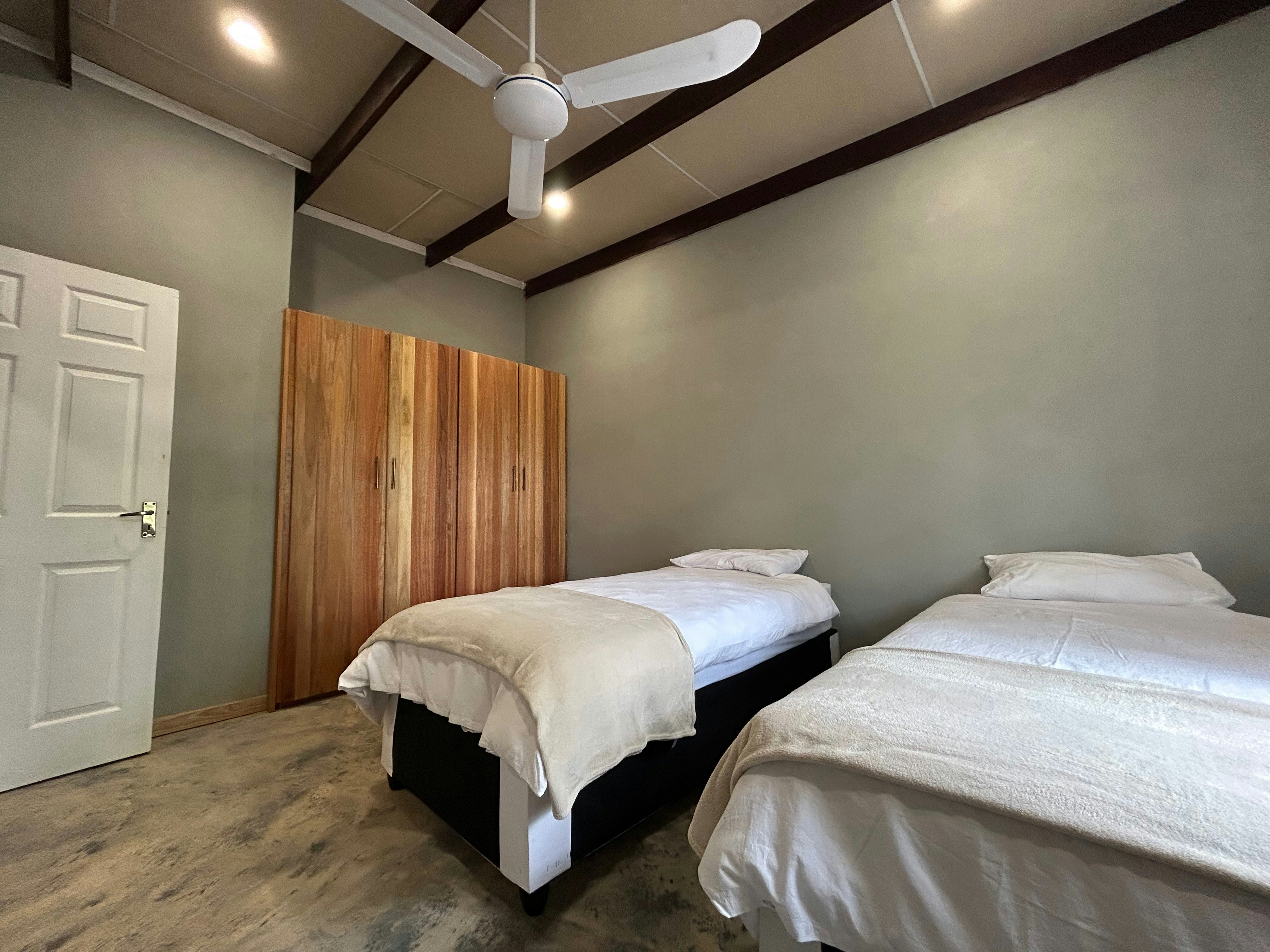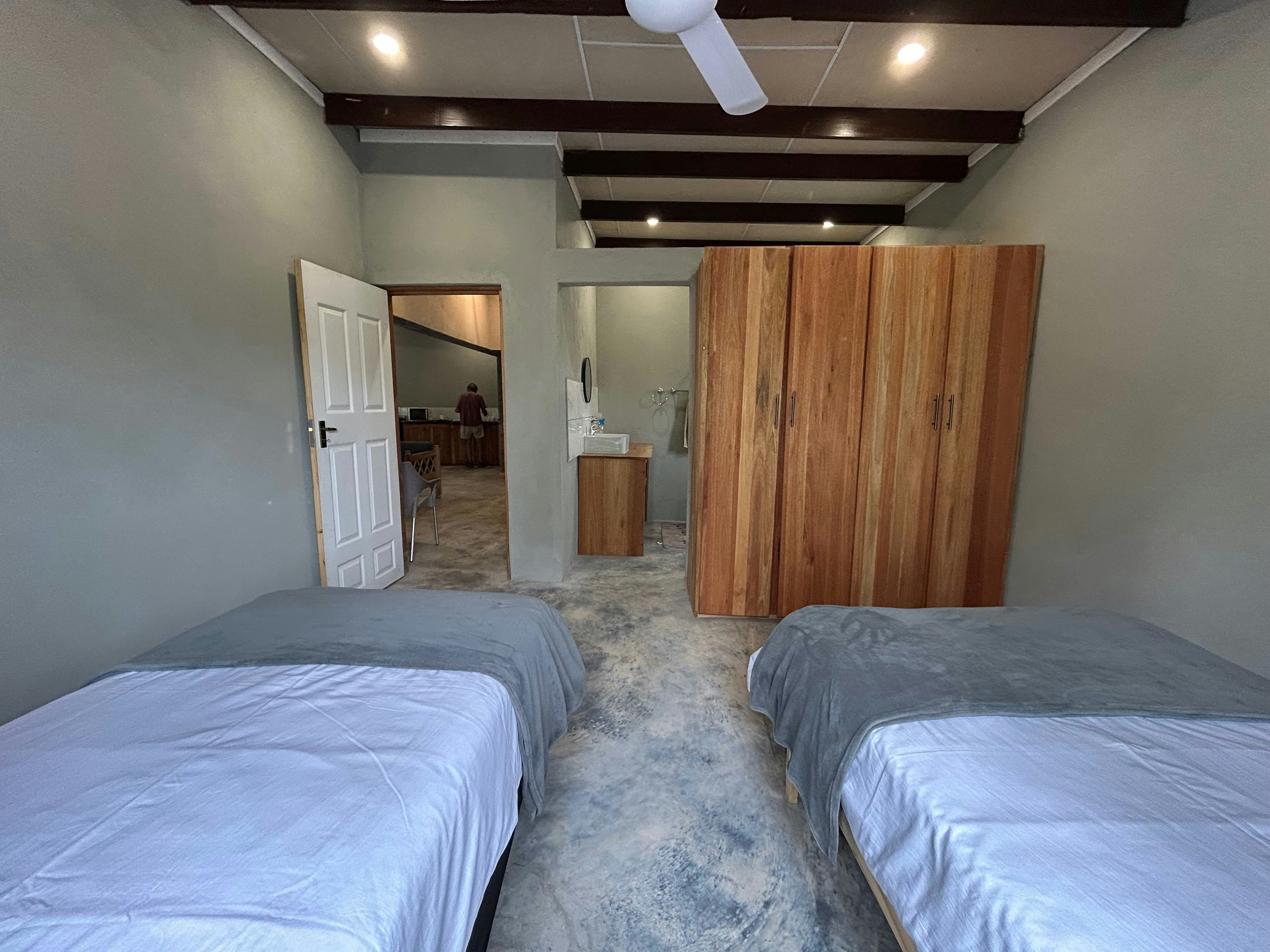 Hierdie huis bestaan uit 2 en suite-slaapkamers, elk met 2 enkelbeddens, en die badkamers is toegerus met 'n stort, toilet en wasbak.