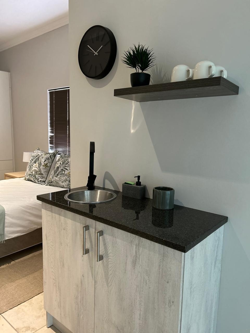 Die woonstel is geskik vir 2 gaste en het 'n slaapkamer en 'n en suite-badkamer. Die slaapkamer het 'n dubbelbed en die en suite-badkamer het 'n stort of bad, toilet en wasbak. Die eenheid het ook 'n kombuisie met 'n yskassie, mikrogolf, broodrooster en ketel.