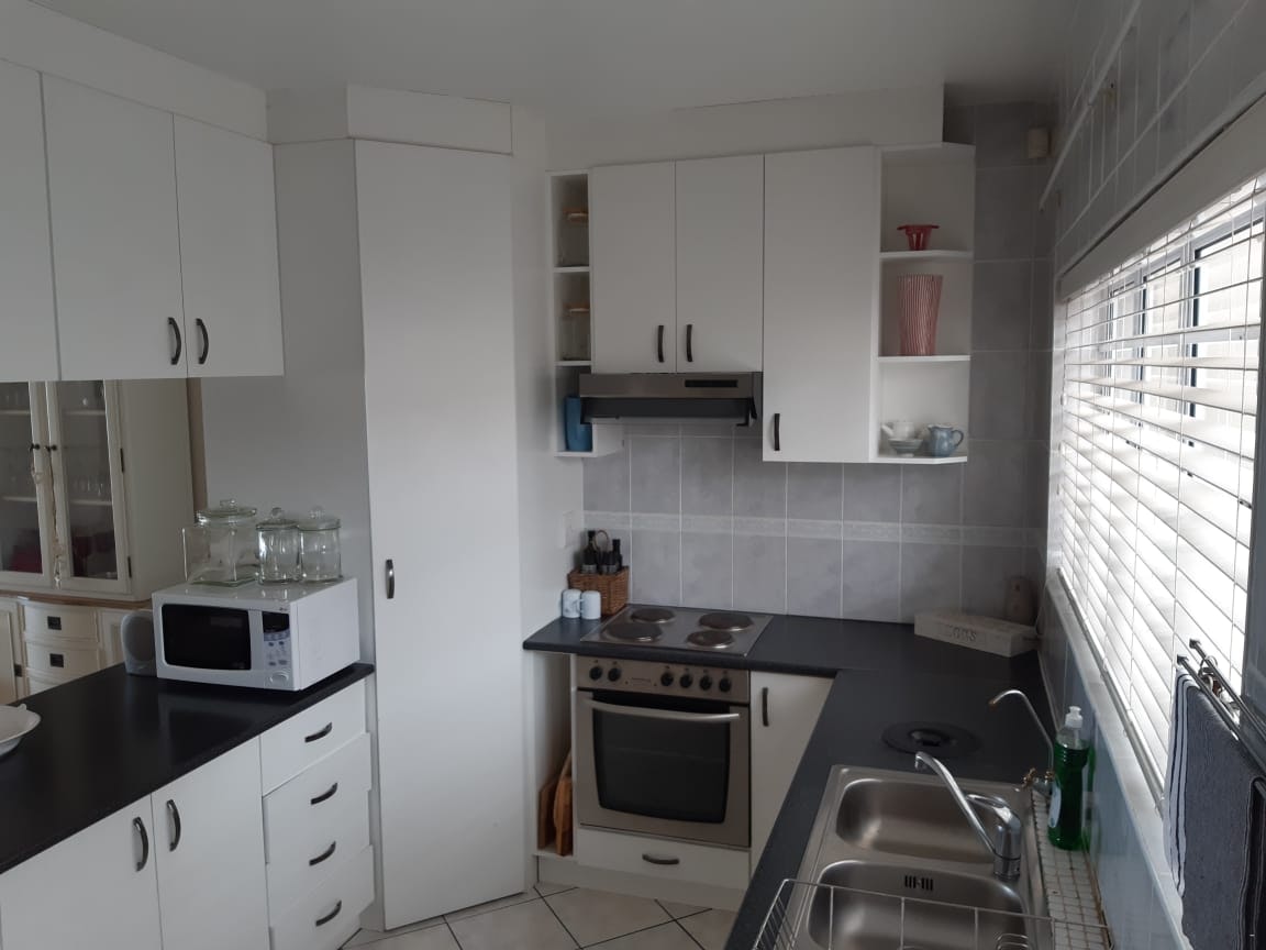 The kitchen is equipped for self-catering with a fridge, a microwave, a stove and oven, and meals can be enjoyed at the dining table. Guests can relax in the comfortable lounge which is equipped with a TV with selected DStv channels, and an indoor gas braai is available for use.