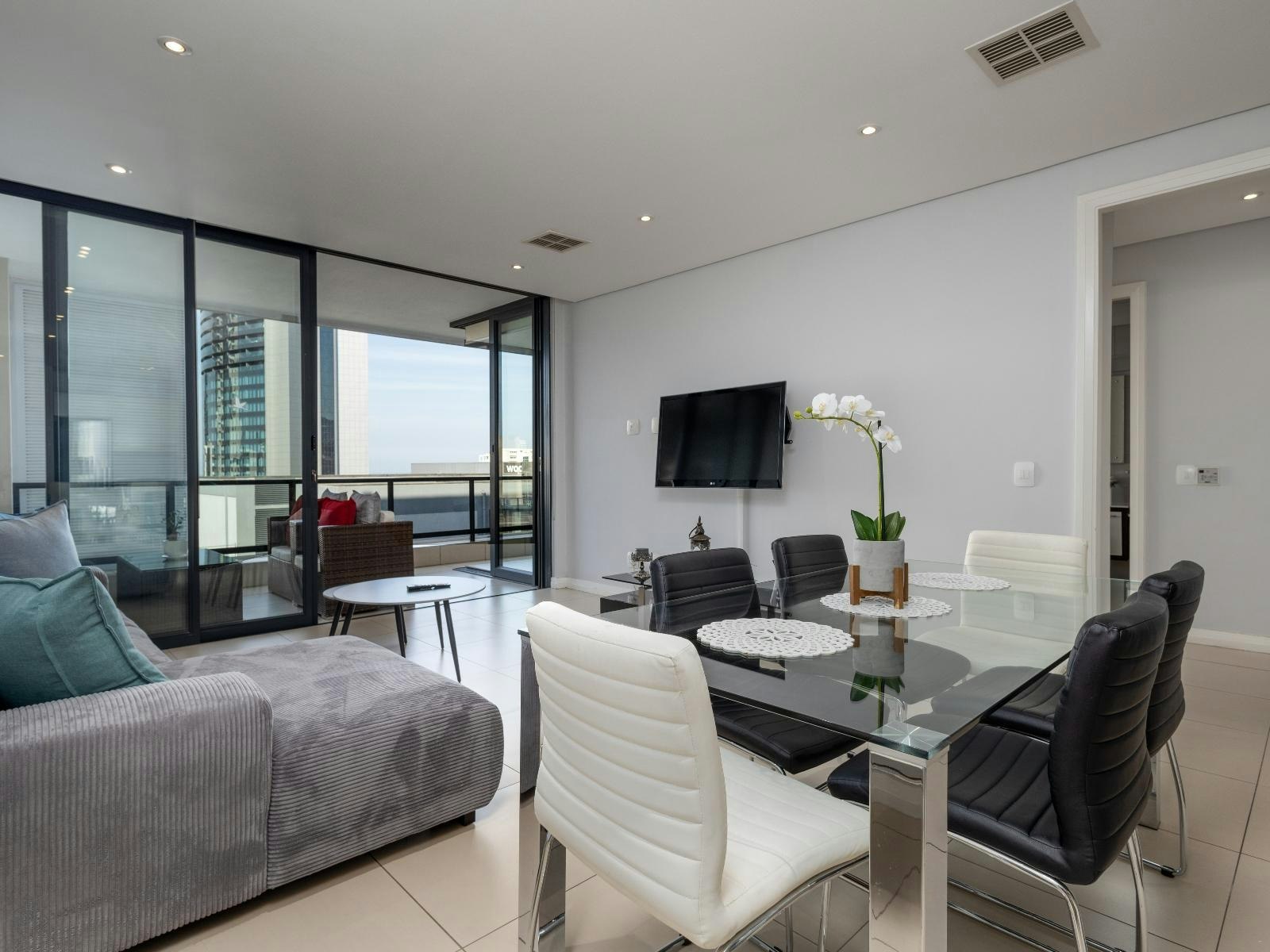 The apartment consists of 3 bedrooms and 2 bathrooms, which can comfortably accommodate up to 6 guests. The main bedroom is furnished with a king-size bed, while the second and third bedrooms are each furnished with 2 single beds. The bathrooms are fitted with bath and shower facilities.