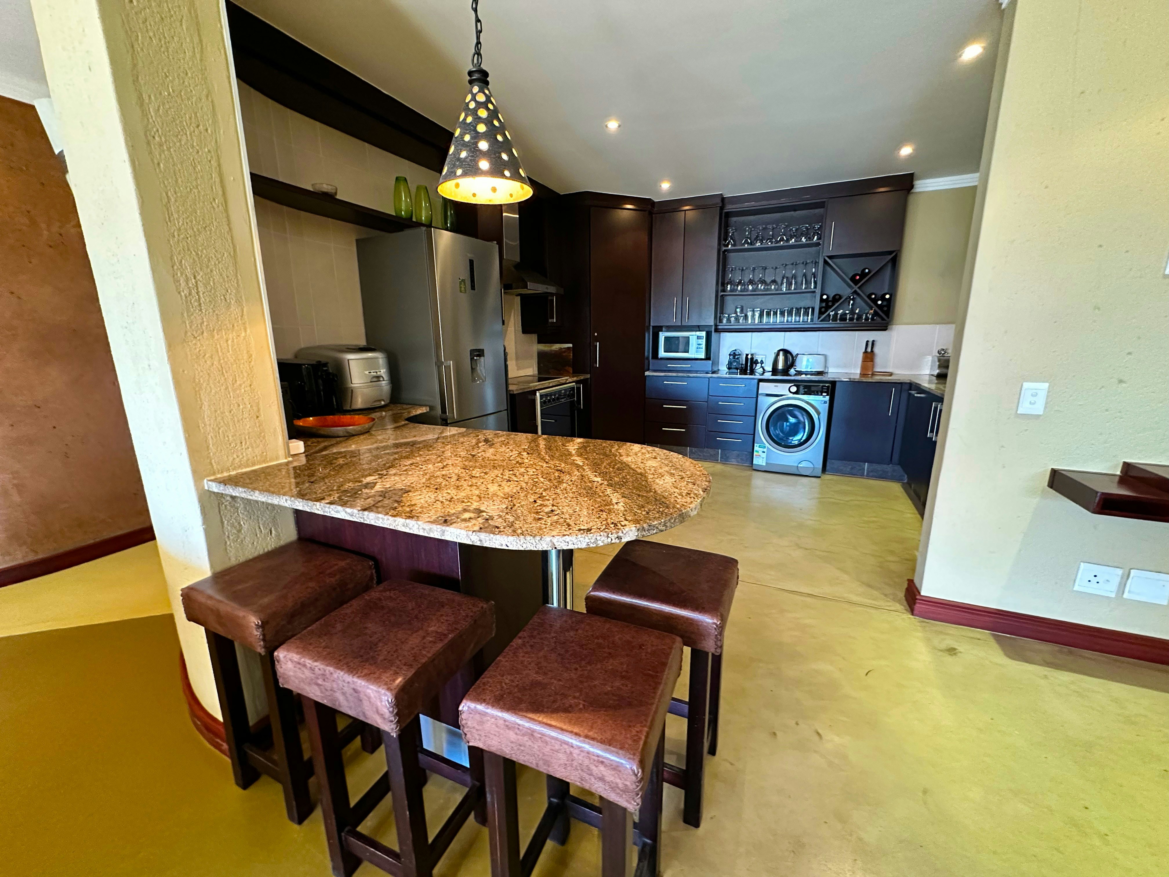 Die eenheid spog met 'n volledig toegeruste kombuis met 'n stoof, oond, mikrogolfoond, lugbraaier, ketel, broodrooster, koffiemasjien, ysmasjien, eetgerei, breekware, yskas-vrieskas, skottelgoedwasser, wasmasjien en ontbyttoonbank met stoele. Die sitkamer en eetkamer bied gemaklike sitplek vir gaste om te eet en te ontspan. Vir vermaak is 'n slim-TV en toegang tot gratis WiFi beskikbaar.
