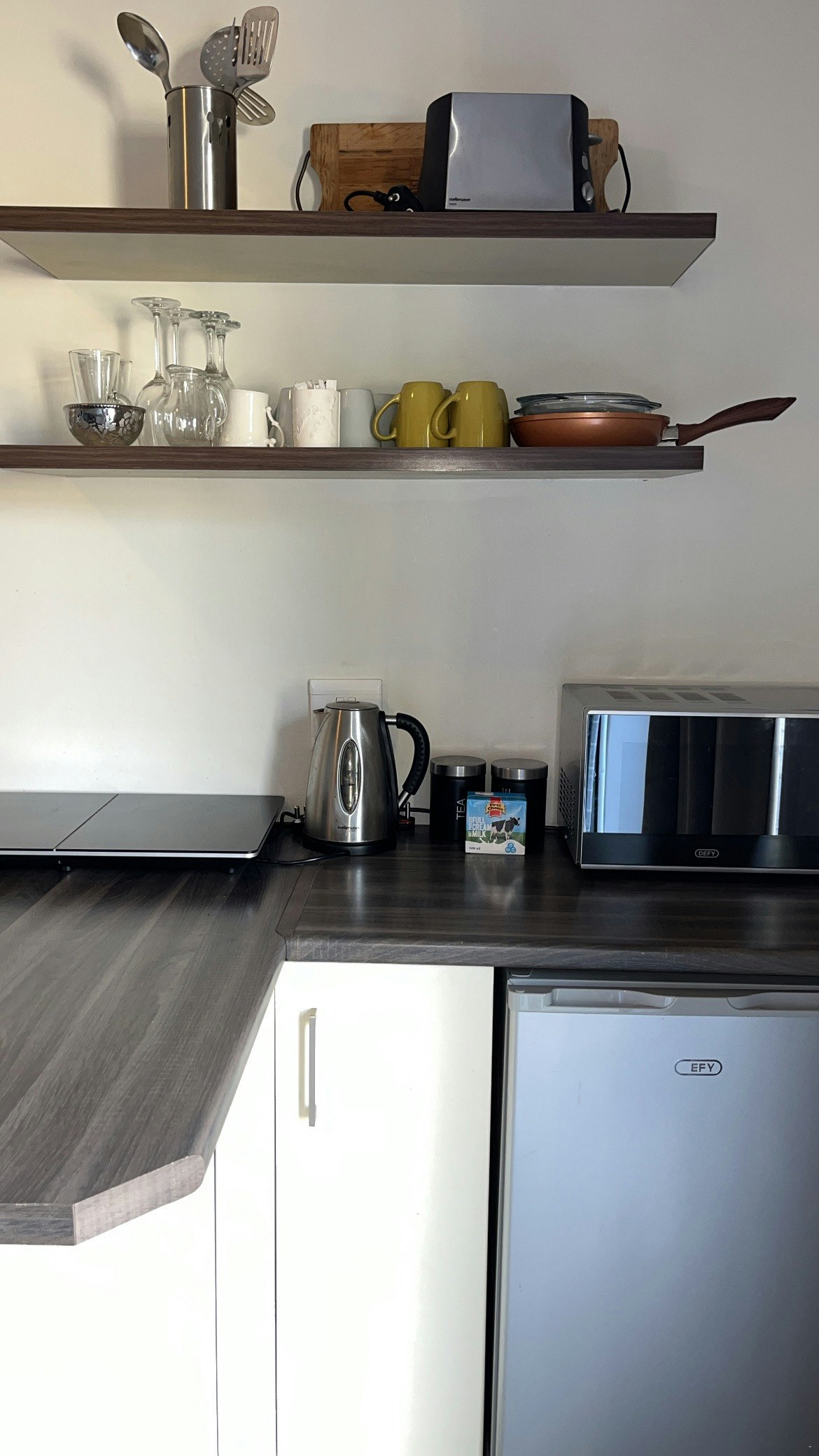 First choice and must. The place had everything I needed. There is a hotplate if you want to cook or heat something. Be sure to know the trick to enjoy the TV. They have full Netflix. It was such a nice treat to enjoy in the evening. The bed's electric blanket was a lovely luxury.