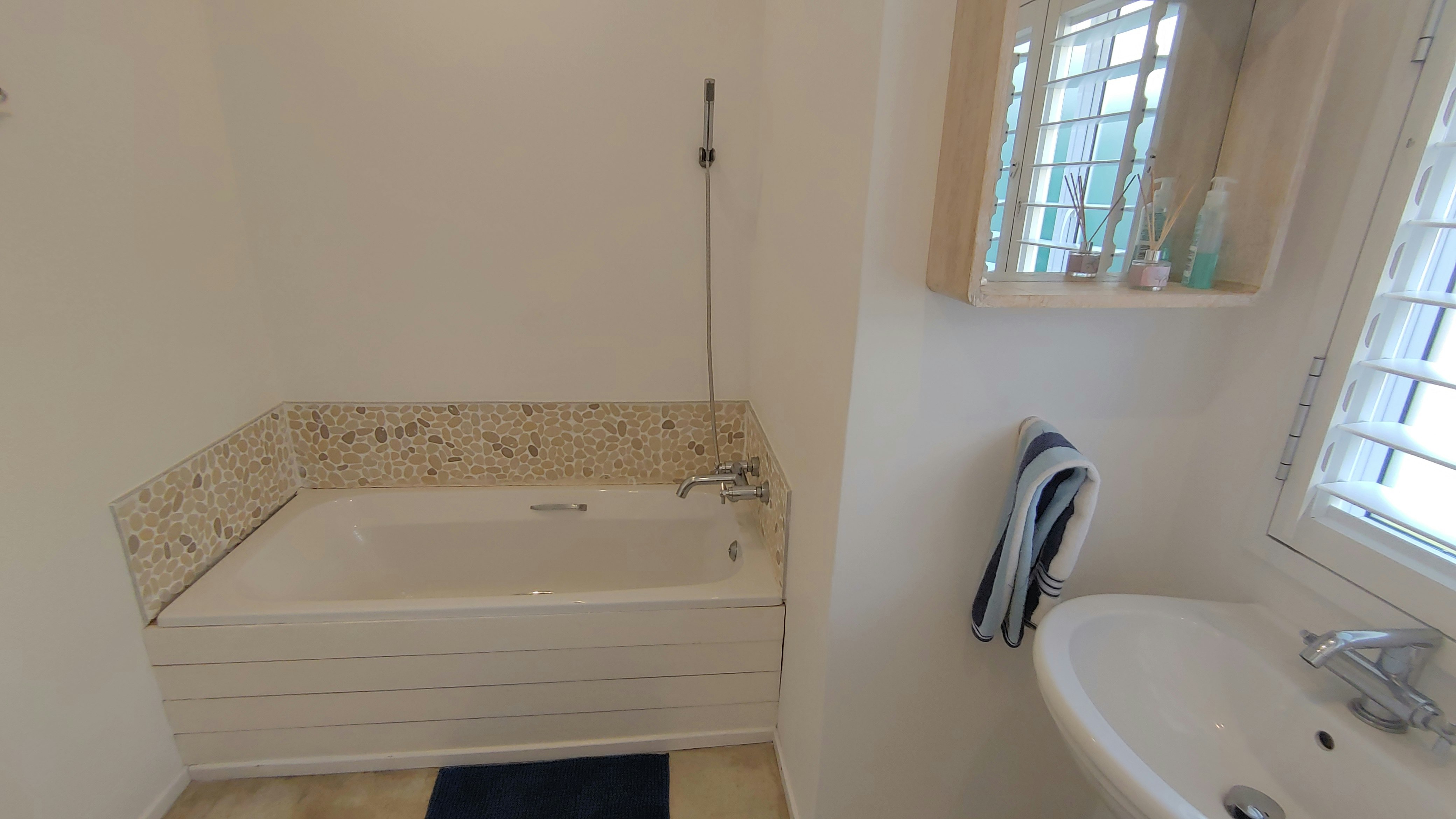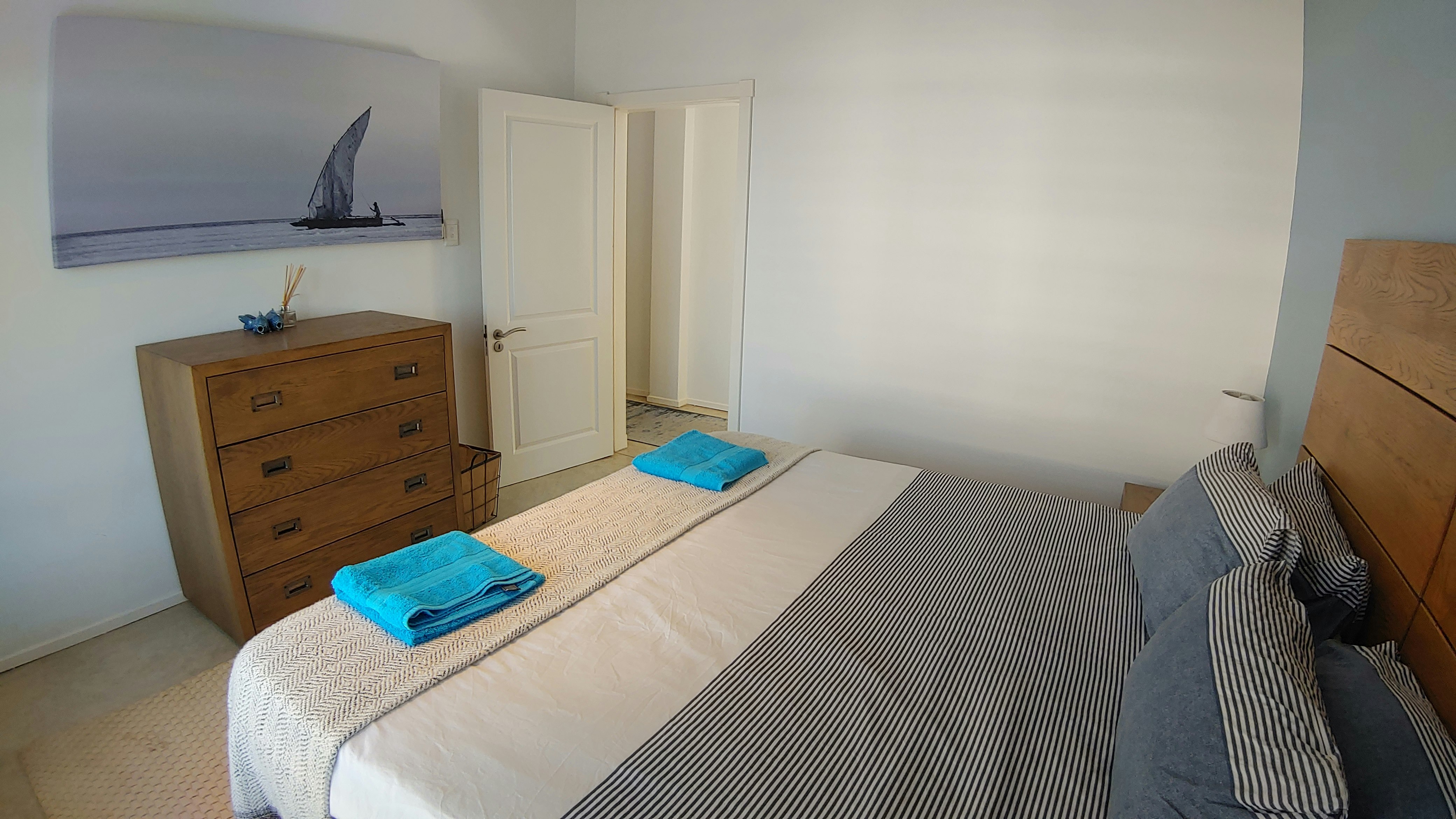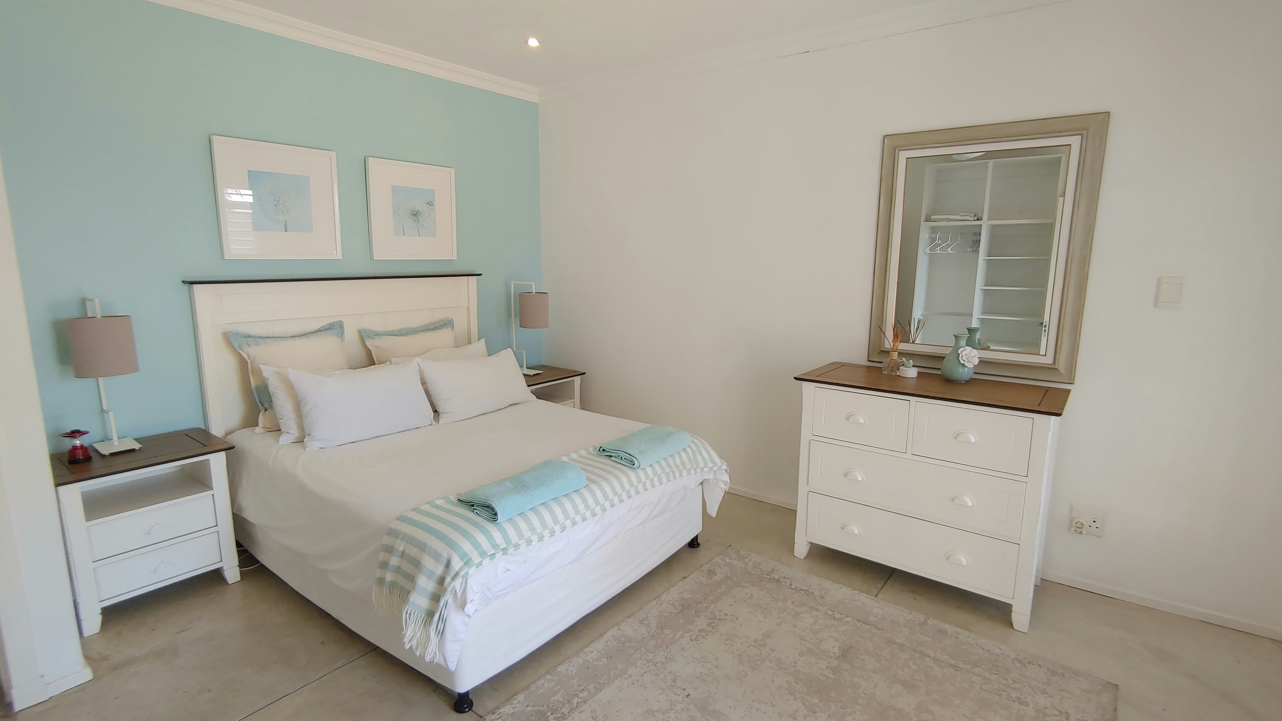 Dié dubbelverdiepinghuis kan tot 10 gaste akkommodeer in 4 slaapkamers en 4 badkamers. Die eerste slaapkamer is oopplan en is ingerig met 'n koninggrootte-bed en 'n en suite-badkamer wat toegerus is met 'n bad, stort, wasbak en toilet. Die tweede slaapkamer is ingerig met 'n koningingrootte-bed en het toegang tot 'n en suite-badkamer wat met 'n stort, wasbak en toilet toegerus is. Die derde slaapkamer is ingerig met 'n koninggrootte-bed, terwyl die vierde slaapkamer ingerig is met 'n stapelbed en 2 enkelbeddens wat in 'n koninggrootte-bed omskep kan word. Die derde en vierde slaapkamers deel 'n badkamer wat toegerus is met 'n stort wat oor die bad, wasbak en toilet vasgemaak is. Daar is ook 'n gastebadkamer wat met 'n wasbak en toilet toegerus is. Linne en handdoeke word voorsien.