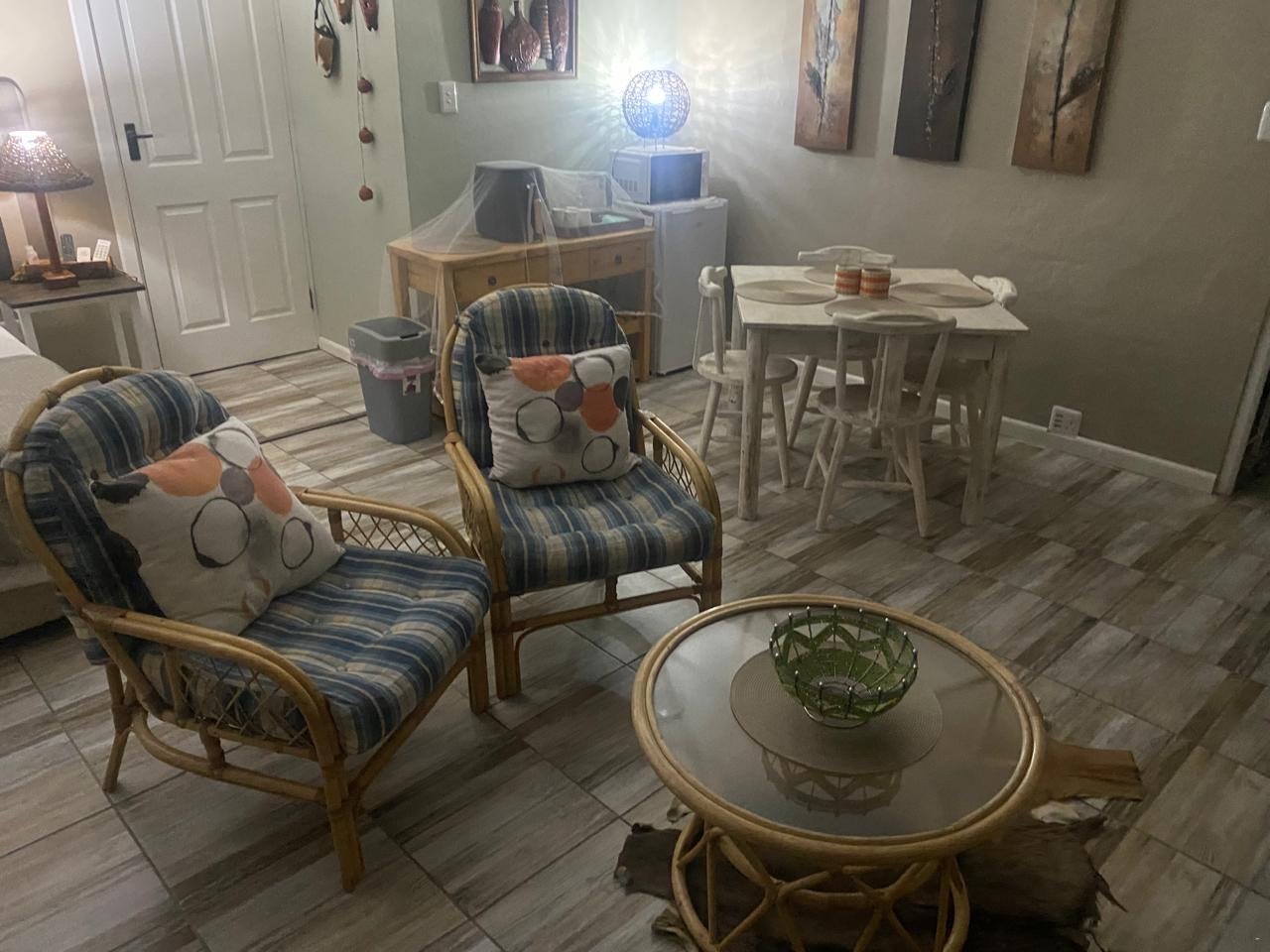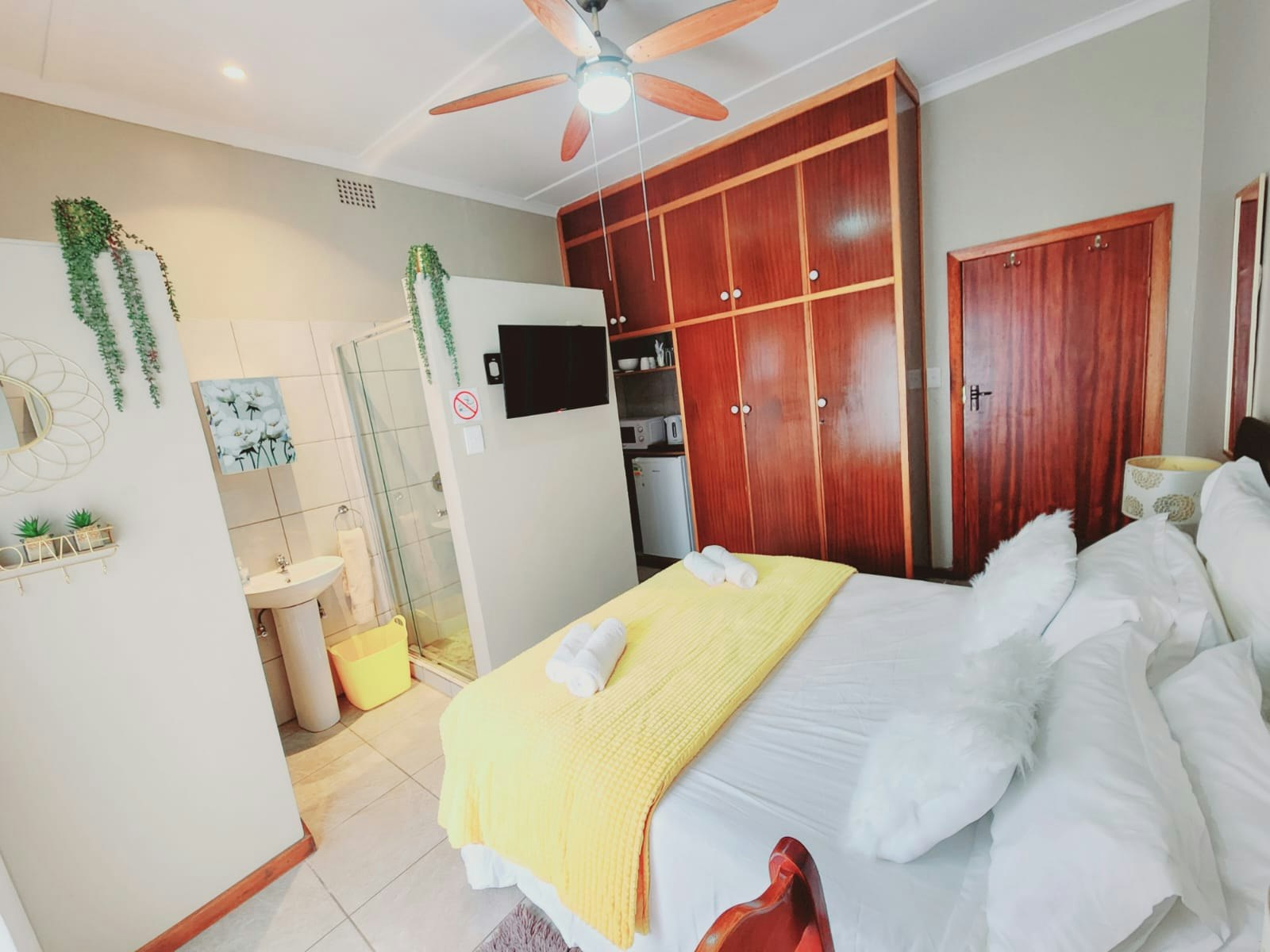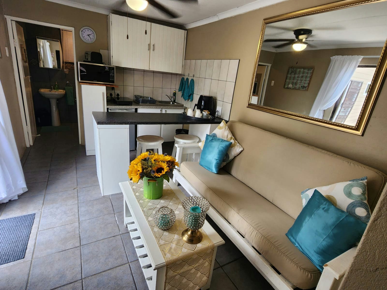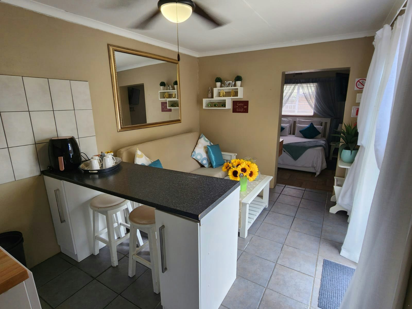 Kamer 1 bied slaapplek vir 4 gaste en bestaan uit 1 slaapkamer, 1 badkamer en 'n oopplan-kombuis met 'n sitkamer. Die slaapkamer is ingerig met 'n koningingrootte-bed en beskik oor 'n en suite-badkamer met 'n stort, toilet en wasbak. Die kombuisie is toegerus met 'n yskassie, induksieplaat, lugbraaier, mikrogolfoond, broodrooster, basiese eetgerei en breekware, sowel as tee- en koffiemaakgeriewe. Die sitkamer is ingerig met 'n dubbelslaapbank wat slaapplek vir 2 gaste bied. Die skuifdeur lei na buite na die patio-area met buitemeubels en 'n gedeelde swembad en braaigeriewe.