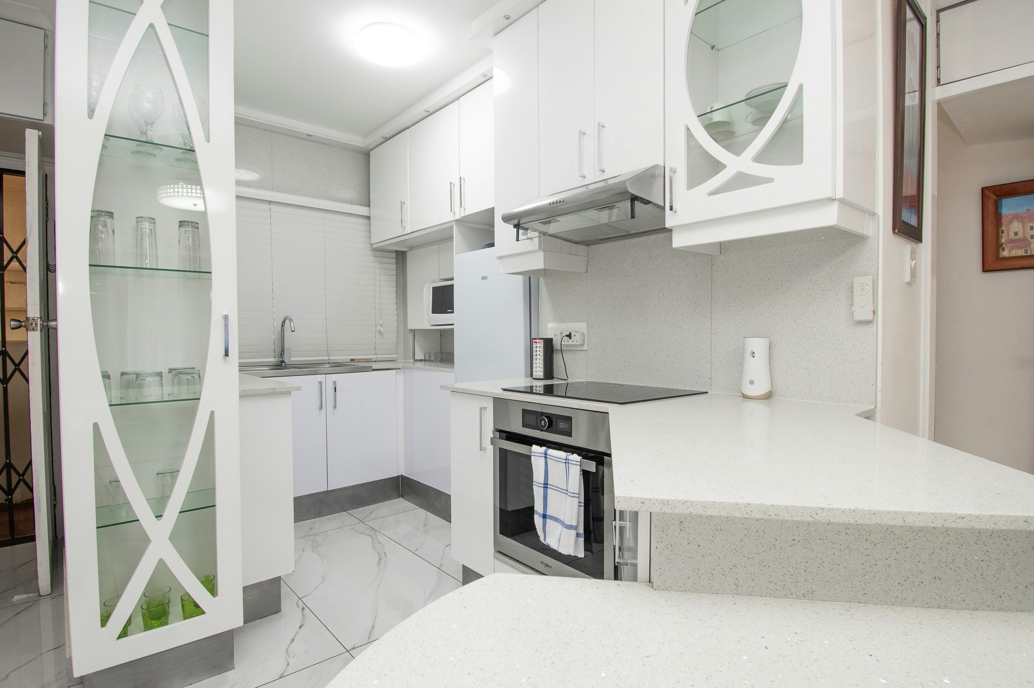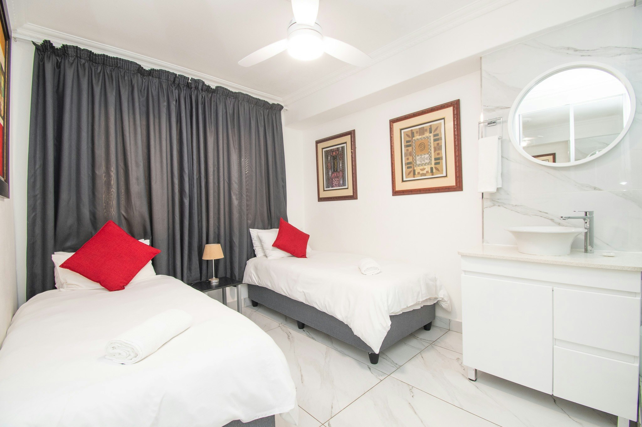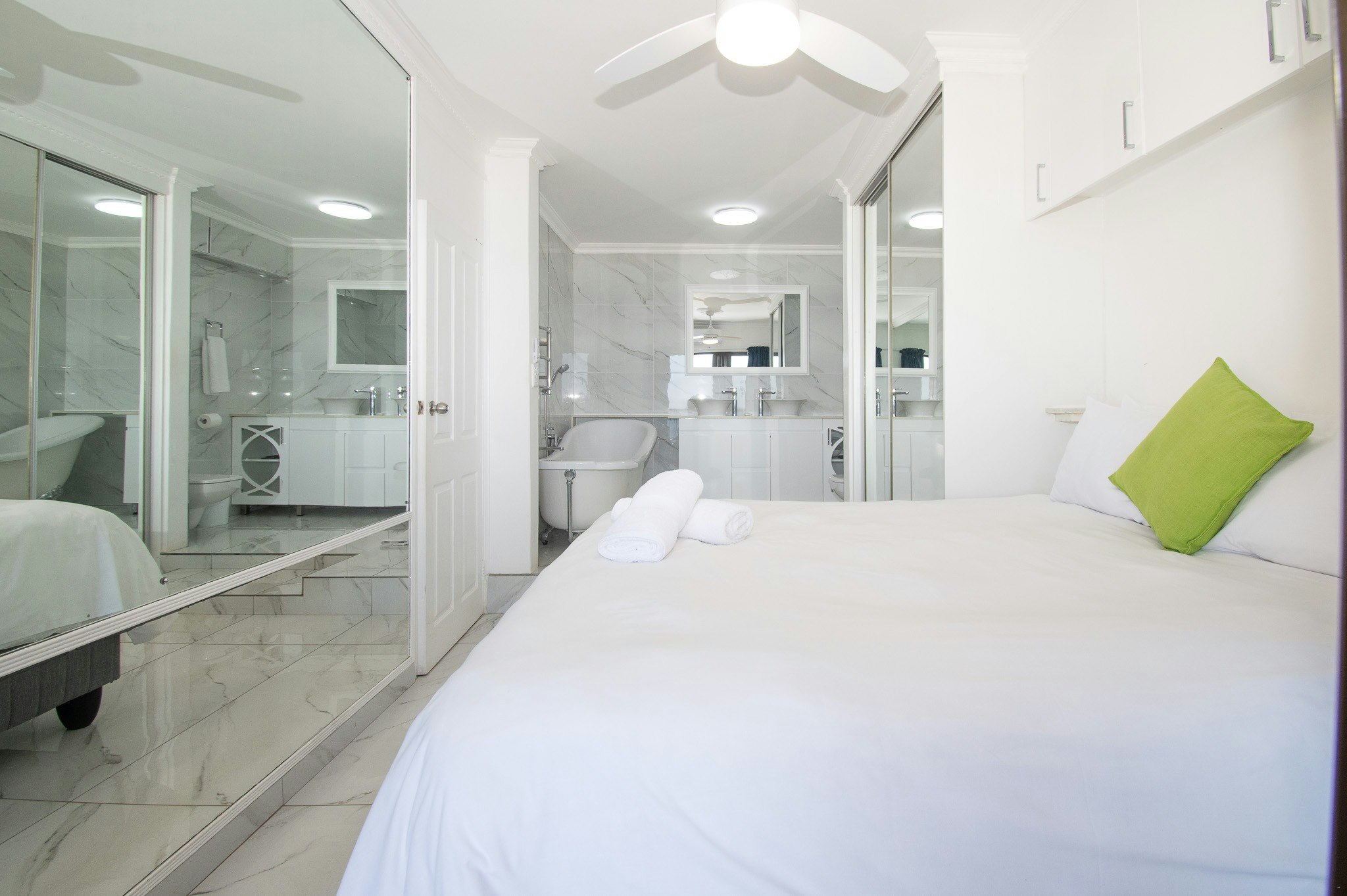 Die woonstel bied slaapplek aan 4 gaste en beskik oor 2 slaapkamers en 2 badkamers. Die hoofslaapkamer het 'n koningingrootte-bed en 'n en suite-badkamer met 'n bad. Die tweede slaapkamer het 2 enkelbeddens en 'n en suite-badkamer met 'n stort.