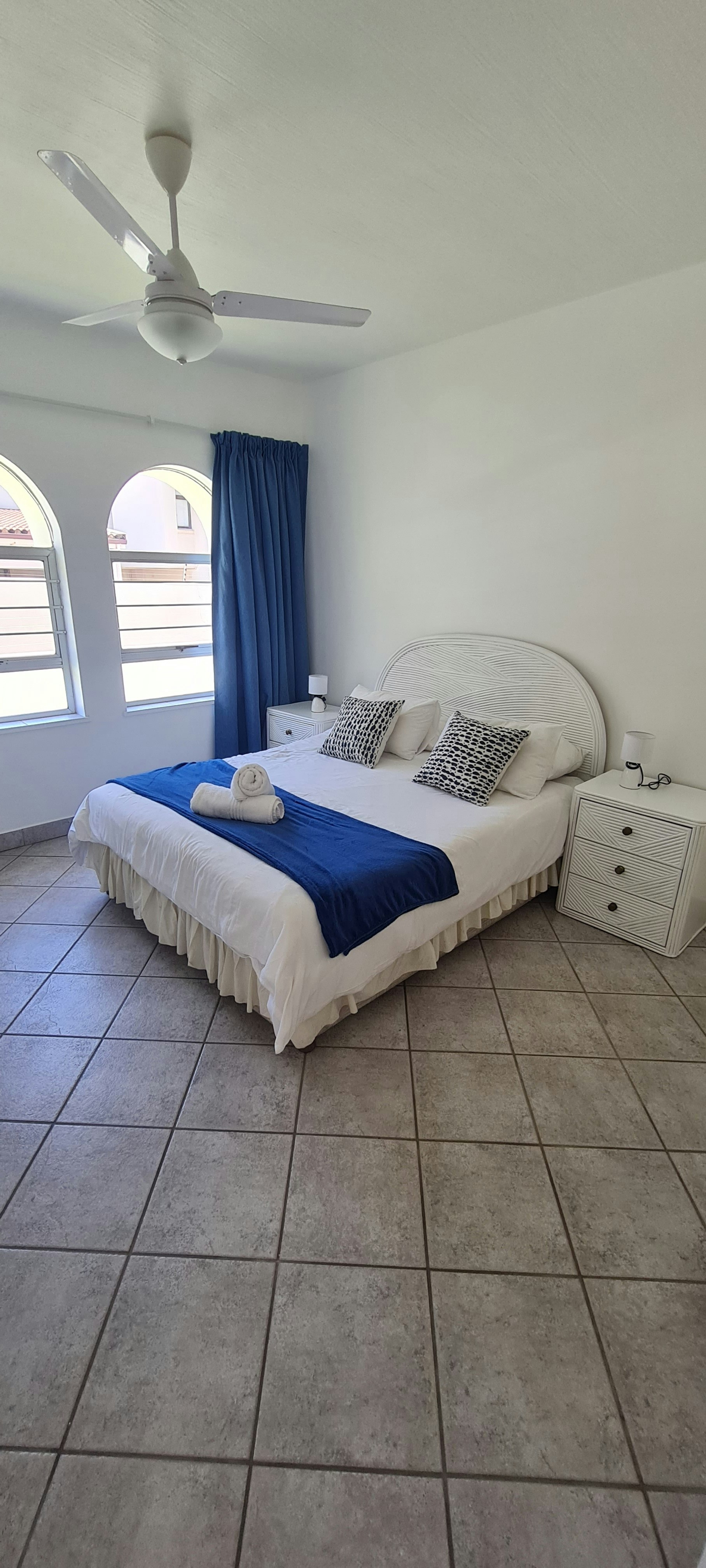 Die woonstel het slaapplek vir 6 gaste en beskik oor 3 slaapkamers en 2 badkamers. Die en suite-hoofslaapkamer het 'n koninggrootte-bed en daar is 'n toilet, wasbak en 'n stort-oor-bad in die badkamer. Die orige slaapkamers het onderskeidelik 'n dubbelbed en 2 enkelbeddens en deel 'n badkamer wat 'n toilet, wasbak en 'n stort-oor-bad het.