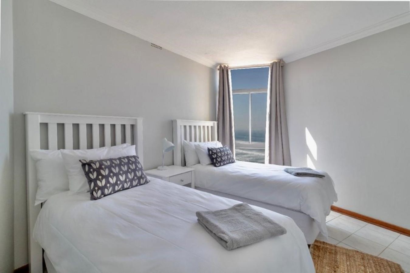 Die woonstel bied slaapplek aan 4 volwassenes en 1 kind en beskik oor 2 slaapkamers en 'n badkamer. Die hoofslaapkamer het 'n dubbelbed en die tweede slaapkamer het 2 enkelbeddens en 'n kinderbed. Die badkamer het 'n hoekbad, stort, toilet en wasbak.