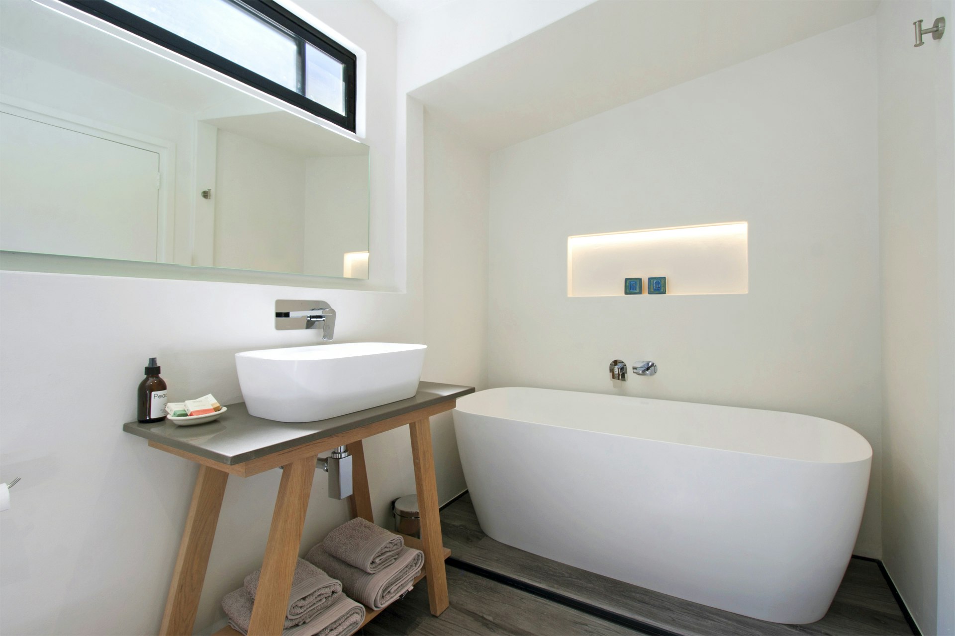 Die kombuis lei na 'n onderdakstoep met 'n etenstafel en 'n groot ingeboude braai. Gaste het ook toegang tot 'n plonspoel, sauna, buitestort en veilige parkeerplek op die perseel. Die huis is naby verskeie geriewe soos winkels en restaurante en is sowat 700 m van die strand af.