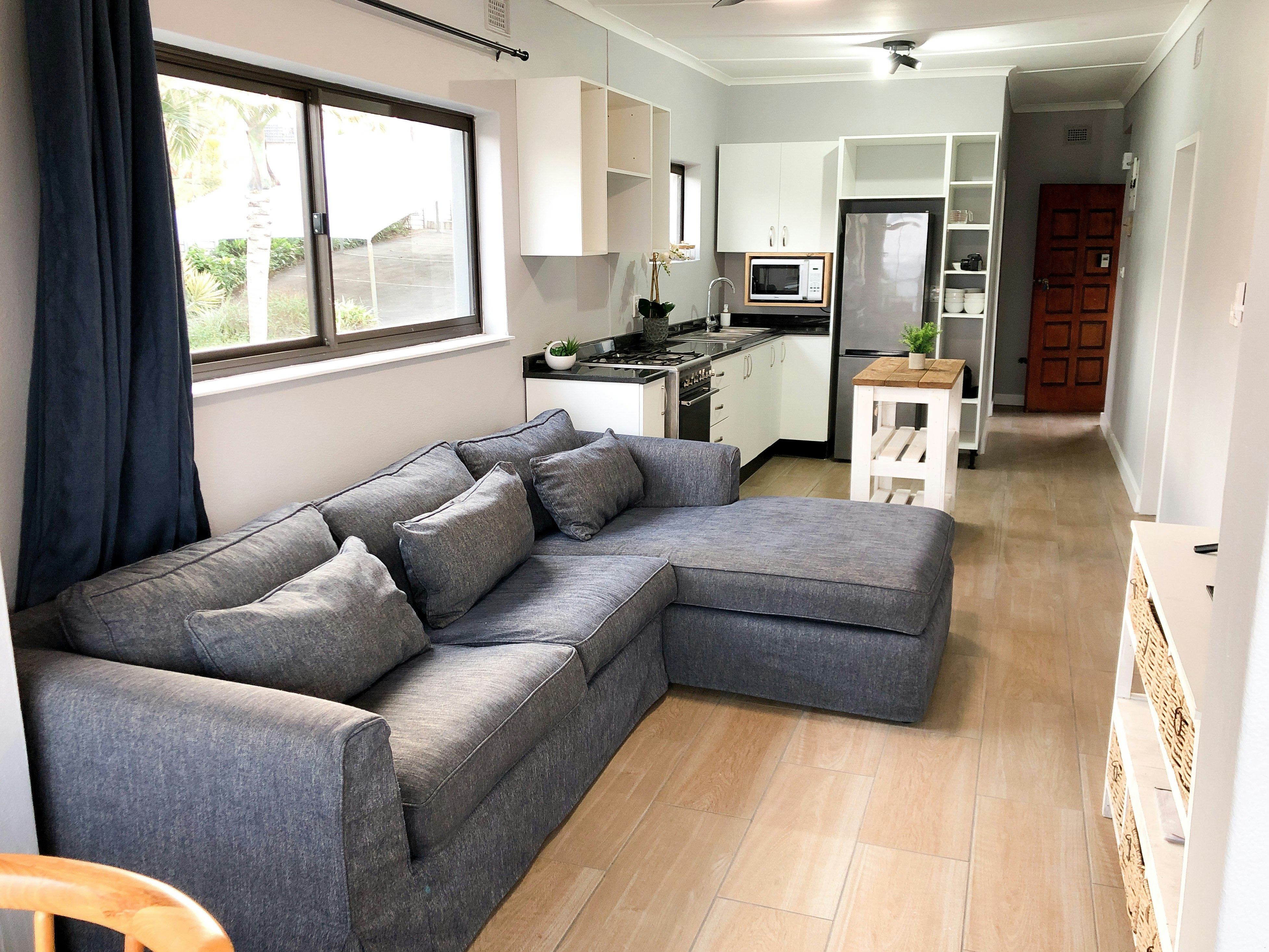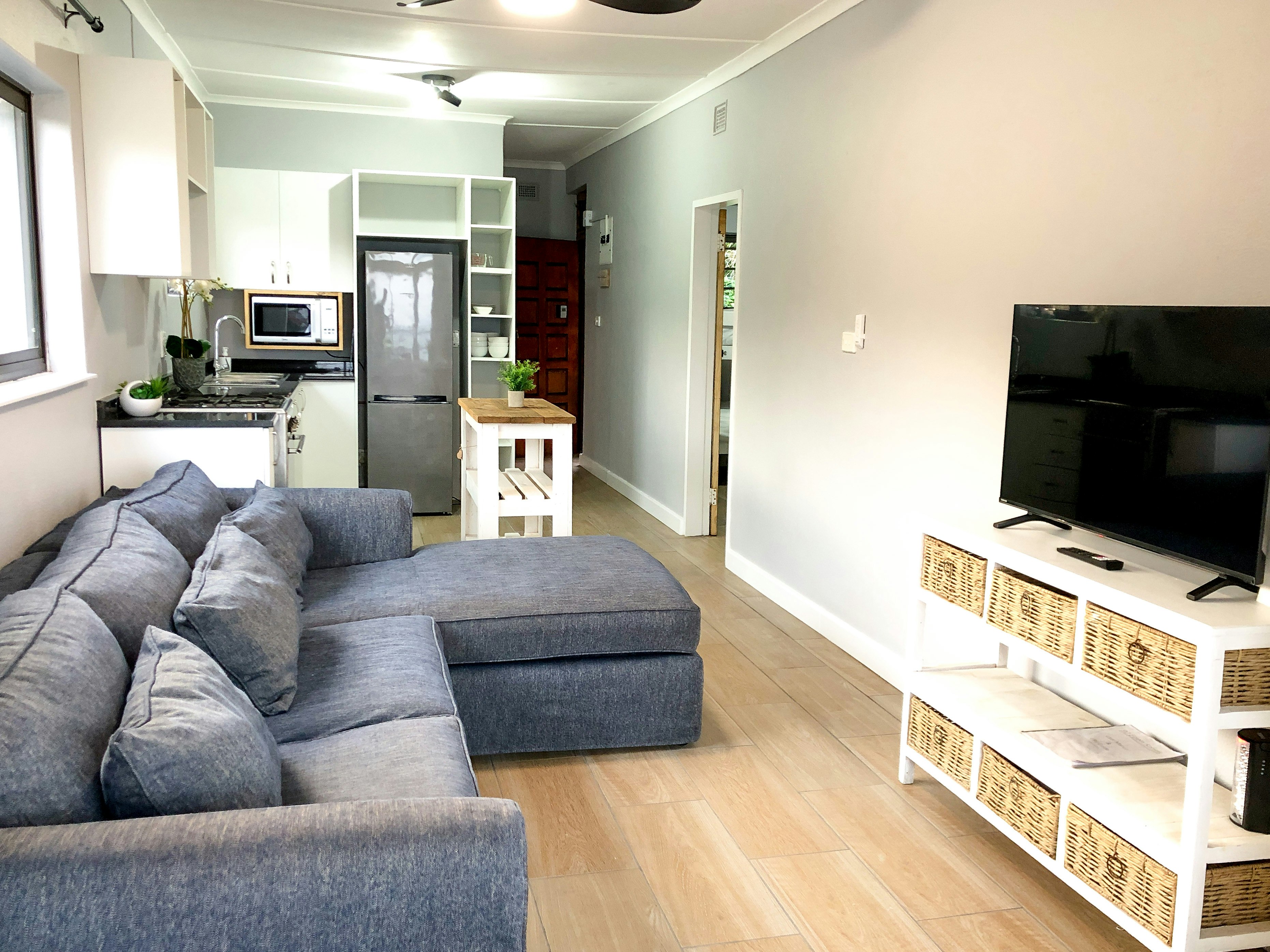 Die oopplan-sitkamer bied 'n TV met DStv Now en Netflix-programme; gratis WiFi is beskikbaar om media te stroom. Die sitkamer lei na 'n ingeslote balkon met groot vensters wat gaste kan oopmaak om die seebries in te laat.