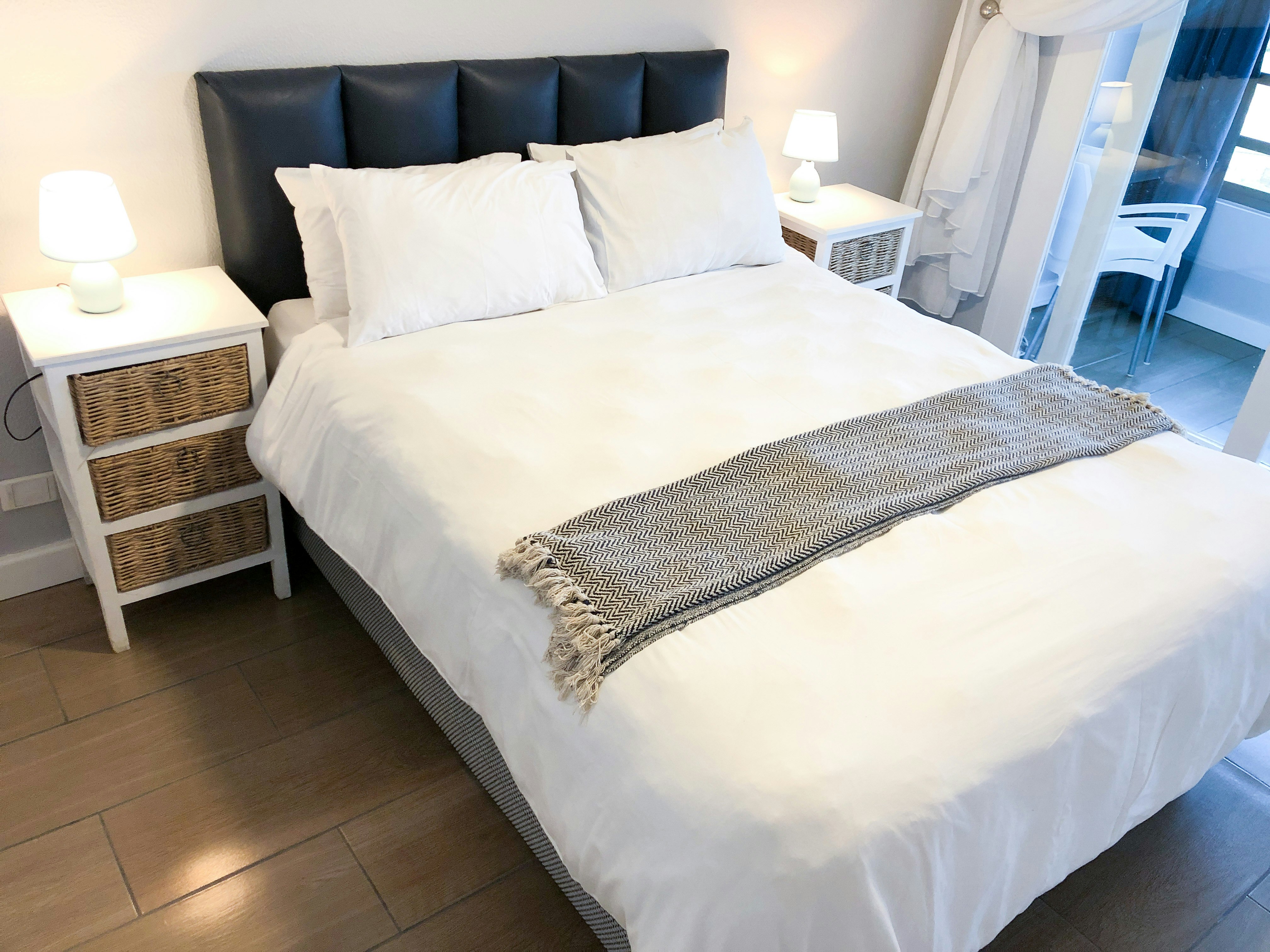 Hierdie woonstel met lugversorging is op die tweede verdieping geleë en bestaan uit 2 slaapkamers en 1 badkamer. Die hoofslaapkamer is gemeubileer met 'n koningingrootte-bed en bied pragtige uitsigte oor die see, en die tweede slaapkamer is toegerus met 'n dubbelbed en 'n stapelbed. Die badkamer het 'n wasbak, toilet en 'n stort. Die goed toegeruste kombuis bevat 'n yskas-vrieskas, 'n stoof, 'n oond, 'n mikrogolfoond, eetgerei en kookbenodigdhede. Gratis tee en koffie word voorsien.