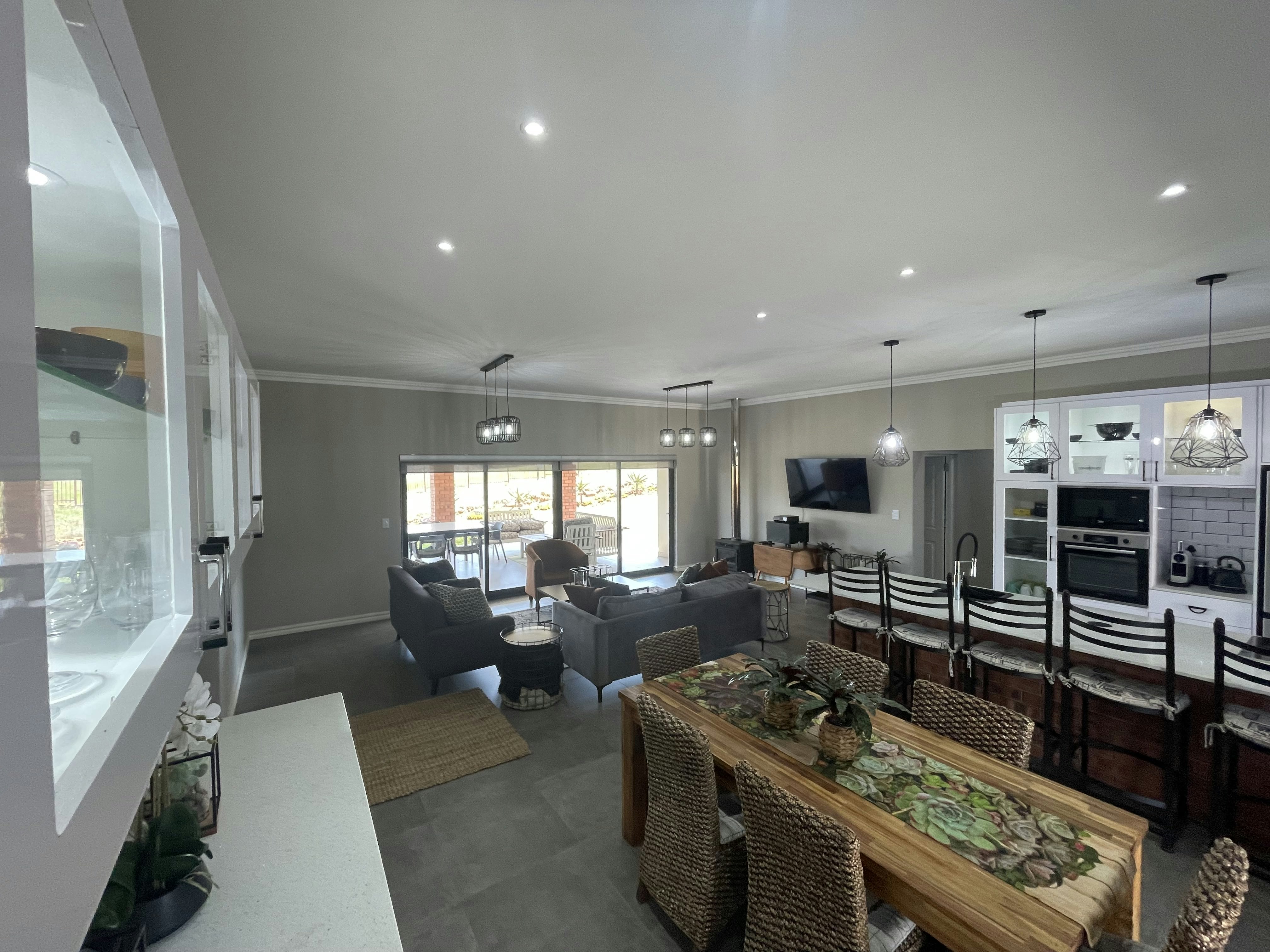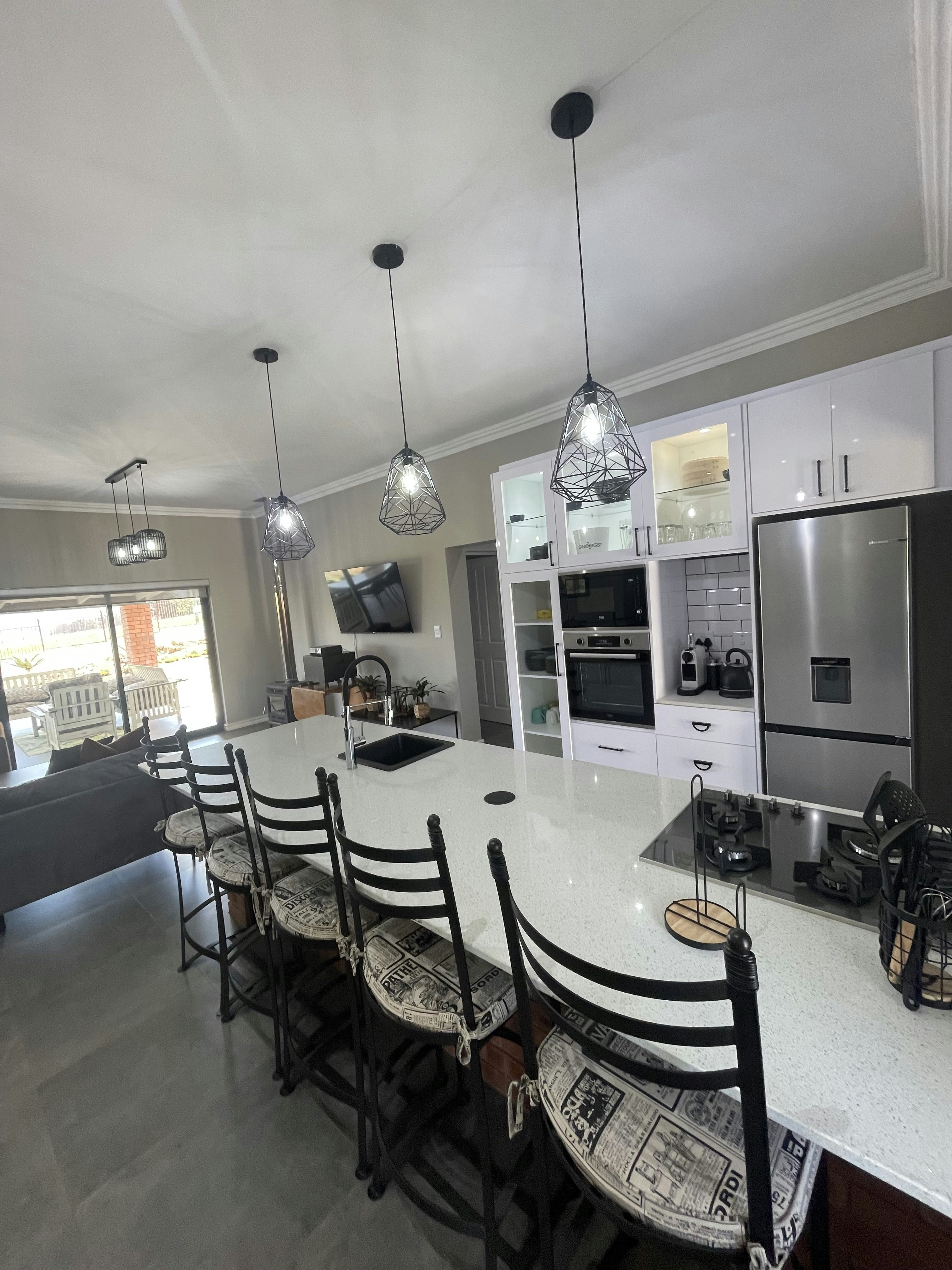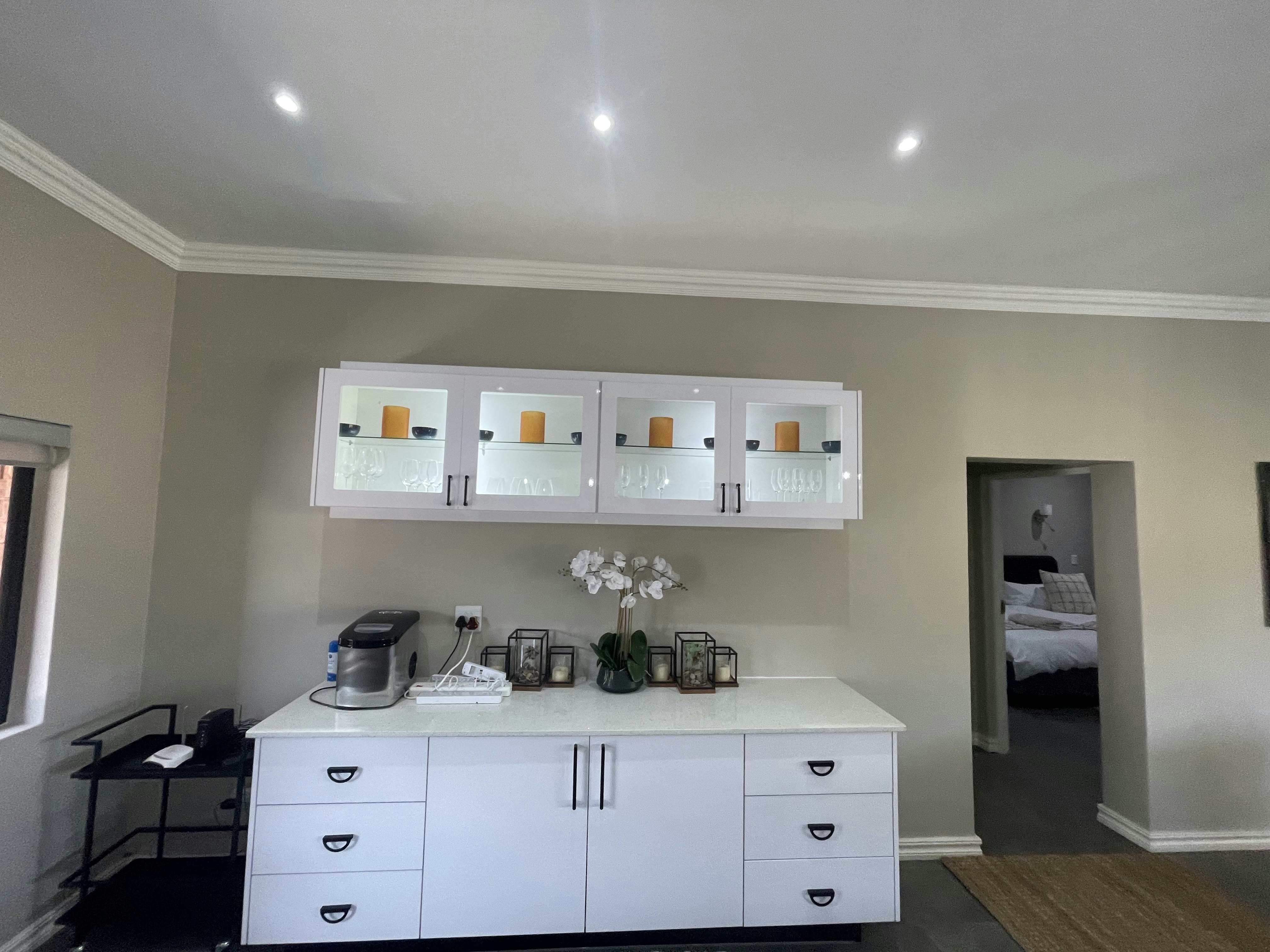 Die kombuis is met 'n gasstoof, oond, mikrogolf, ketel, koffiemasjien, eetgerei, breekware, ysmasjien, yskas-vrieskas en 'n toonbank met stoele toegeurs. Daar is ook 'n opwaskamer. Die sitarea en eetarea het gemaklike sitplek vir gaste om te eet en te ontspan terwyl hulle die pragtige uitsigte bewonder. Daar is ook kaggel, 'n TV met die volle DStv-pakket en gratis WiFi.