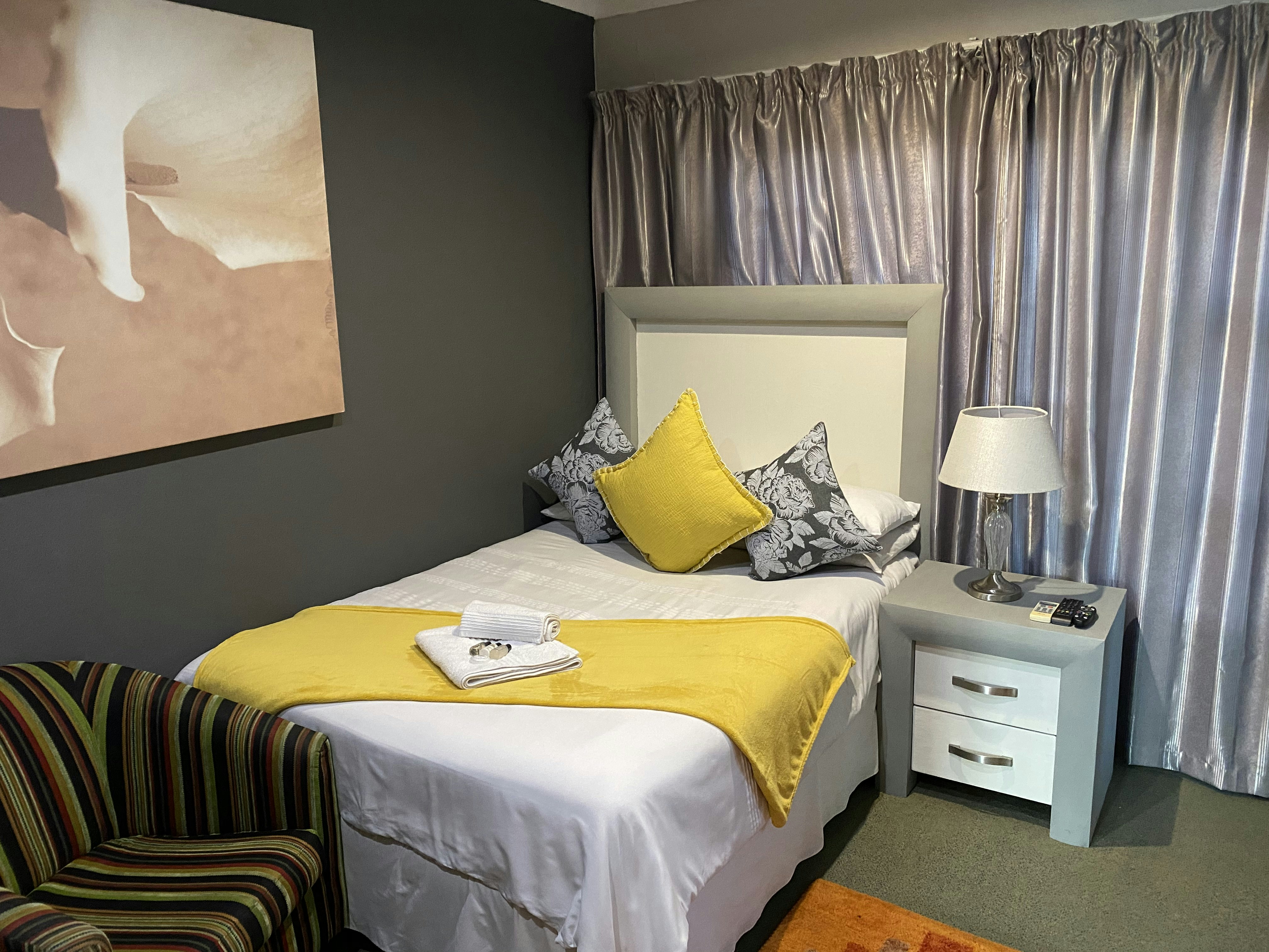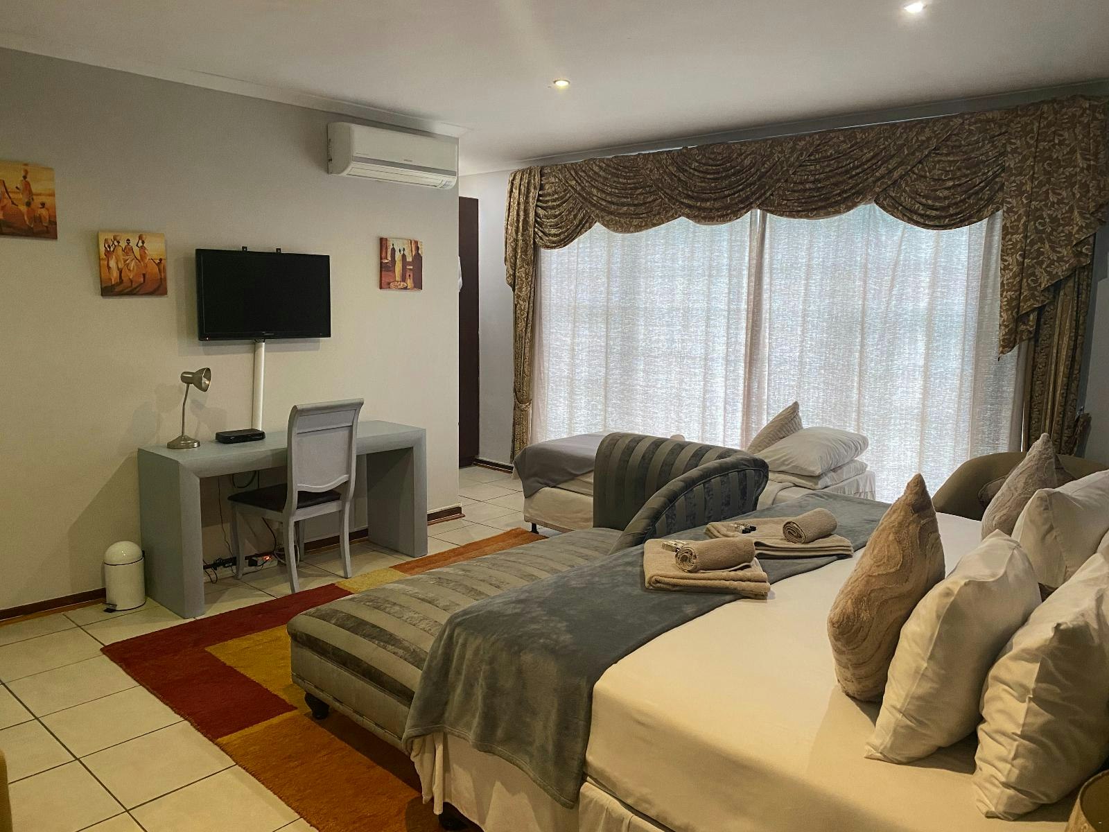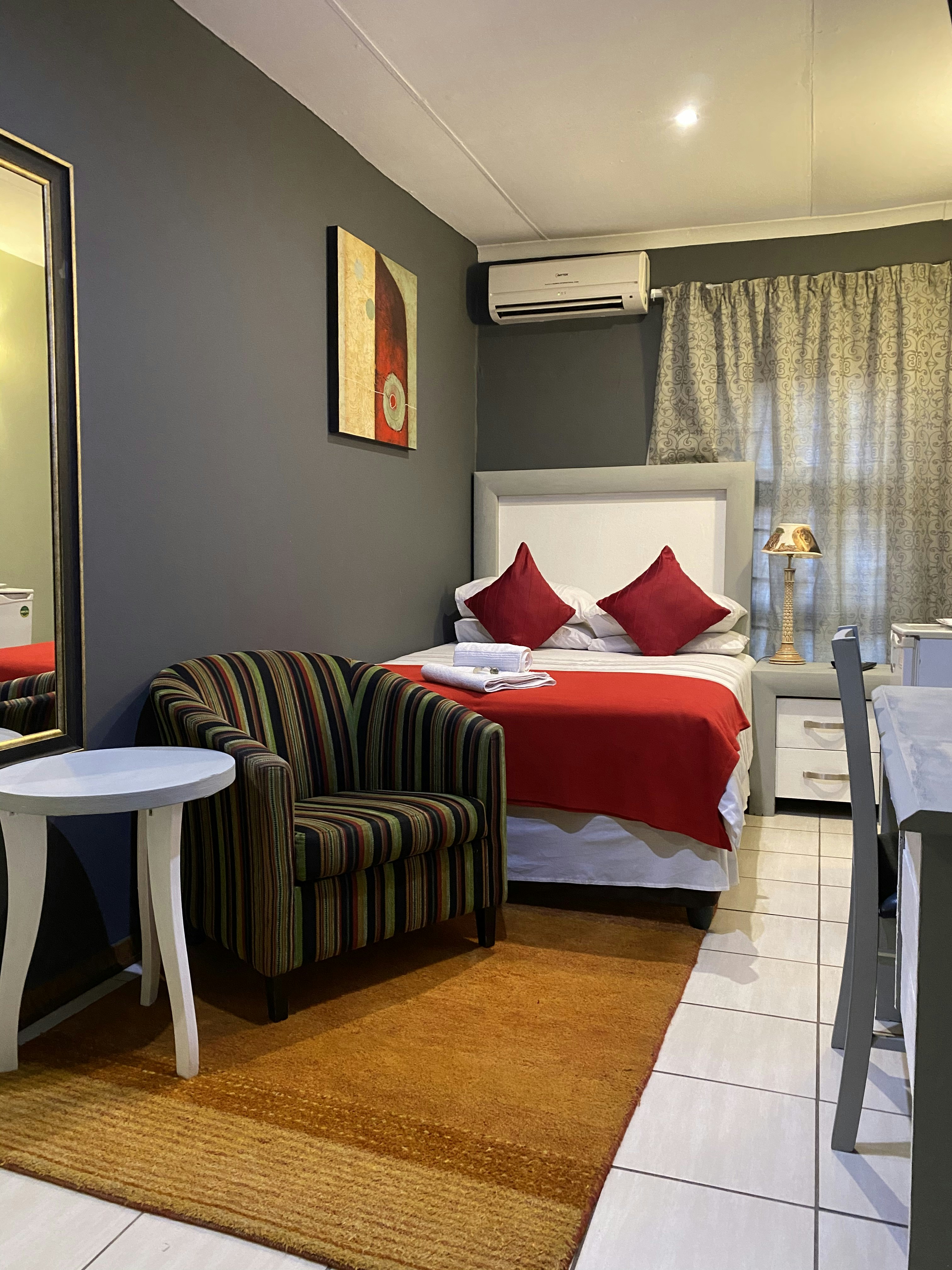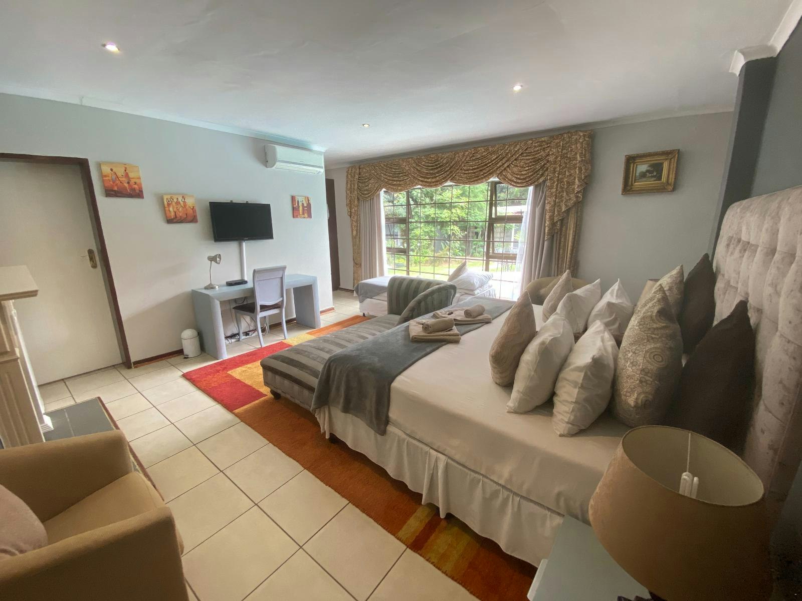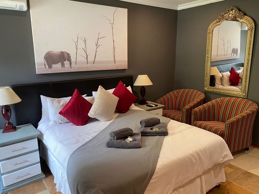 Guests have a choice of single, double and family rooms, each with its own en suite with complimentary toiletries. Each room is air-conditioned and features a TV with a selection of DStv channels, tea- and coffee-making facilities, a hairdryer, and Wi-Fi internet access. A turn-down service, and laundry service is available on request.