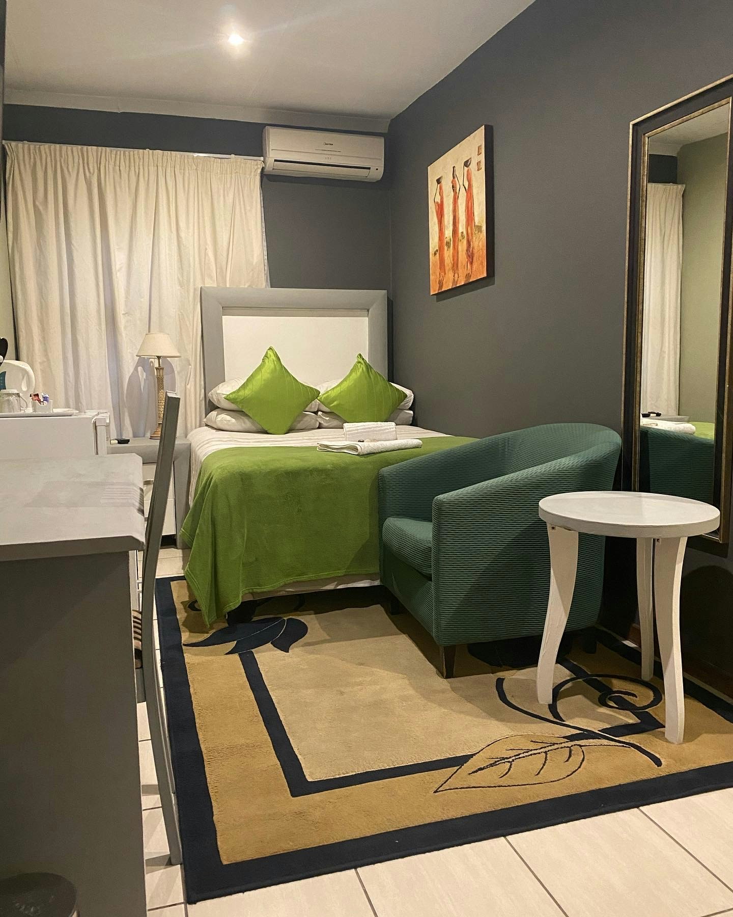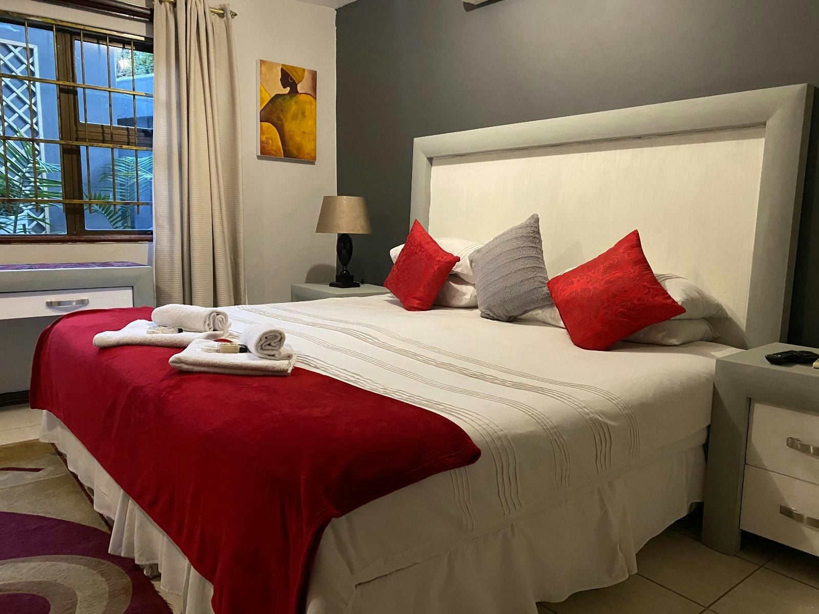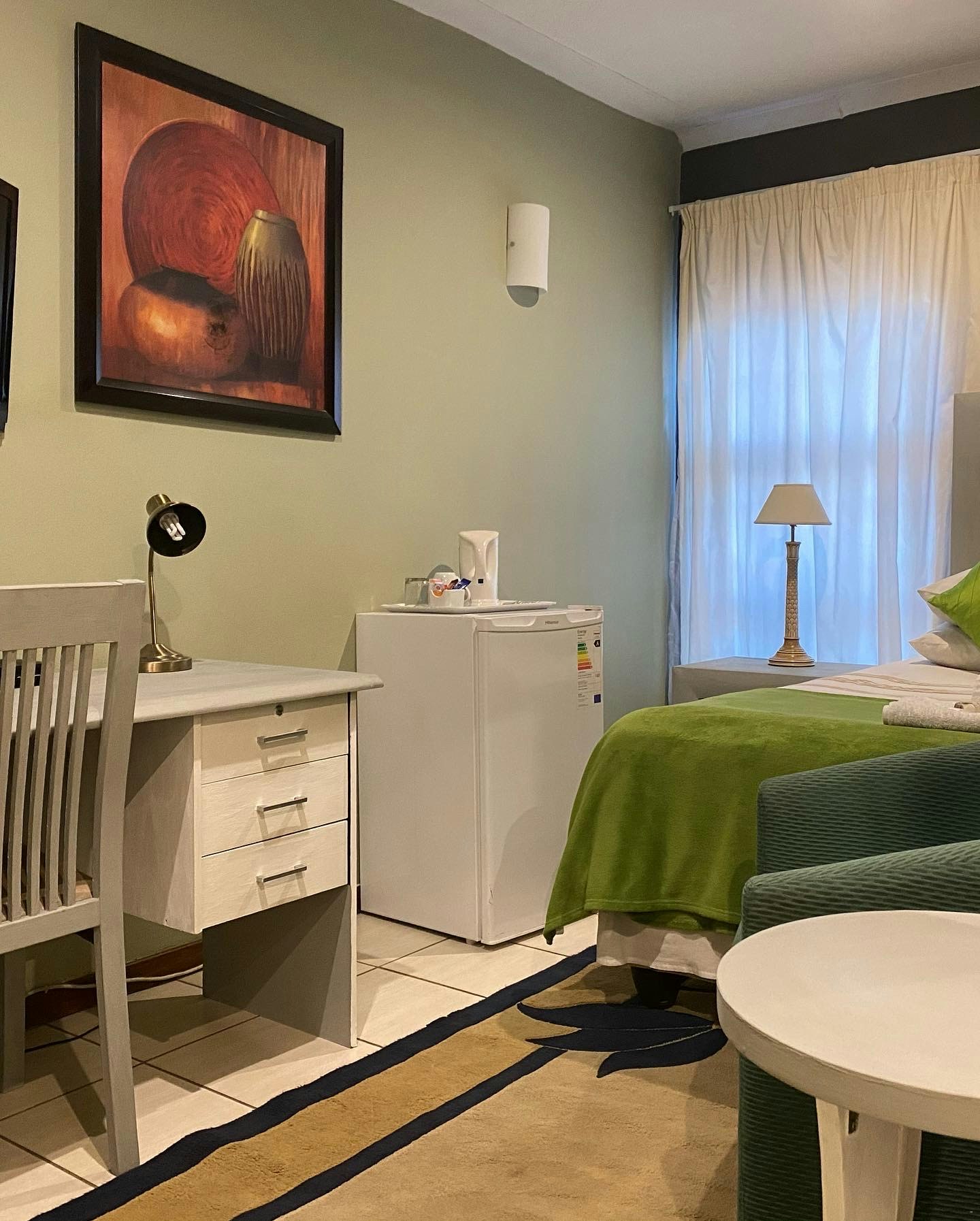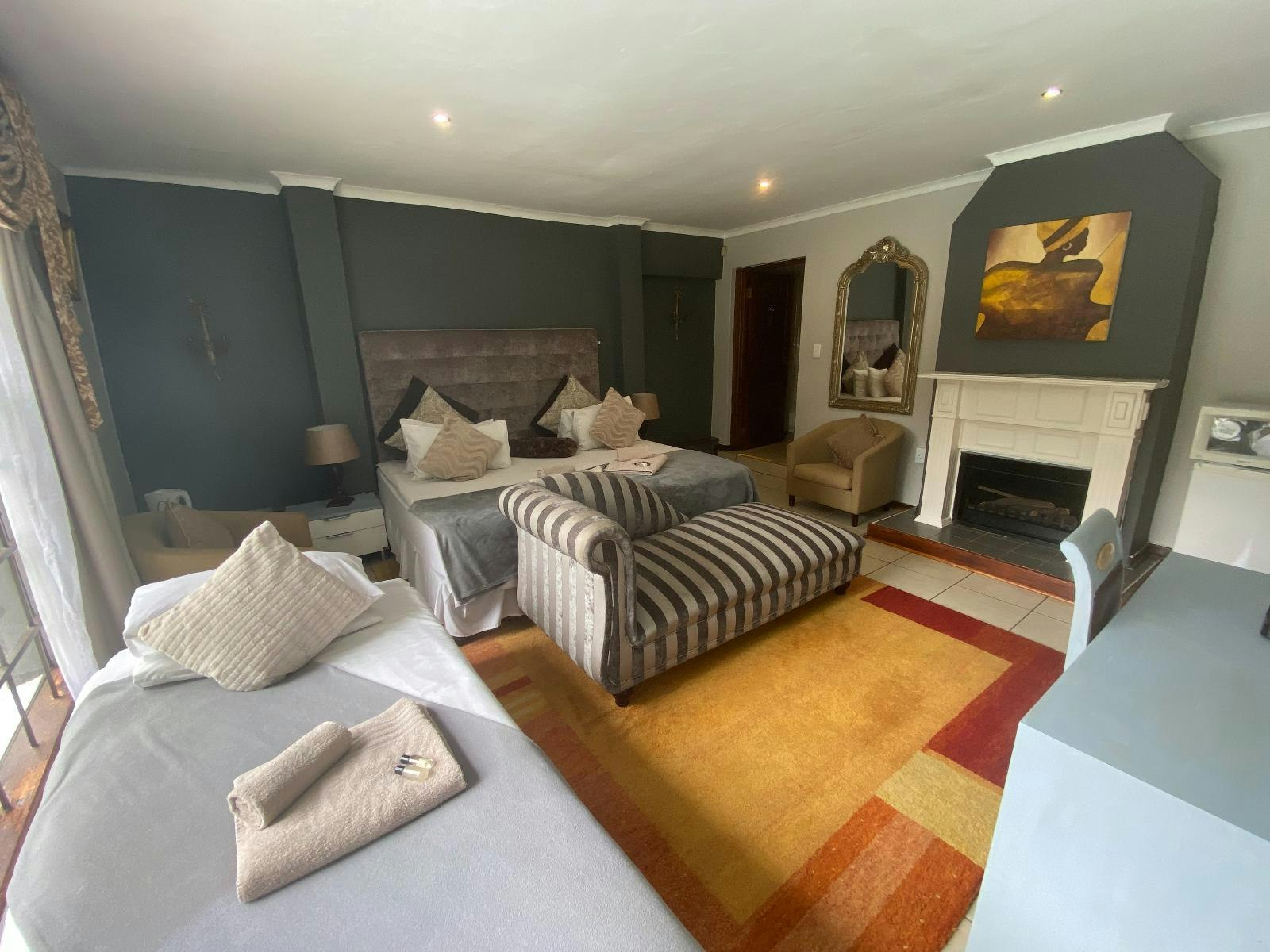 Guests have a choice of single, double and family rooms, each with its own en suite with complimentary toiletries. Each room is air-conditioned and features a TV with a selection of DStv channels, tea- and coffee-making facilities, a hairdryer, and Wi-Fi internet access. A turn-down service, and laundry service is available on request.