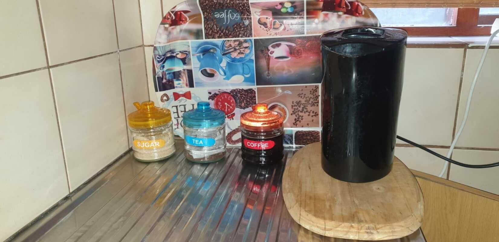 Die oopplan-leefarea beskik oor gemaklike sitplek, 'n TV met stromingsdienste en 'n goed toegeruste kombuis met 'n ontbythoekie. Die kombuis sluit 'n yskas-vrieskas, stoof, oond, mikrogolfoond en koffie- en teemaakgeriewe in. Veilige parkering op die perseel word voorsien.