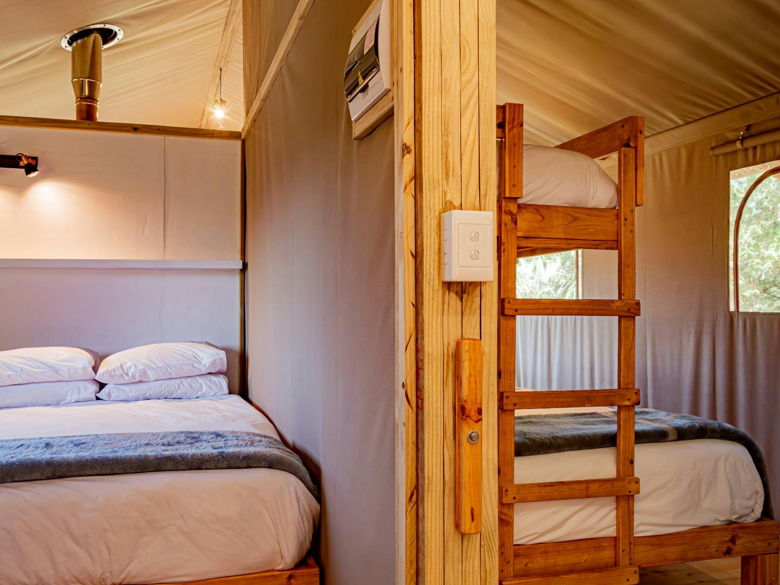 Hierdie kamp bied gaste 'n keuse van 5 lieflike tente, en elke tent het 'n kapasiteit van 5 gaste op 'n slag. Elke gestruktureerde tent bestaan uit 2 slaapkamers met lugversorging en 'n privaat badkamer met 'n stort, wasbak en toilet. Die hoofslaapkamer is gemeubileer met 'n koningingrootte bed, terwyl die tweede slaapkamer 'n driestapelbed bevat. Alle linne en badhanddoeke word voorsien.