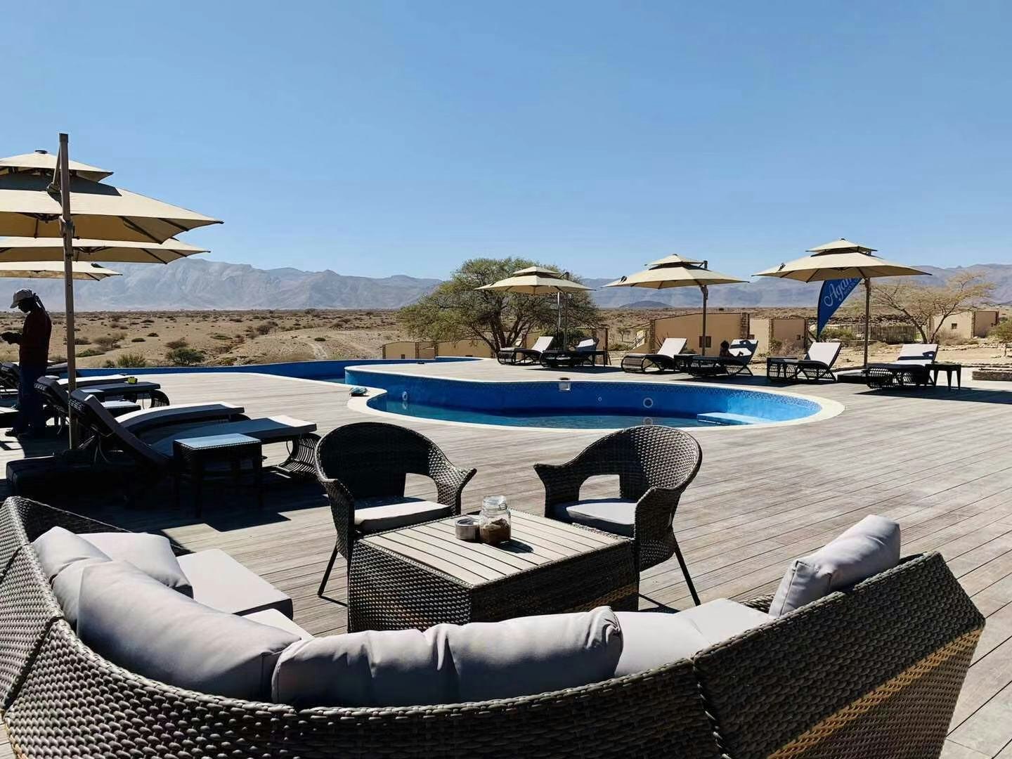 Die hoofkampgeboue beskik oor 'n knus kroeg, 'n restaurant en 'n groot uitkykdek vir sonsondergange. Daar is ook 'n swembad vir gaste om te geniet. Afgesien van die geleentheid om te ontspan in 'n idilliese omgewing, is Agama River Camp die ideale basis vanwaar gaste 2 van die mees dramatiese en pragtige gebiede in Namibië kan verken - die ikoniese rooi duine van Sossusvlei en die bergnatuurskoon, flora en fauna van Namib-Naukluft Nasionale Park .