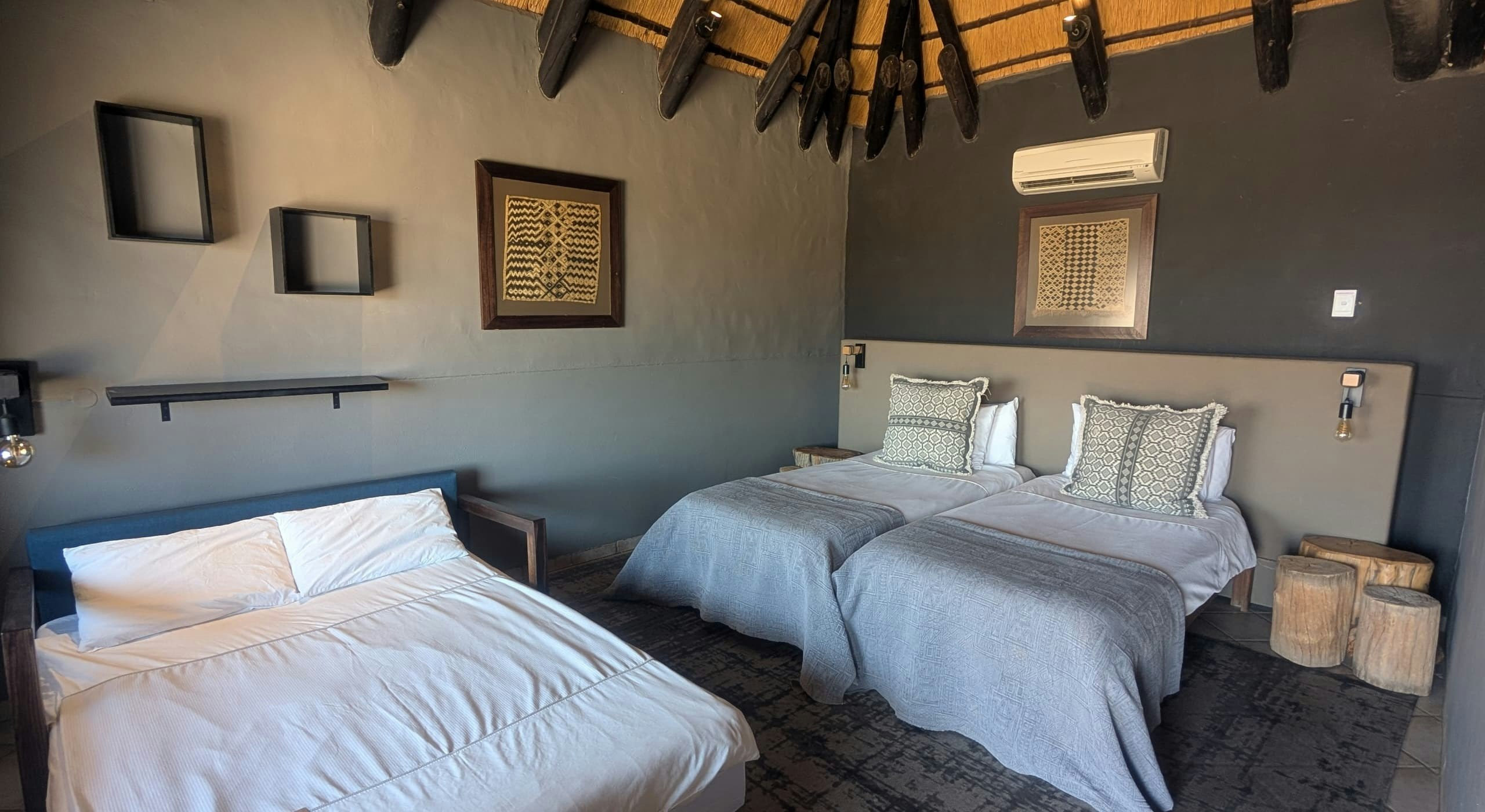 Verblyf word in 10 chalets wat elk 'n Afrika-tema en 2 slaapkamers het, gebied. Elke kamer is smaakvol gemeubileer en het lugversorging en 'n kluis. Elke kamer het ook 'n privaat patio en 'n en suite-badkamer met 'n stort en 'n toilet.