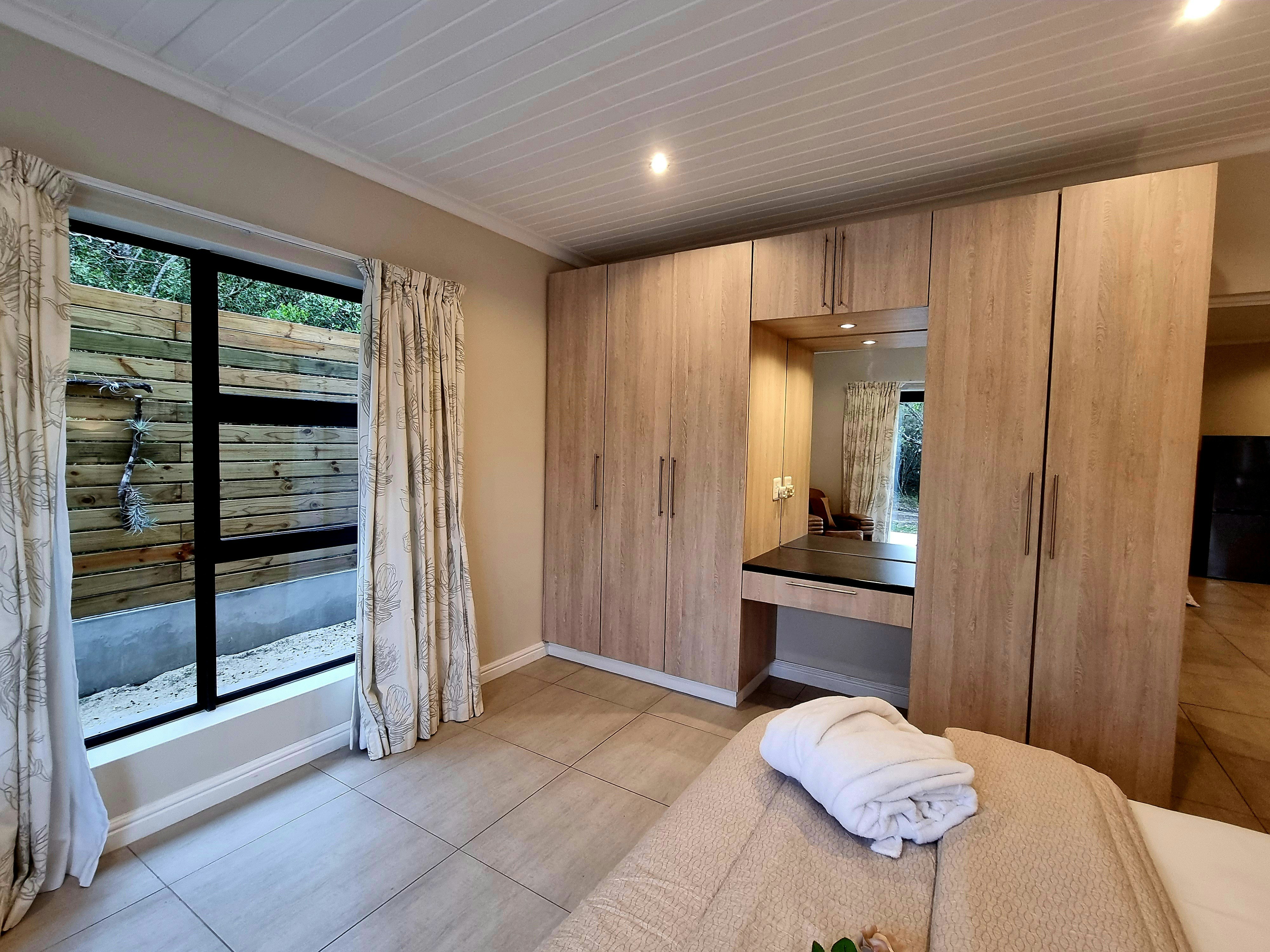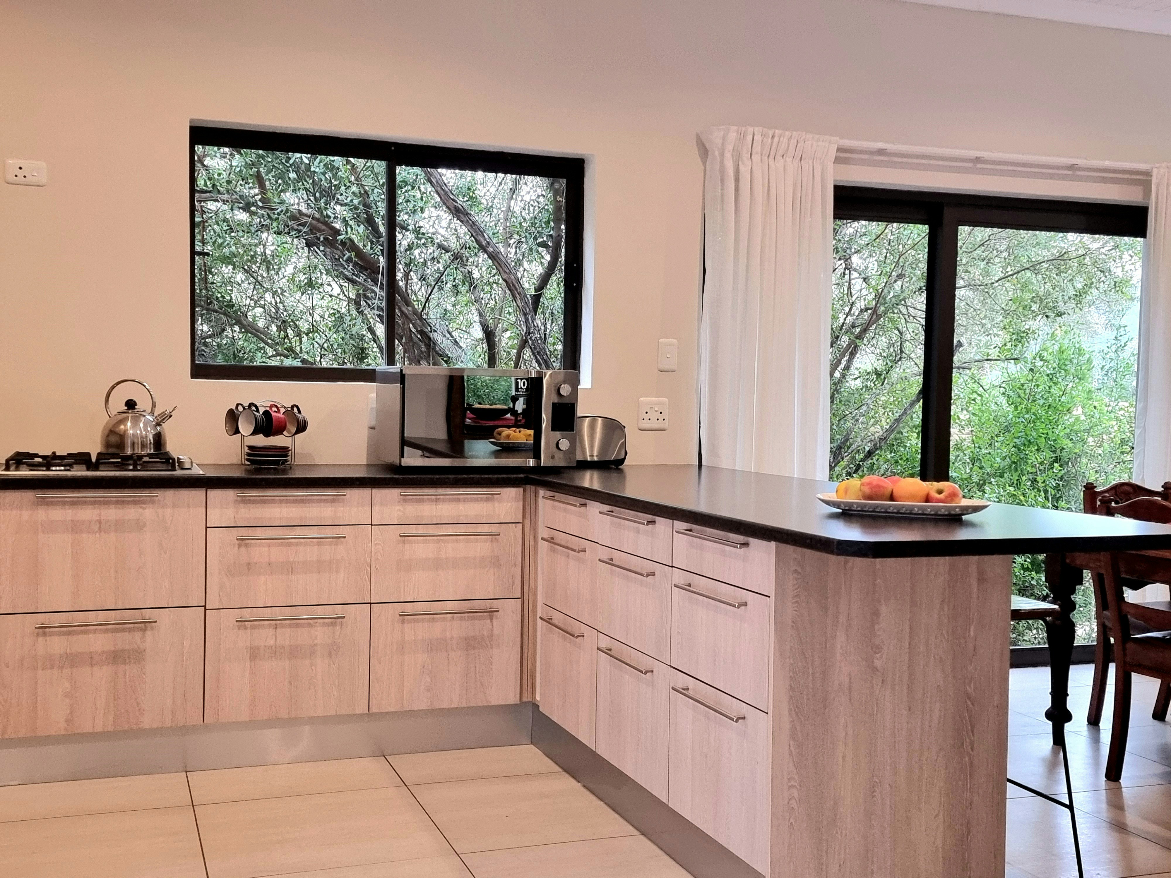 Daar is 3 Keurkloof-eenhede, elk met 'n aparte ingang. Elke eenheid het 'n oopplan-kombuis en -leefarea. Die kombuis is met 'n yskas-vrieskas, stoof, oond en mikrogolf toegerus. Die leefarea het gemaklike sitplek en 'n platskerm-TV met sekere DStv-kanale. Skuifdeure lei na 'n dek met stoepmeubels, ketelbraaigeriewe en 'n skouspelagtige uitsig op die berg en oor die bos. Gratis WiFi is beskikbaar. Veilige parkeerplek word voorsien.