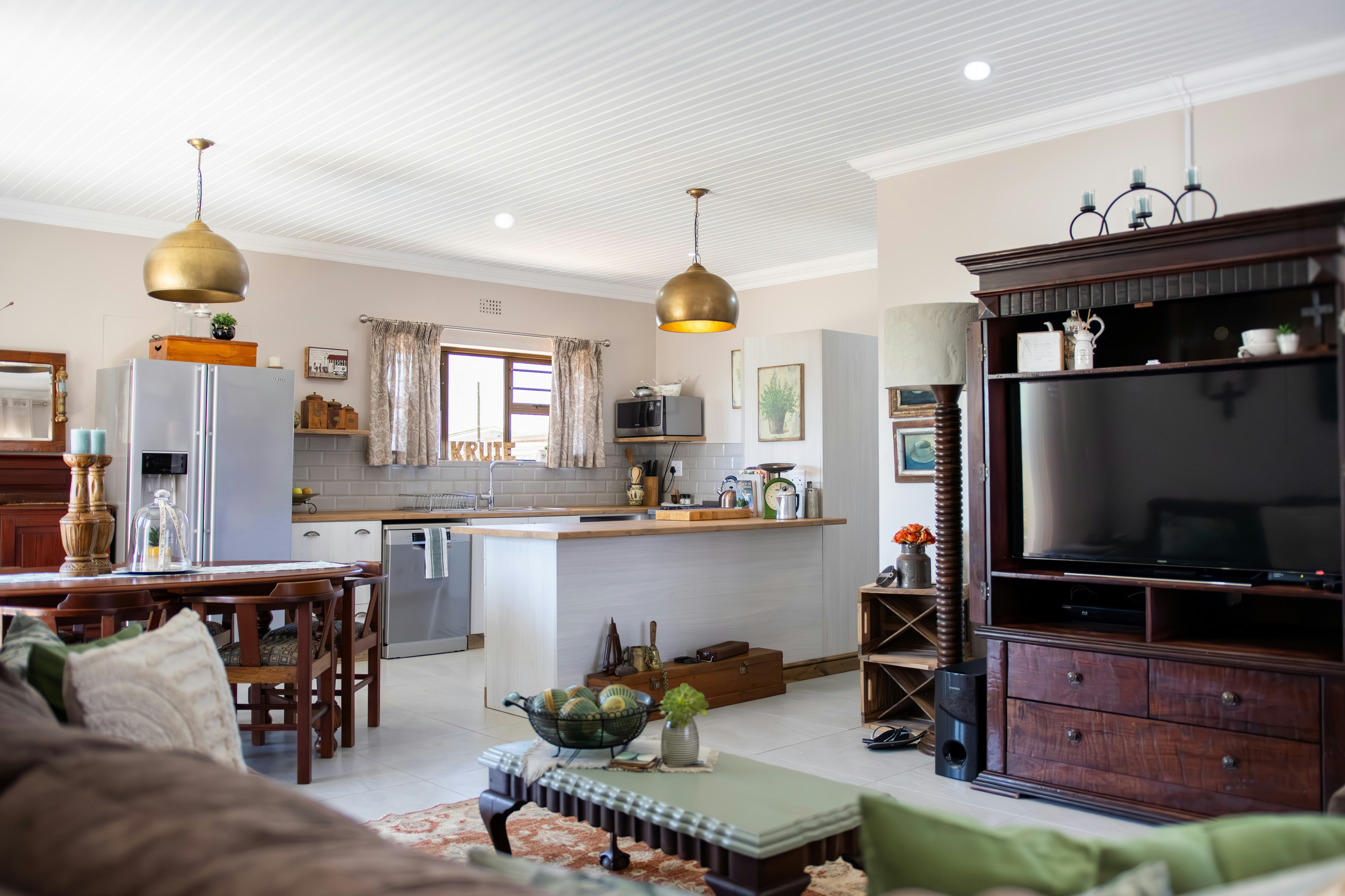 Die helder en lugtige leefarea sluit 'n volledig toegeruste kombuis met 'n yskas-vrieskas, gasstoof, elektriese oond, mikrogolfoond, eetgerei, breekware en tee- en koffiemaakgeriewe in. 'n Skottelgoedwasser is ook beskikbaar vir ekstra gerief. Die oopplan-sitkamer en -eetarea langs die kombuis beskik oor 'n etenstafel met sitplek vir 6, oorgenoeg gemaklike sitplek, 'n slim-TV met stroomdienste en komplimentêre WiFi.