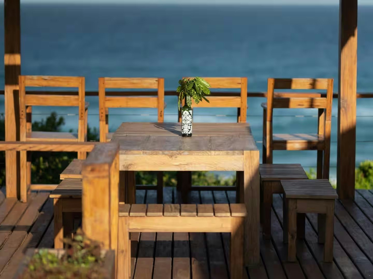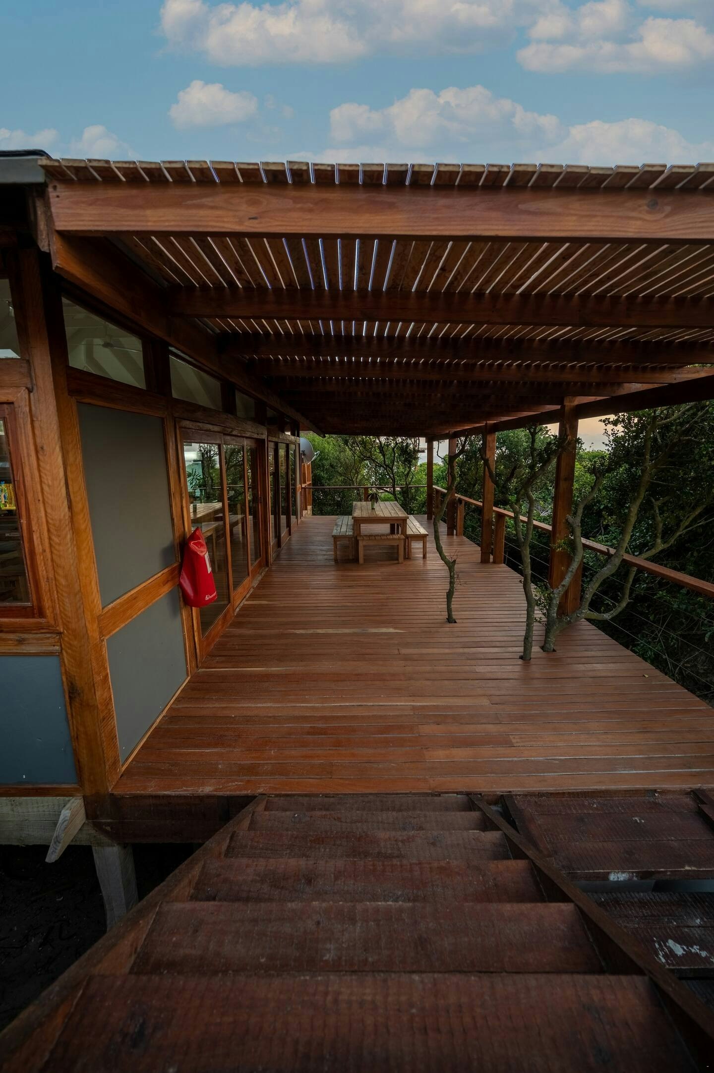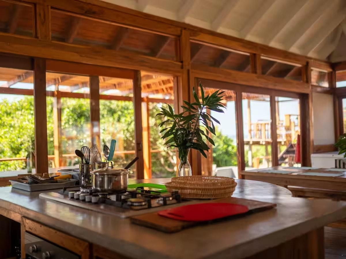 Die huis bestaan uit vier geboue, waarvan een die kombuis, TV-sitkamer en eetkamer huisves, terwyl die oorblywende drie geboue die vier slaapkamers bevat. Slaapkamer 1 het 'n koningingrootte bed, en Slaapkamer 2 het vier enkelbeddens; hierdie twee slaapkamers deel 'n tussendeur wat gesluit of oopgelaat kan word, wat dit ideaal maak vir gesinne met kinders. Slaapkamers 3 en 4 het elk 'n koningingrootte bed. Elke slaapkamer het 'n privaat ingang vanaf die buitedek, en al die slaapkamers is lugverkoel, gemeubileer met plafonwaaiers, bedkassies, lampe en en suite-badkamers met 'n stort, wasbak en toilet. Die huis bied gemaklik slaapplek vir 10 gaste, en alle linne en badhanddoeke word voorsien.