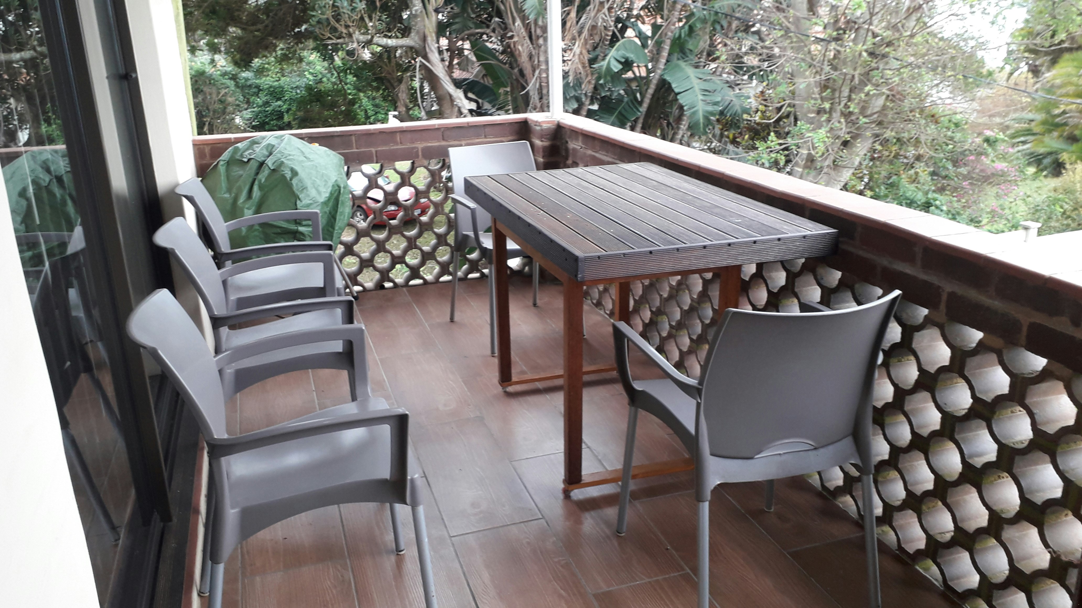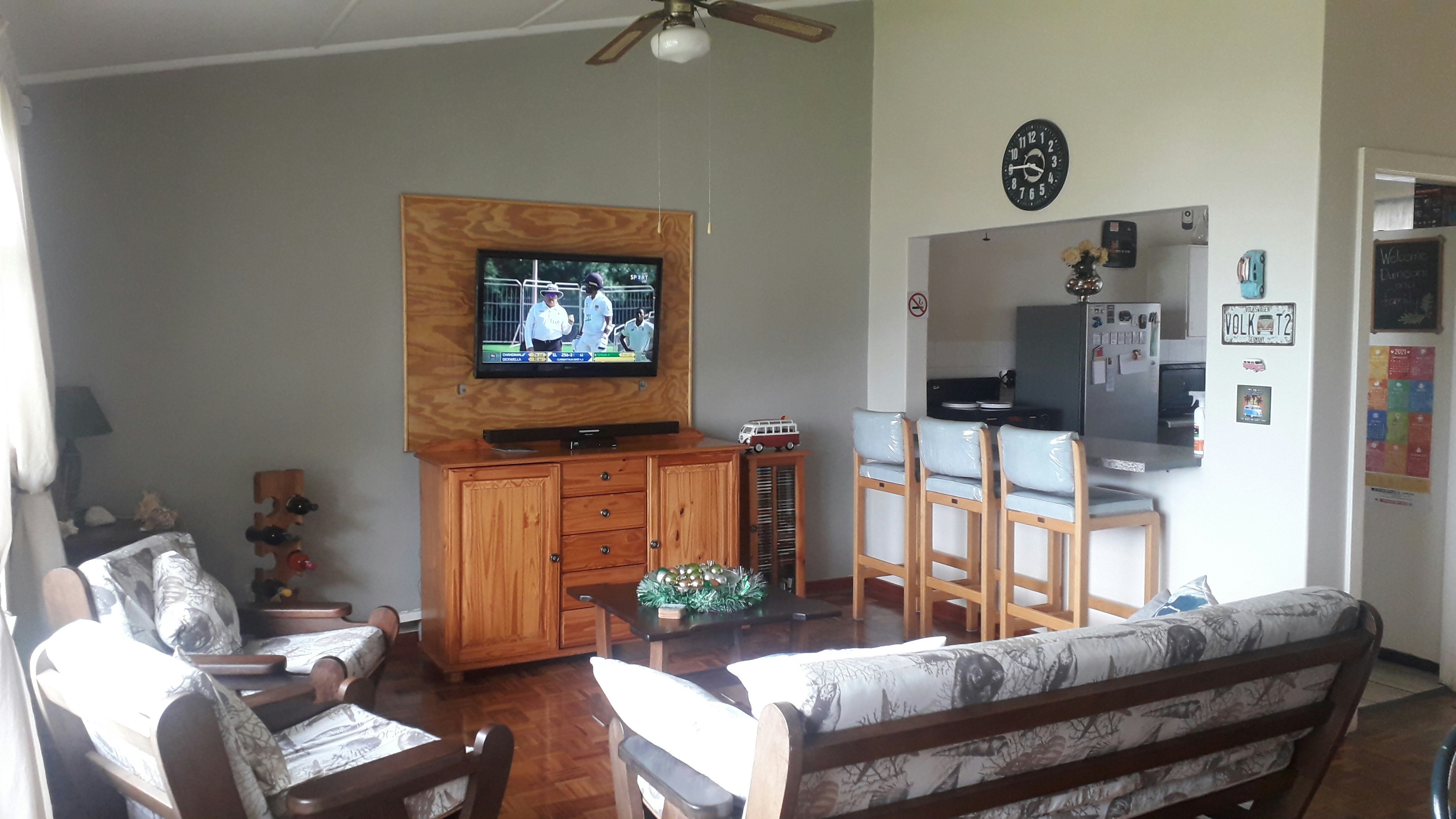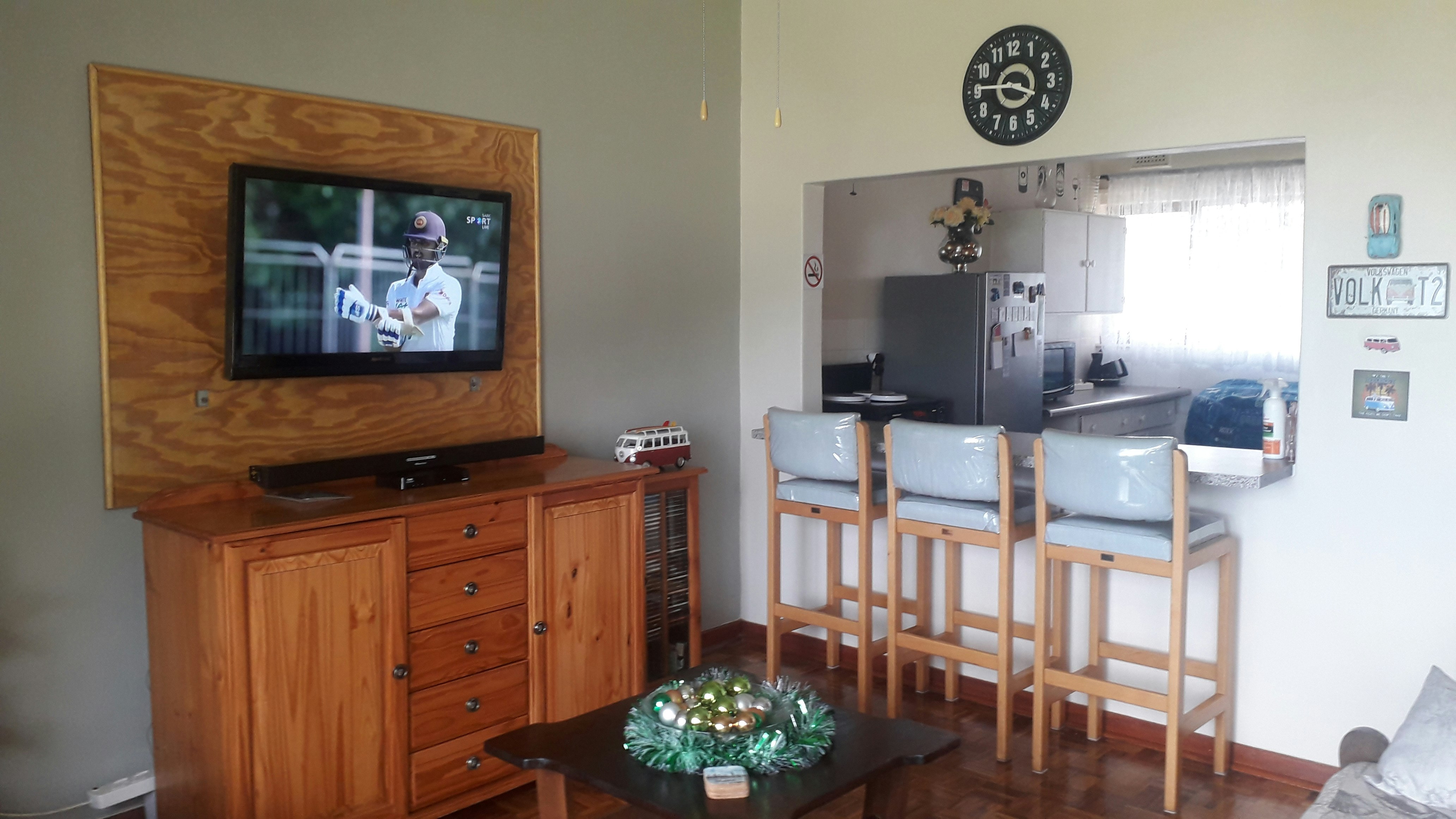 Die leefarea is oopplan en die kombuis is toegerus met 'n yskas-vrieskas, mikrogolf, lugbraaier, 'n oondjie met 'n tweeplaatstoof, breekware en eetgerei asook 'n ontbythoekie. Die sitkamer het gemaklike sitplek en 'n TV met Netflix. Die eetarea het 'n eetkamertafel met sitplek vir 6 en lei na 'n patio met buitesitplek en 'n braaistaanplek.