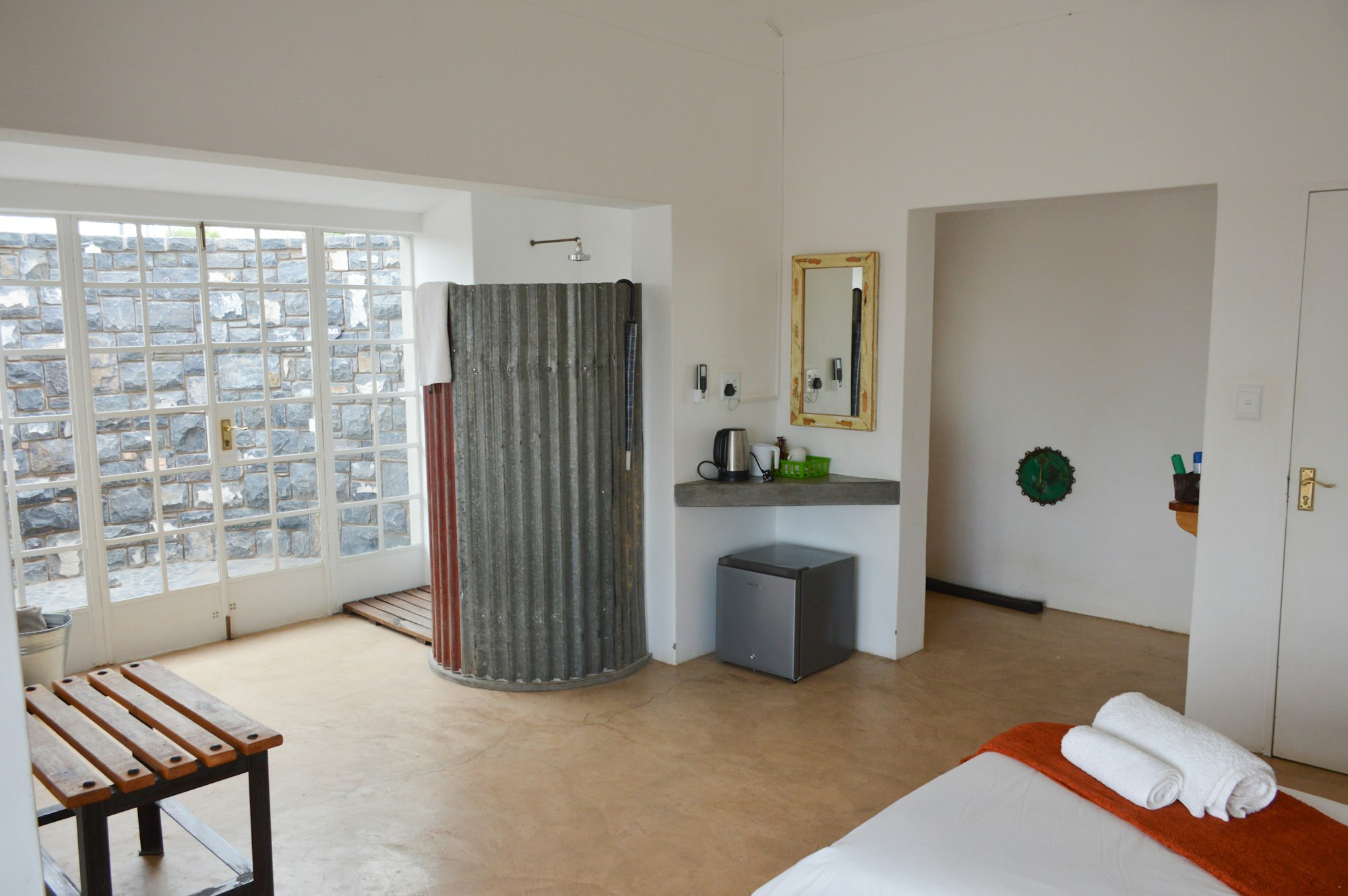 Verblyfopsies sluit in bed-en-ontbytkamers, selfsorg-eenhede en kampeerplekke. Elke kamer is smaakvol gemeubileer en beskik oor 'n en suite-badkamer met binne- en buitestorte, sowel as 'n privaat terras met uitsig oor die woestynrivierbedding. Gaste kan gemsbokke en springbokke dophou wat die verligte watergat in die skemer besoek.