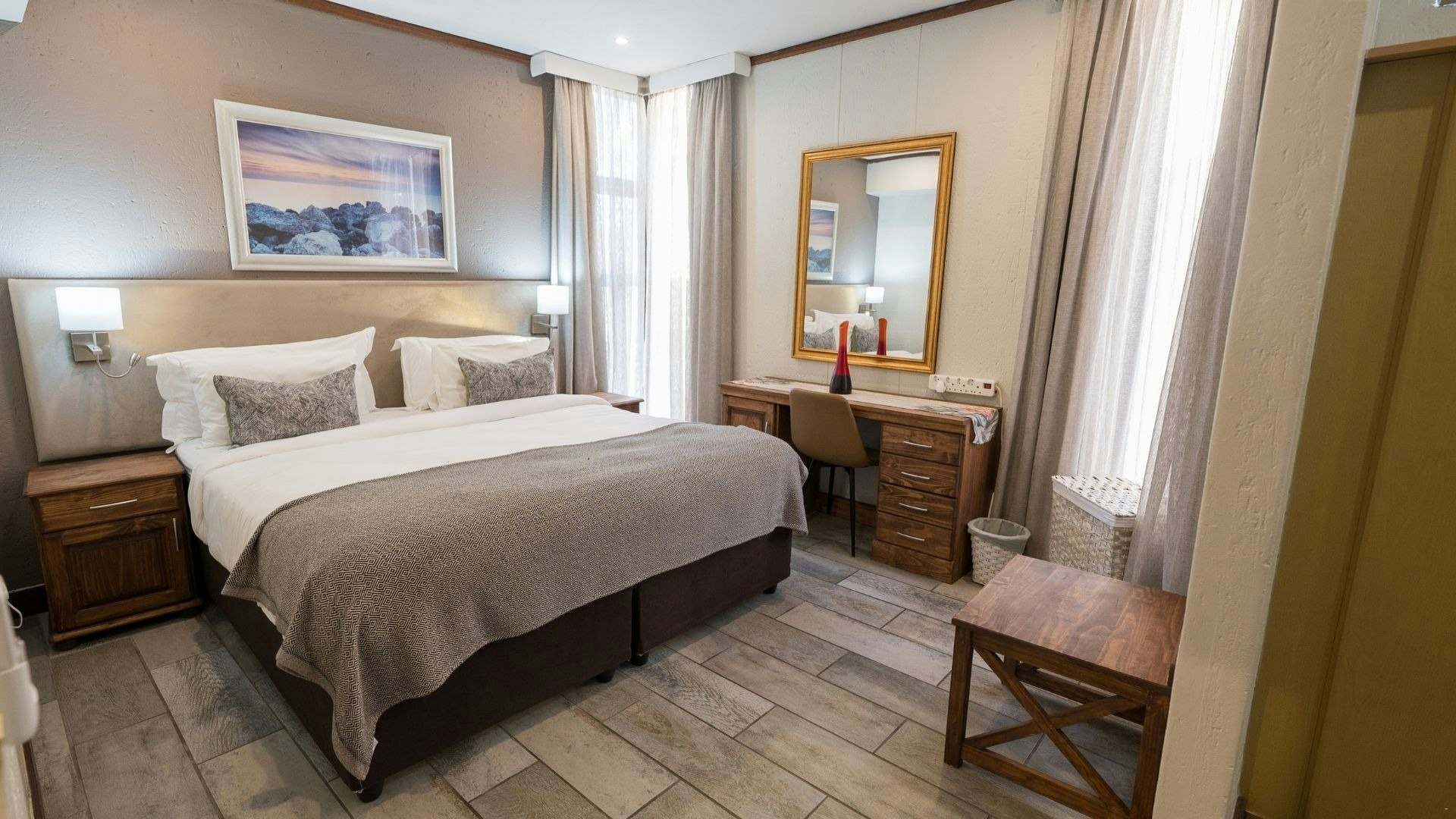 Each room and self-catering apartment is furnished with comfortable beds and offers a bathroom fitted with either a shower or a bath. In-room facilities include air-conditioning, a telephone, a hairdryer, a desk, a TV, a safe, and tea- and coffee-making facilities.