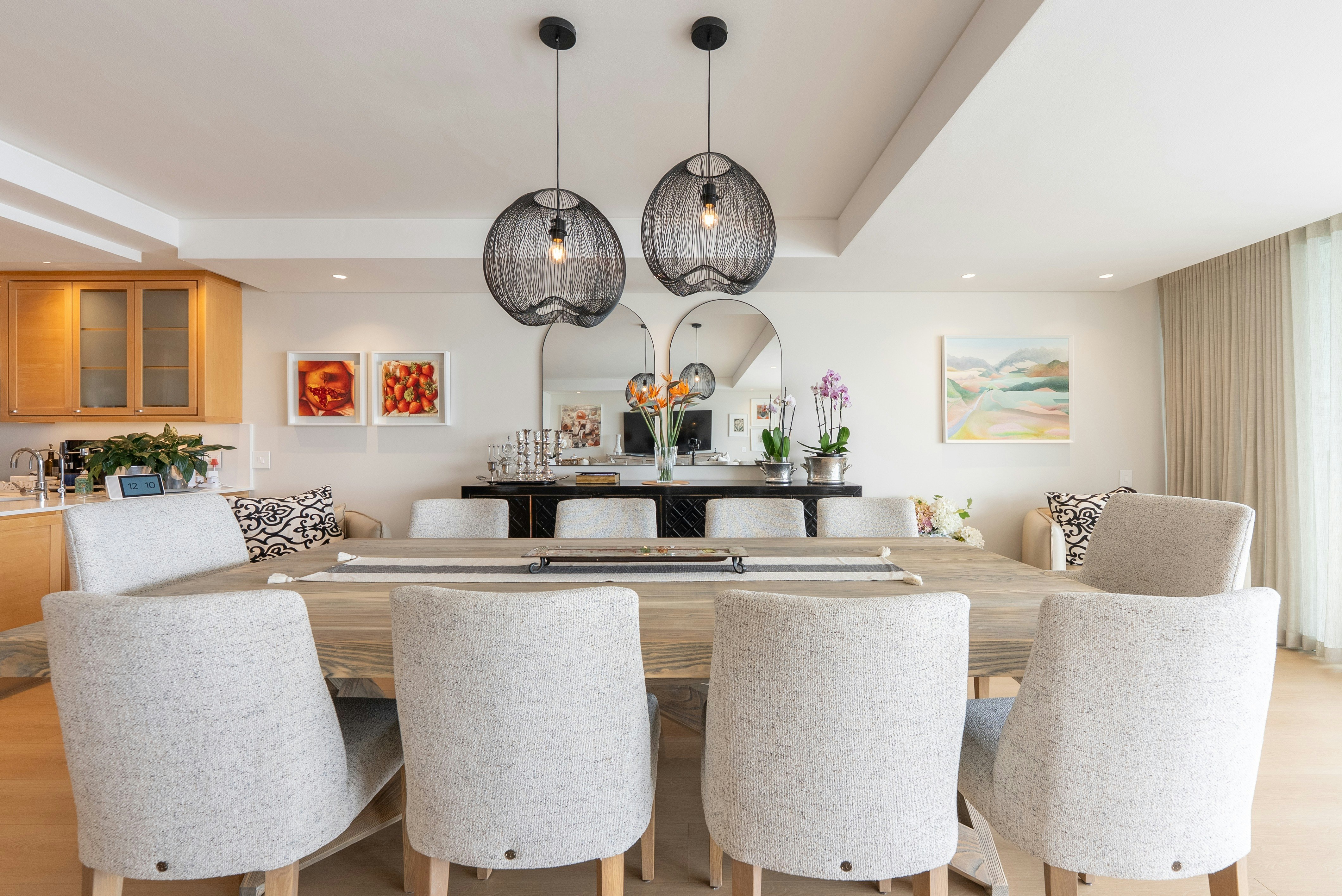 Die leefarea sluit 'n moderne kombuis in wat toegerus is met 'n yskas-vrieskas, gasstoof, oond, mikrogolfoond, lugbraaier, eetgerei en breekware, tee- en koffiemaakgeriewe en 'n ontbyttoonbank met stoele. Die aparte opwaskamer bied 'n skottelgoedwasser, wasmasjien en tuimeldroër vir ekstra gerief. Aangrensend aan die kombuis beskik die sitkamer oor 'n eetarea met 'n tafel vir 10, ruim gemaklike sitplek en 'n slim-TV met stromingsdienste, sowel as 'n volledige verskeidenheid DStv-kanale.
