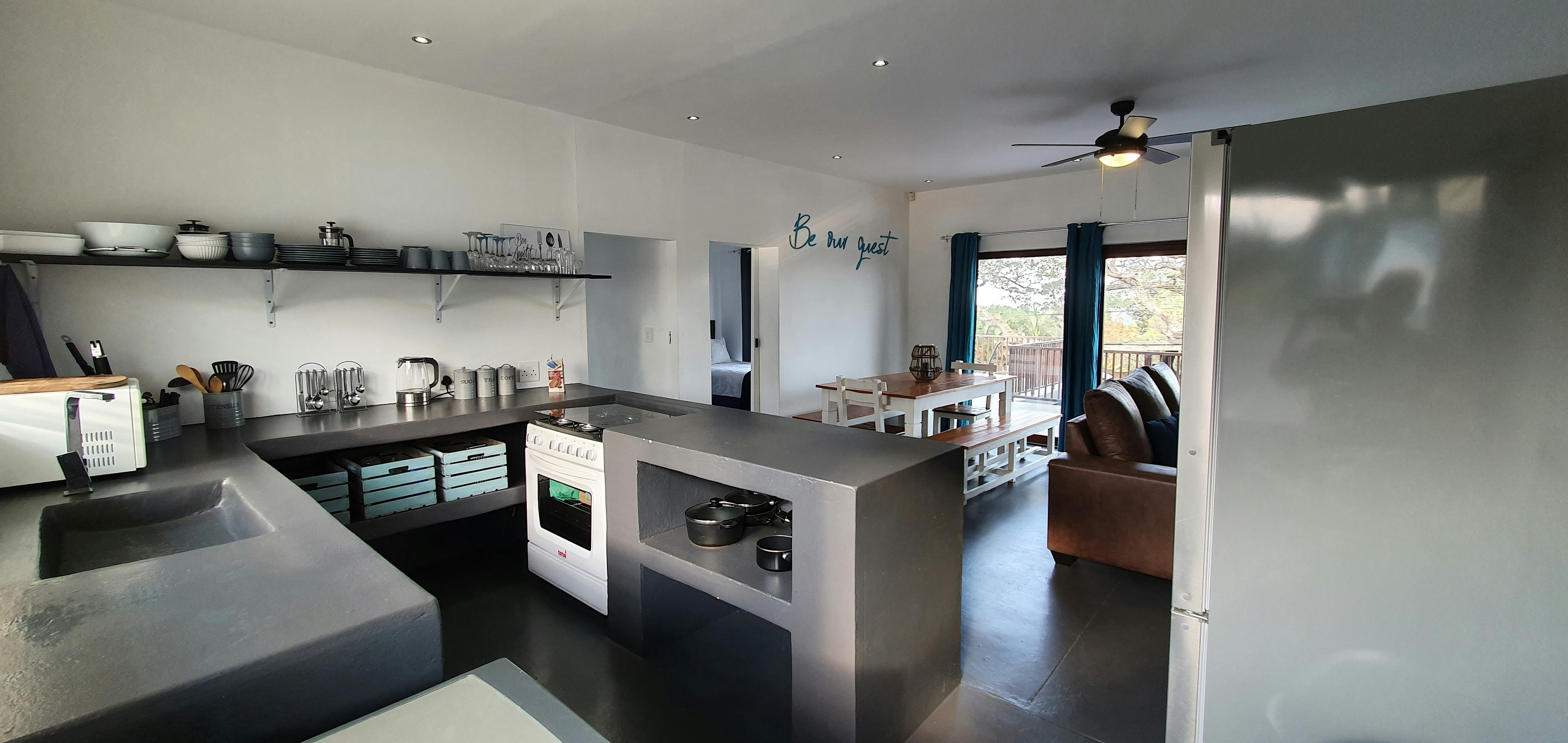 Elke eenheid het 'n kombuis is ten volle toegerus, insluitend 'n skottelgoedwasser. Ander geriewe in elke eenheid sluit 'n TV, DStv en WiFi in. Handdoeke, beperkte toiletpapier, koffie, suiker en melkpoeier word vir die eerste aand voorsien.