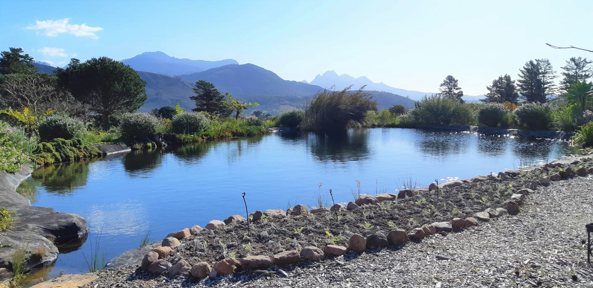 The cottages are set in a large 3-hectare indigenous fynbos garden with unique statues and garden art, and a labyrinth. There is also a stunning swimming dam fed with mountain water. Being west facing, it is a wonderful sundowner spot! Beautiful evenings can be spent in the lapa under the trees where you can braai while enjoying the peace and serenity. Your host, Andrea, will be happy to take you on a guided walk around her beautiful property, by arrangement.