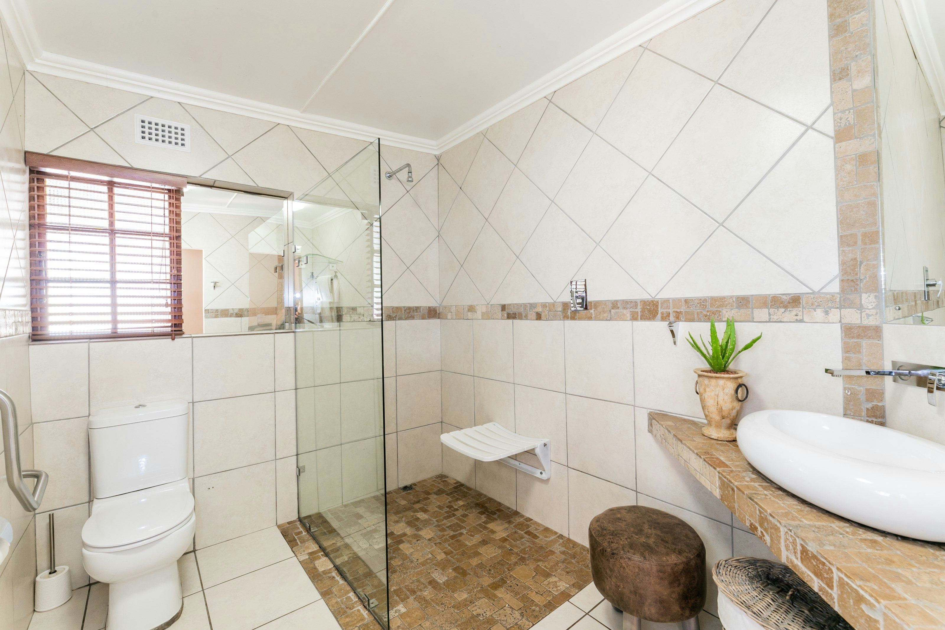 Verblyf word in 8 en suite-slaapkamers gebied. Die Luukse Kamers het elkeen 'n koningingrootte-bed en het 'n en suite-badkamer met 'n stort, wasbak en toilet. Ander geriewe sluit lugversorging, 'n mikrogolfoond, 'n yskassie, tee- en koffiemaakgeriewe, 'n TV met sekere DStv-kanale en WiFi in.