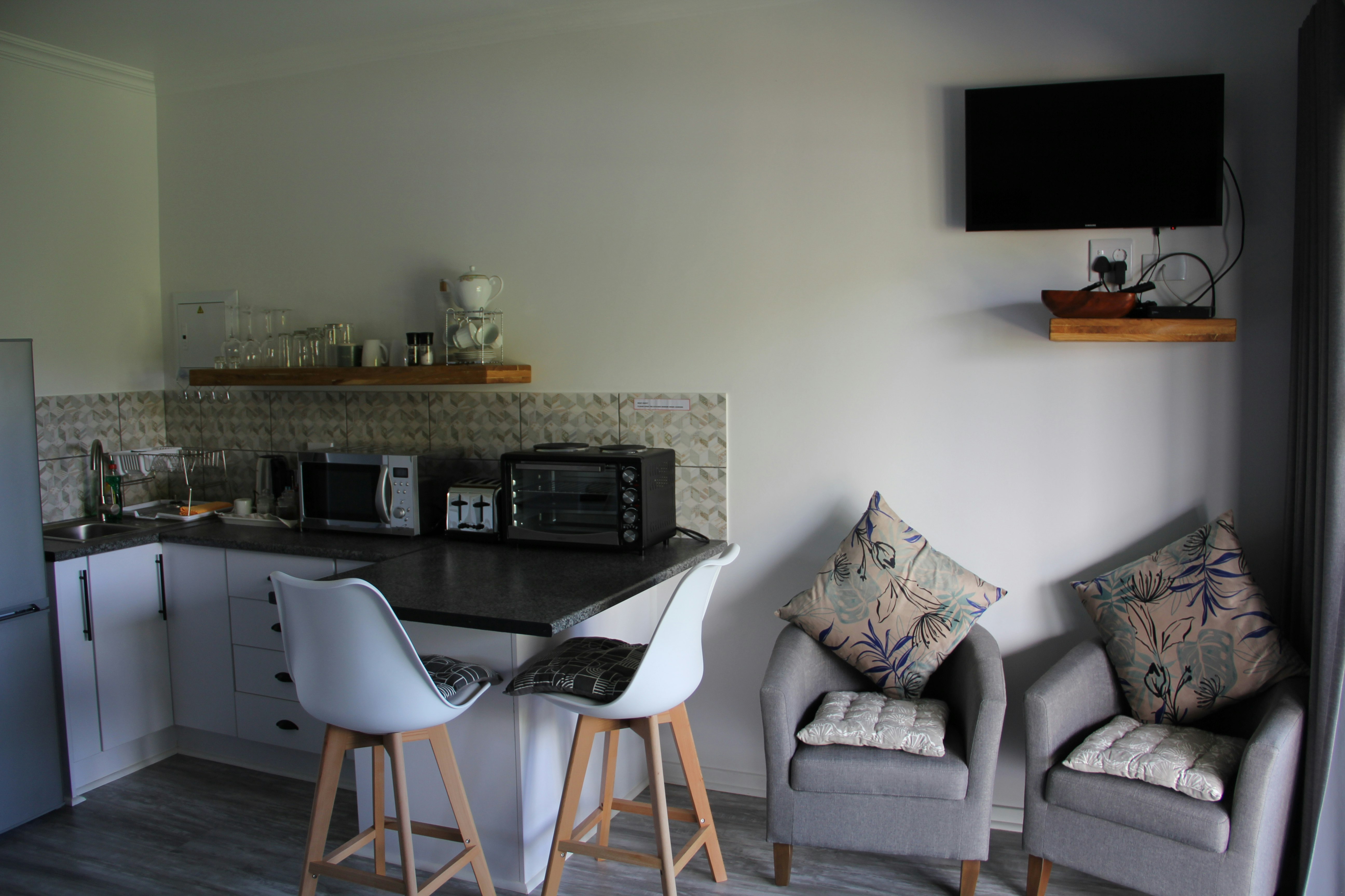 Each unit has its bathroom with a shower. All linen, towels, and soaps are provided. The 2 self-catering units feature a kitchen equipped with a 2-plate stove with a mini-oven, microwave, toaster, fridge, cutlery and crockery, and tea- and coffee-making facilities. For guests' entertainment, each self-catering unit has a smart TV with Netflix.
