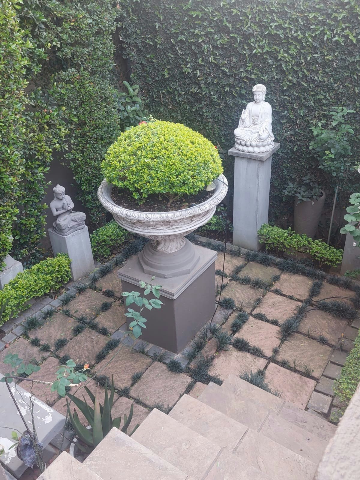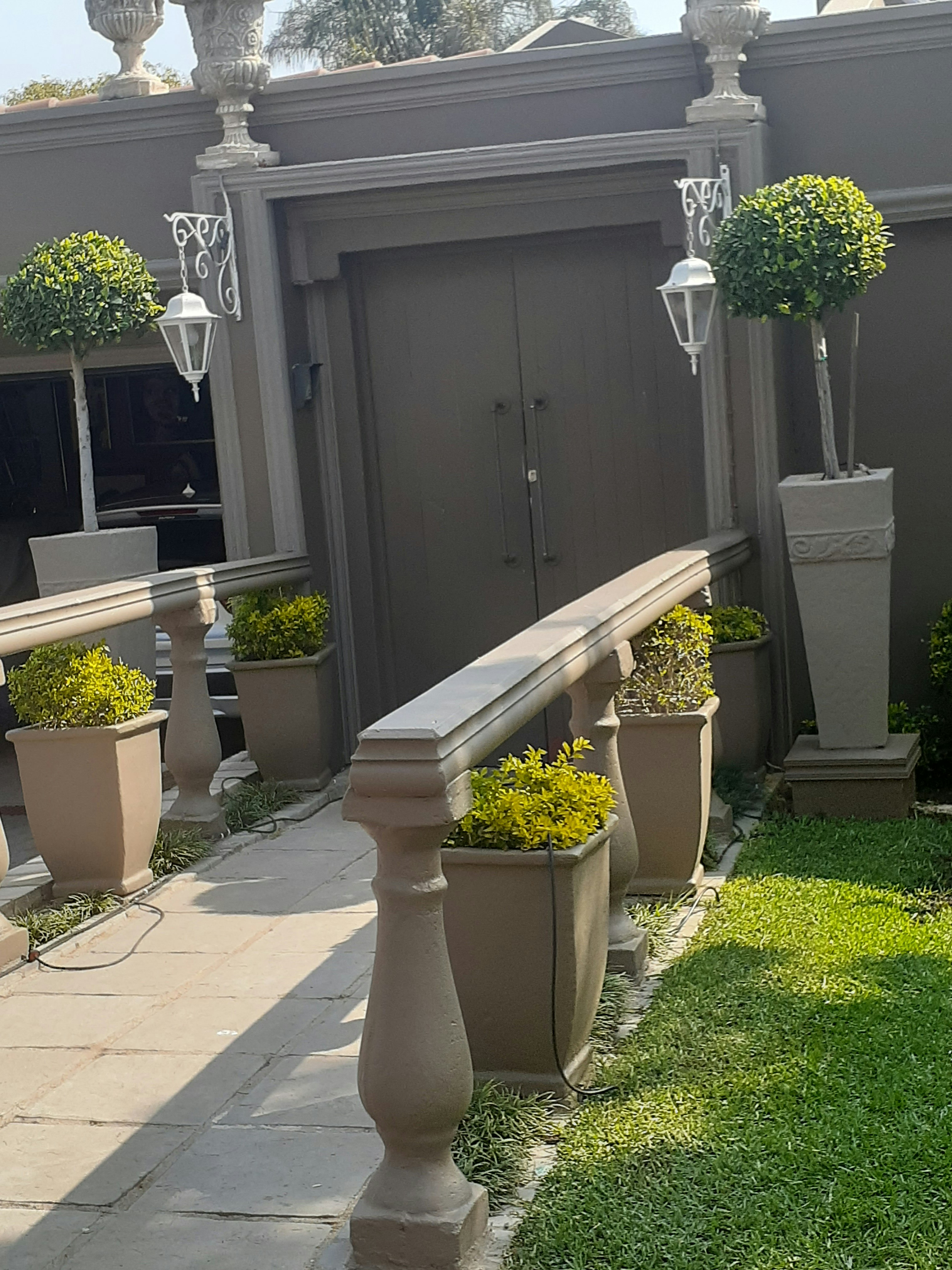 Die eiendom het 'n pragtige tuin en waterfonteine, sowel as uitstekende sekuriteit, met 4 meter hoë mure en onderdak-toesluitmotorhuise.