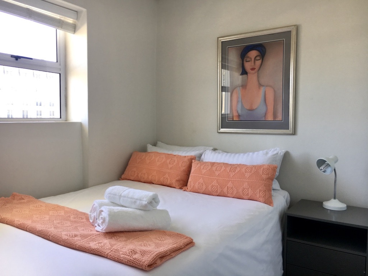 Dié woonstel is op die 6de verdieping, is geskik vir 4 gaste en het 2 slaapkamers. Elke slaapkamer het 'n dubbelbed en daar is 'n badkamer met 'n stort, toilet en wasbak. Die hoofslaapkamer het 'n deur wat na die balkon lei.