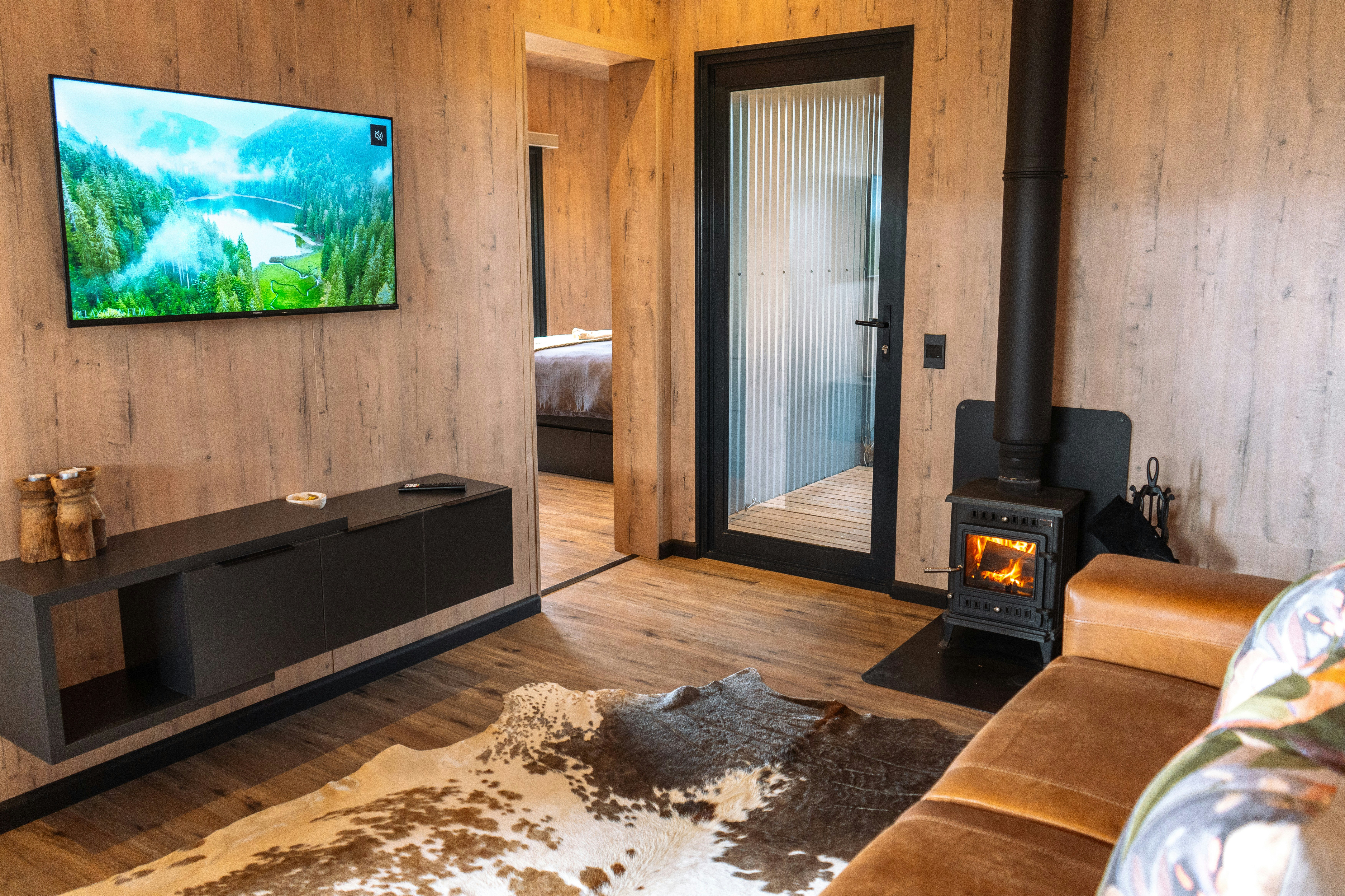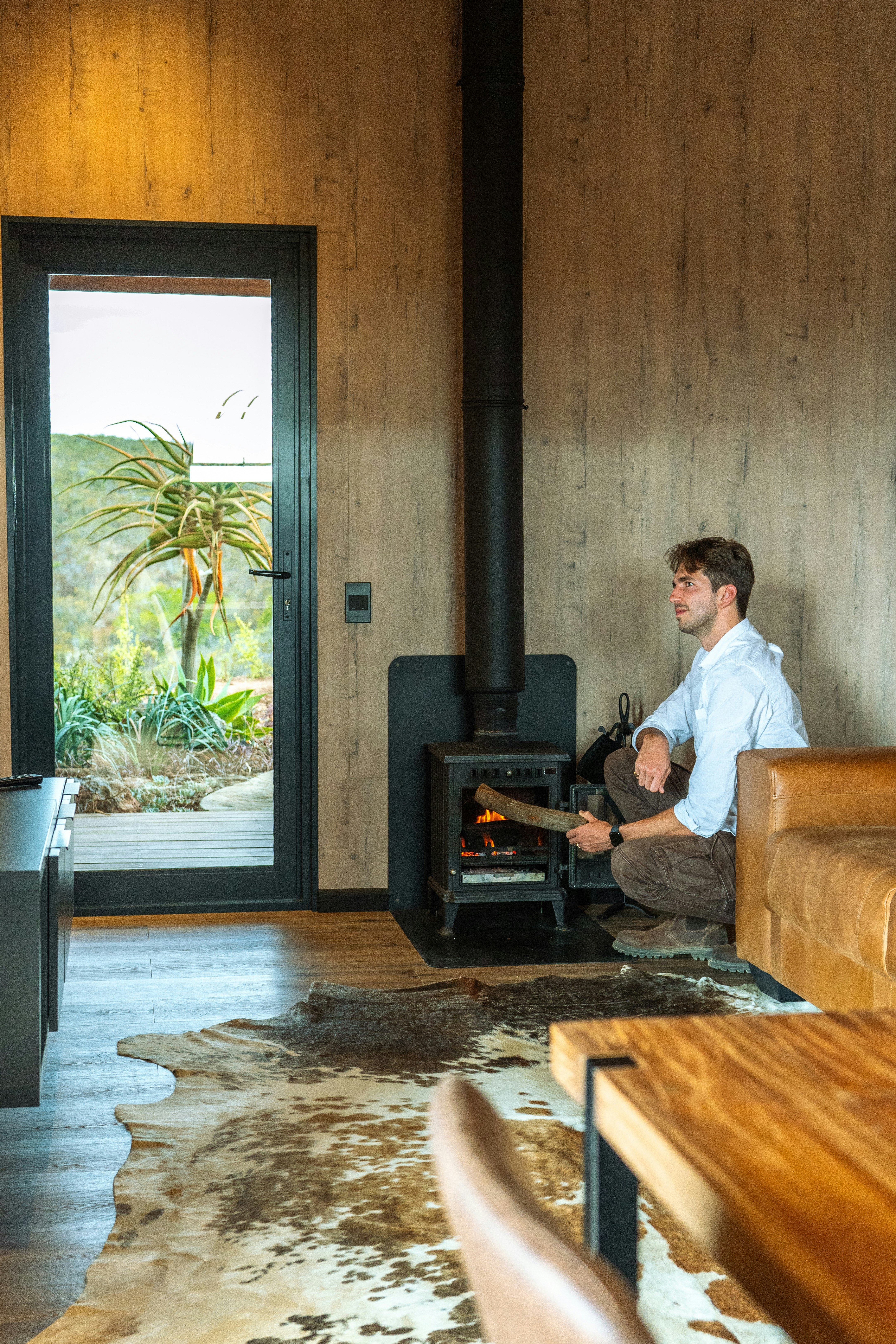 Die leefarea lei na 'n onderdakstoep met 'n pragtige uitsig op die berge en oor die vallei. Gaste kan op die hangmat in die son uitspan, in die houtvuurwarmbad agteroorsit en op die stoep braai terwyl hulle die asemrowende uitsig bewonder.