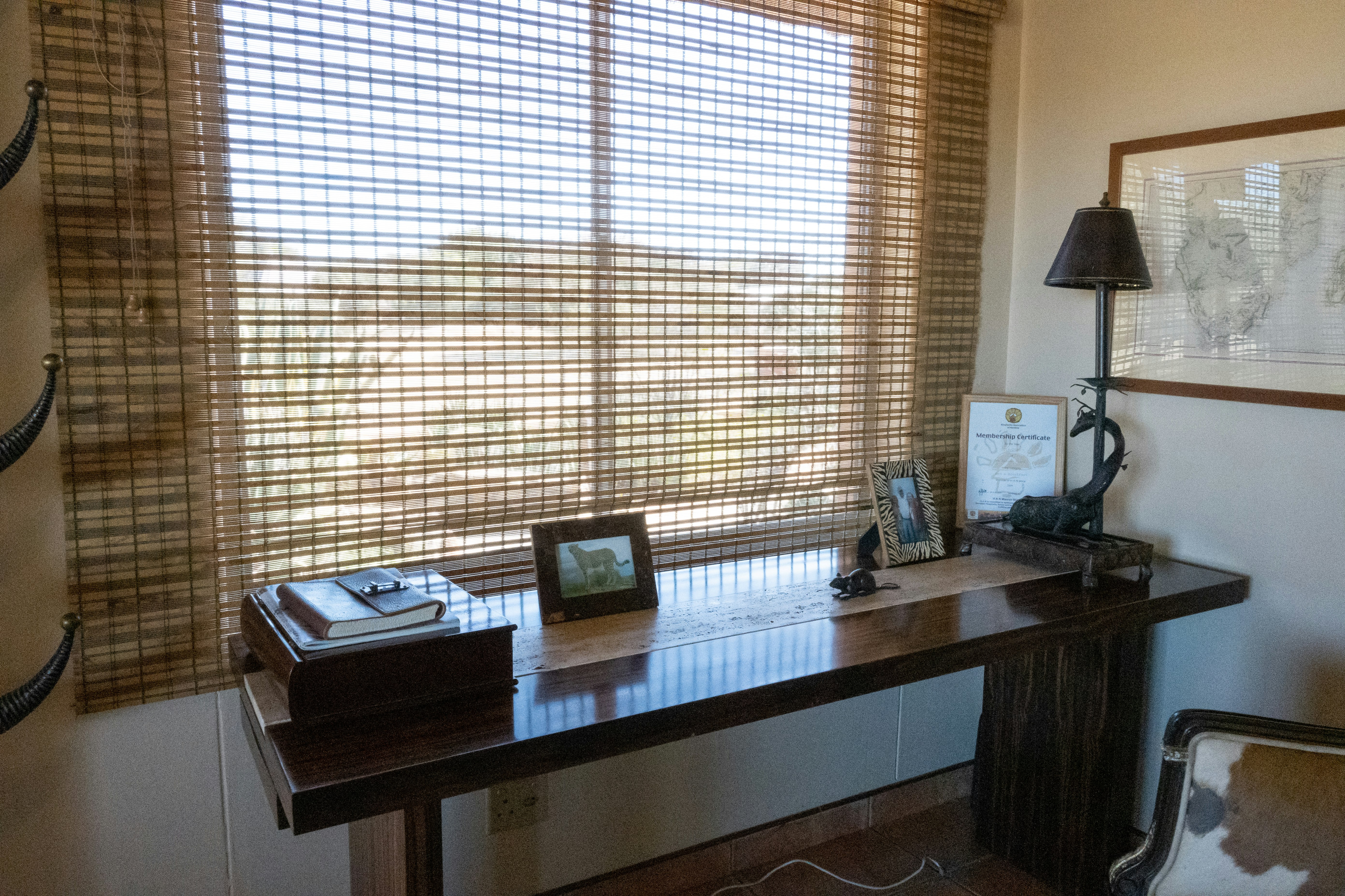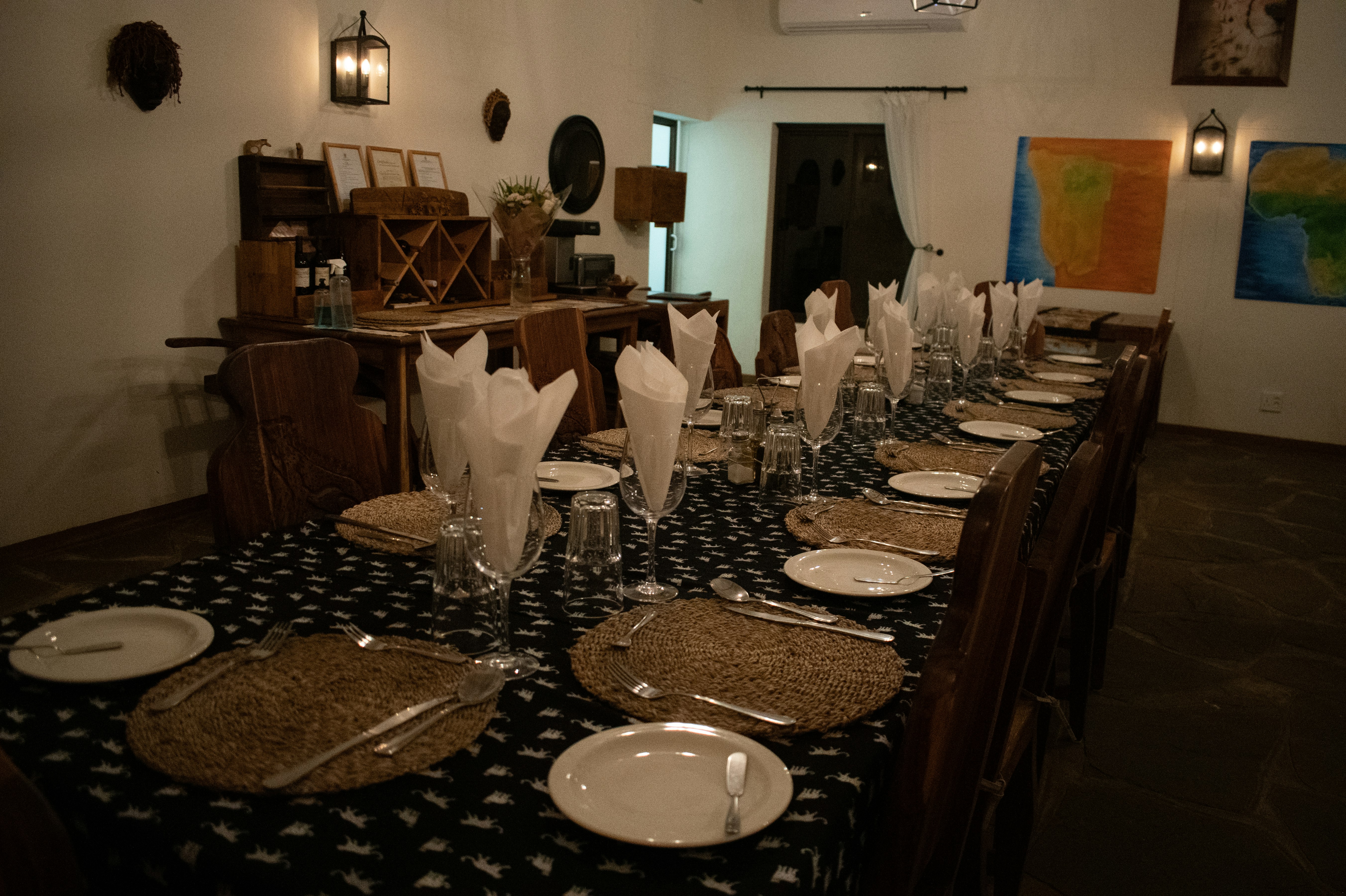 The house has a comfortable lounge, which has tea-and-coffee-making facilities, or on the verandah that overlooks the cheetahs nearby. Lunch is served on the verandah or at the dining room table. Secure parking is available. Internet connection is available for personal laptops, and a telephone is available at the office for emergencies.