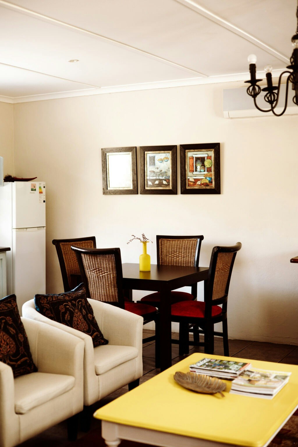 Verblyf bestaan uit 4 smaakvol versierde luukse kothuise insluitend Ruby, Merlot, Ribbok en Steenbokkie. Alle eenhede is volledig toegerus en geskik vir selfsorgdoeleindes. Geriewe in die kamer in al die eenhede sluit lugversorging, 'n TV met DStv, 'n sitarea en 'n braai-area in.