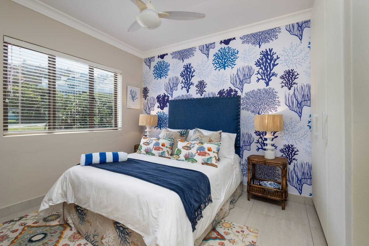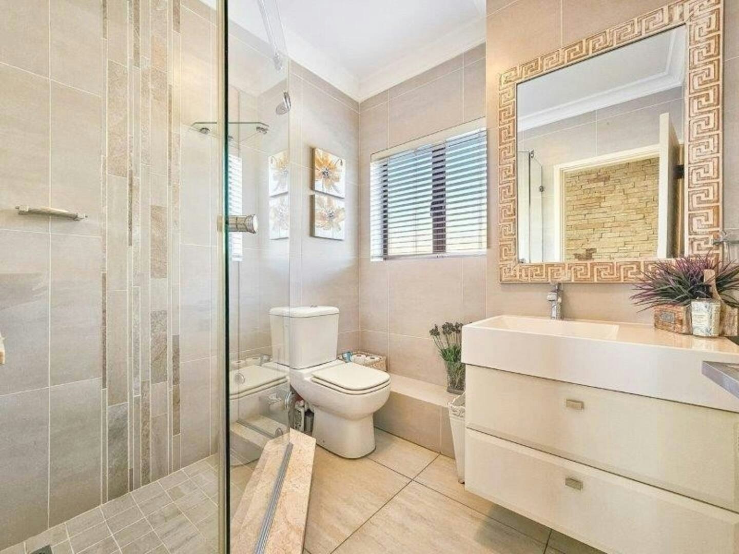 Dié woonstel bied slaapplek aan 6 gaste en beskik oor 3 slaapkamers en 2 badkamers. Die eerste slaapkamer is ingerig met 'n koningingrootte-bed en beskik oor 'n en suite-badkamer met 'n stort. Die tweede en derde slaapkamers het elkeen 'n koningingrootte-bed en deel 'n badkamer met 'n stort. Linne en badhanddoeke word voorsien.