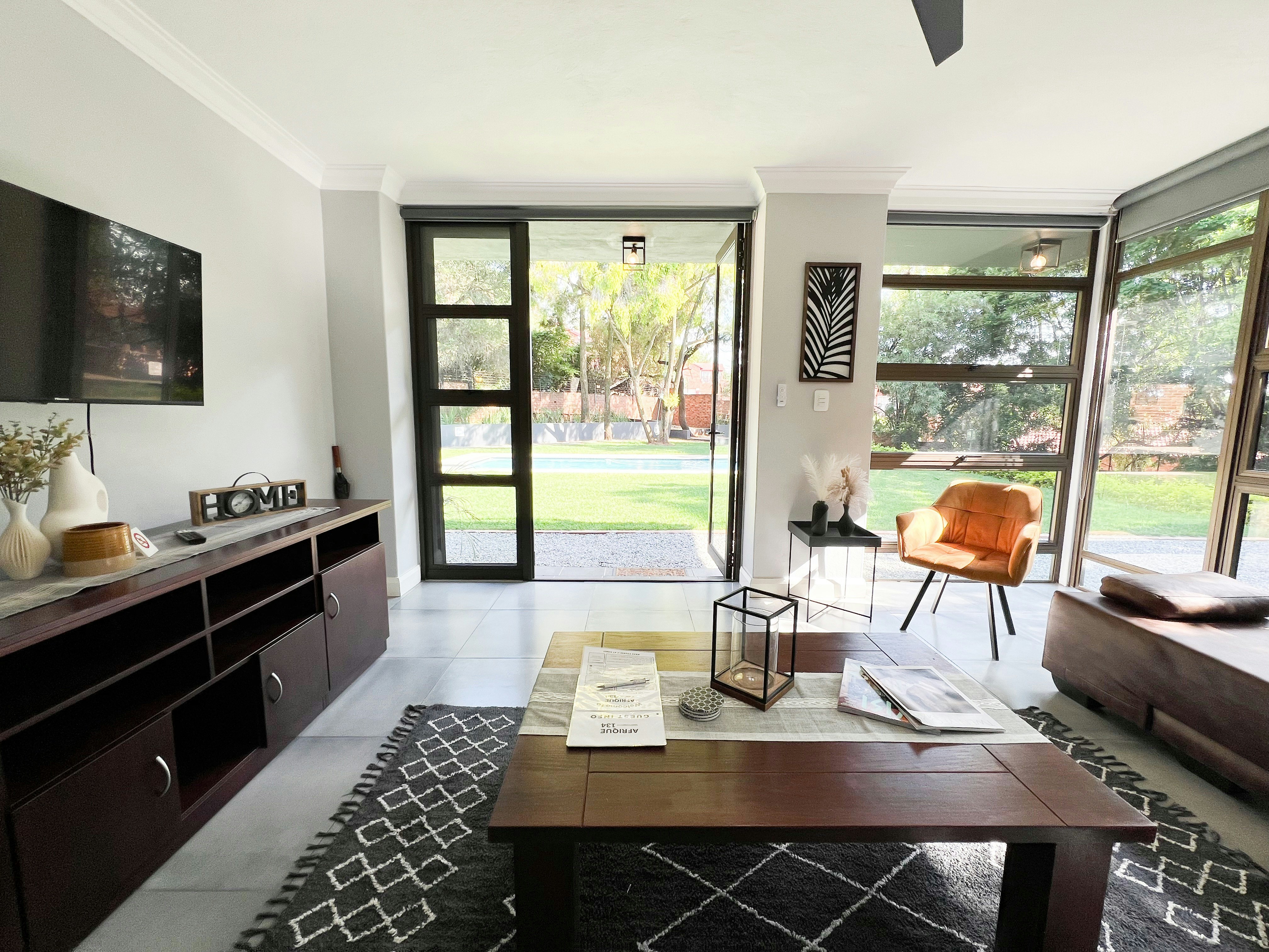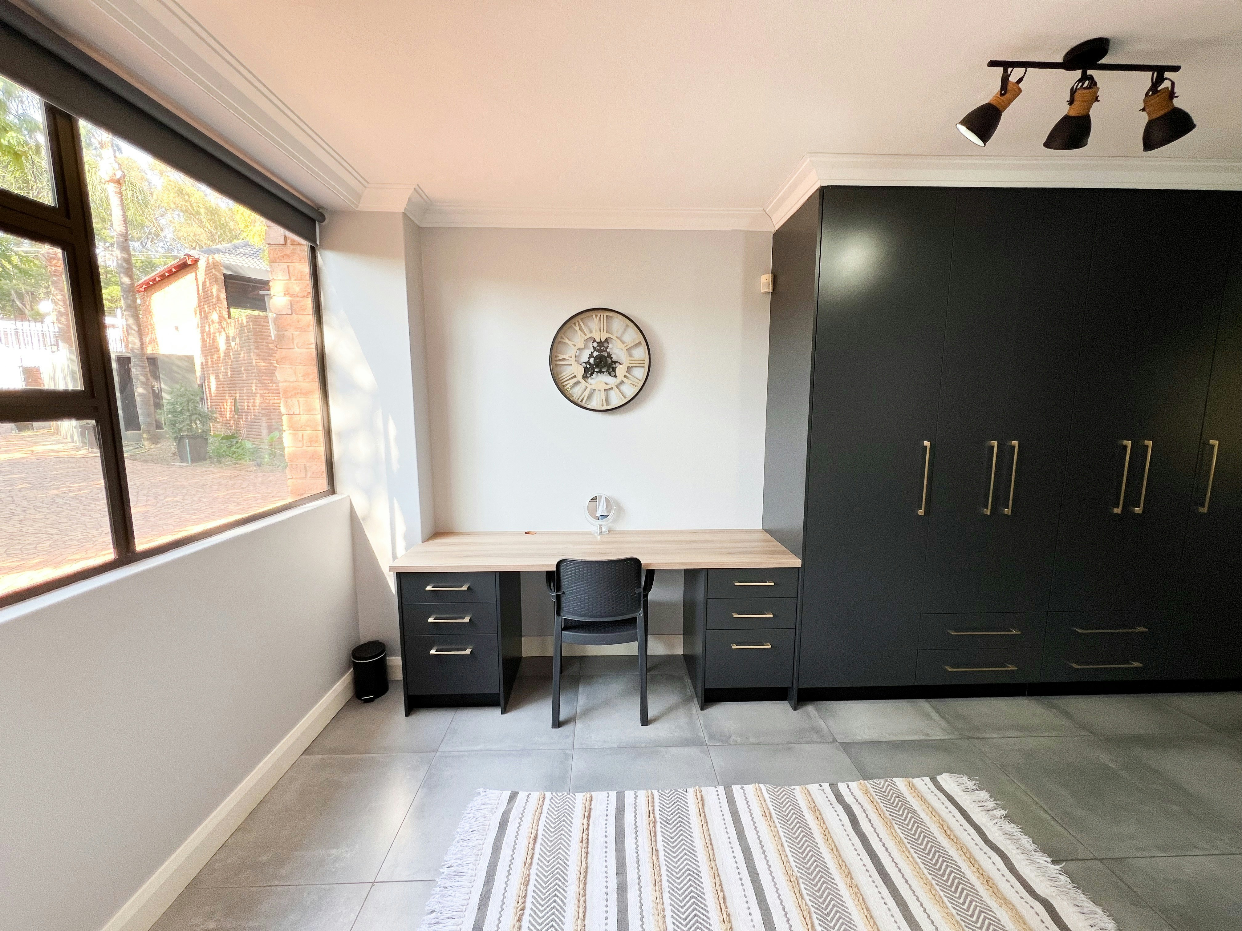 Baobab Tree Family Garden Suite is a modernly furnished self-catering unit that’s situated in Waterkloof Heights, near Menlyn Maine, Sun Arena at Time Square, and several popular restaurants and shops in the area. There are two other units on this premises that are rented out separately, so access to the premises and entertainment facilities are shared.