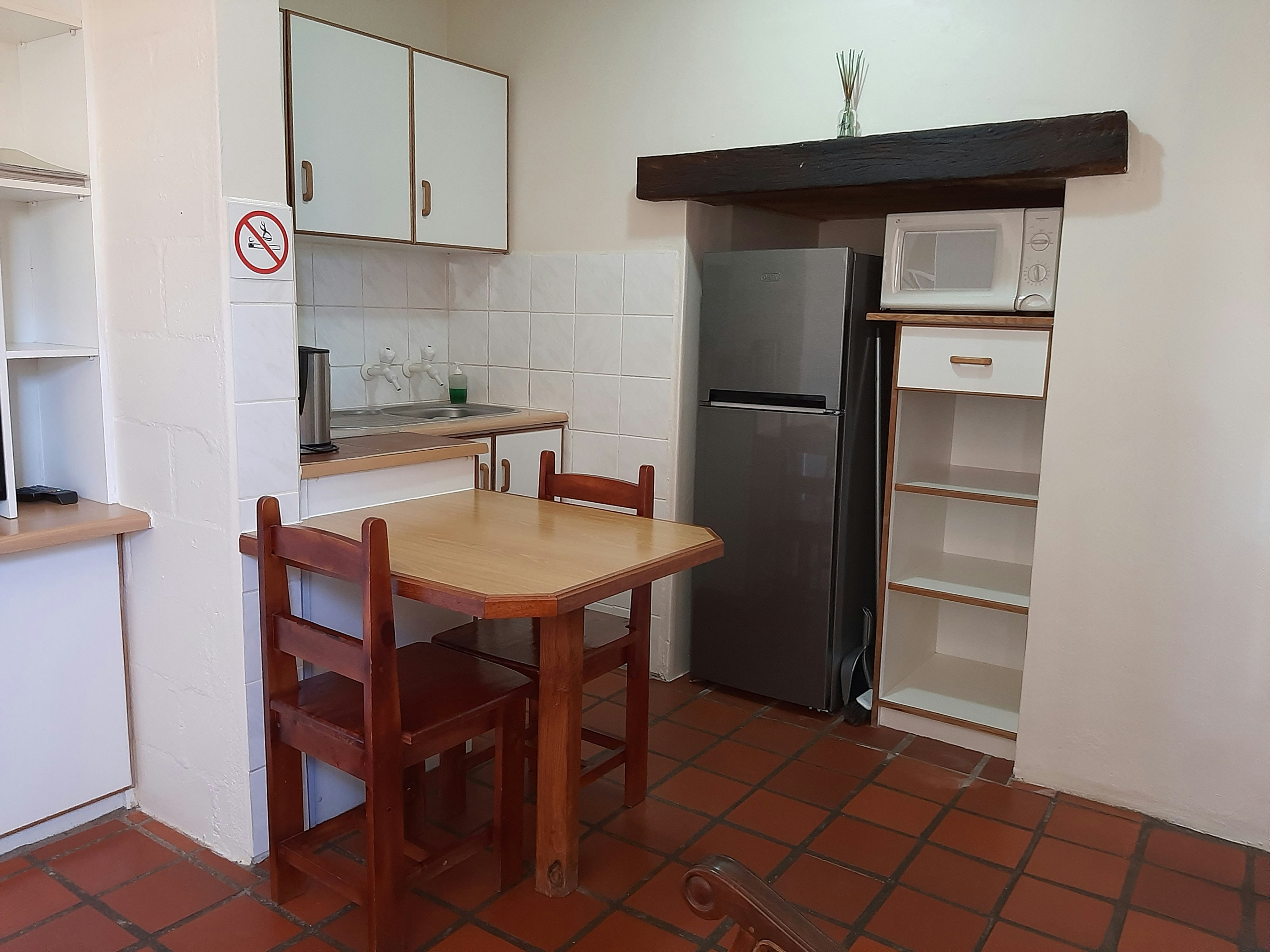 Each apartment is furnished with a queen-size bed and has an en-suite bathroom. These units have a private outside entrance. The kitchenette is equipped with a fridge-freezer, and microwave, as well as tea-and-coffee-making facilities. There is a flatscreen TV with selected DStv channels. Guests are offered complimentary Wi-Fi and safe secure parking. Braai facilities are available. Solar panels ensure that guests can relax and enjoy their break-away, without worrying about loadshedding.