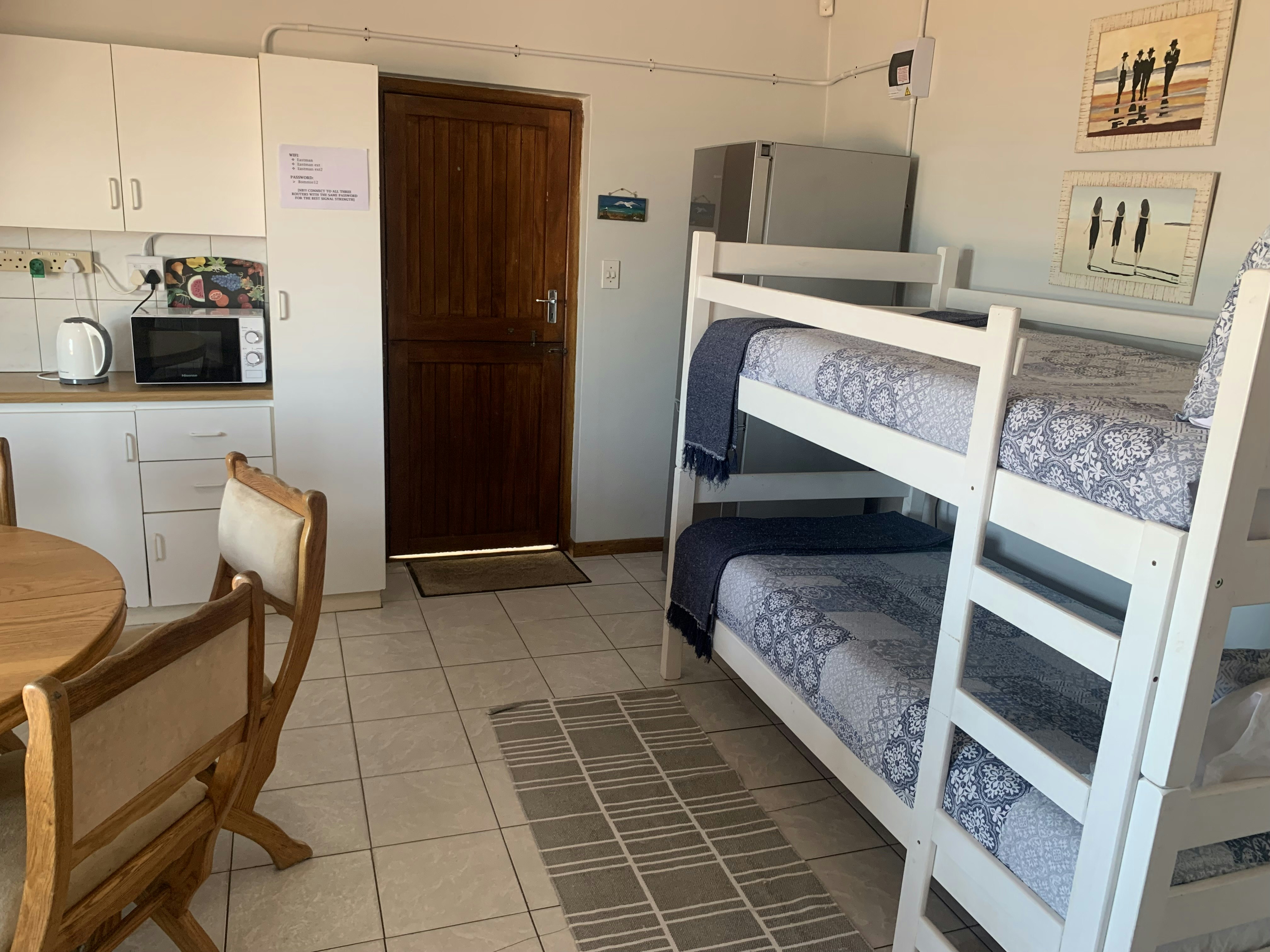 Hierdie woonstel vir 4 gaste beskik oor 'n slaapkamer, 'n badkamer en 'n oopplan-kombuis. Die slaapkamer het 'n dubbelbed en daar is 'n stapelbed in die leefarea. Die en suite-badkamer het 'n stort en linne word vir gaste se gerief voorsien, maar gaste moet tog hul eie swemhanddoeke saambring. Die oopplan-kombuis is met 'n tweeplaatstofie en 'n oond, 'n mikrogolf, yskas en tee- en koffiemaakgeriewe toegerus en gaste kan hul maaltye by die etenstafel geniet. WiFi en 'n TV met 'n vol DStv-pakket is beskikbaar. Die eenheid het ook 'n eenplaat-gasstofie en die ketel, ligte en WiFi word nie tydens beurtkrag beïnvloed nie. Daar is veilige parkeerplek en braaigeriewe vir gaste se gebruik.